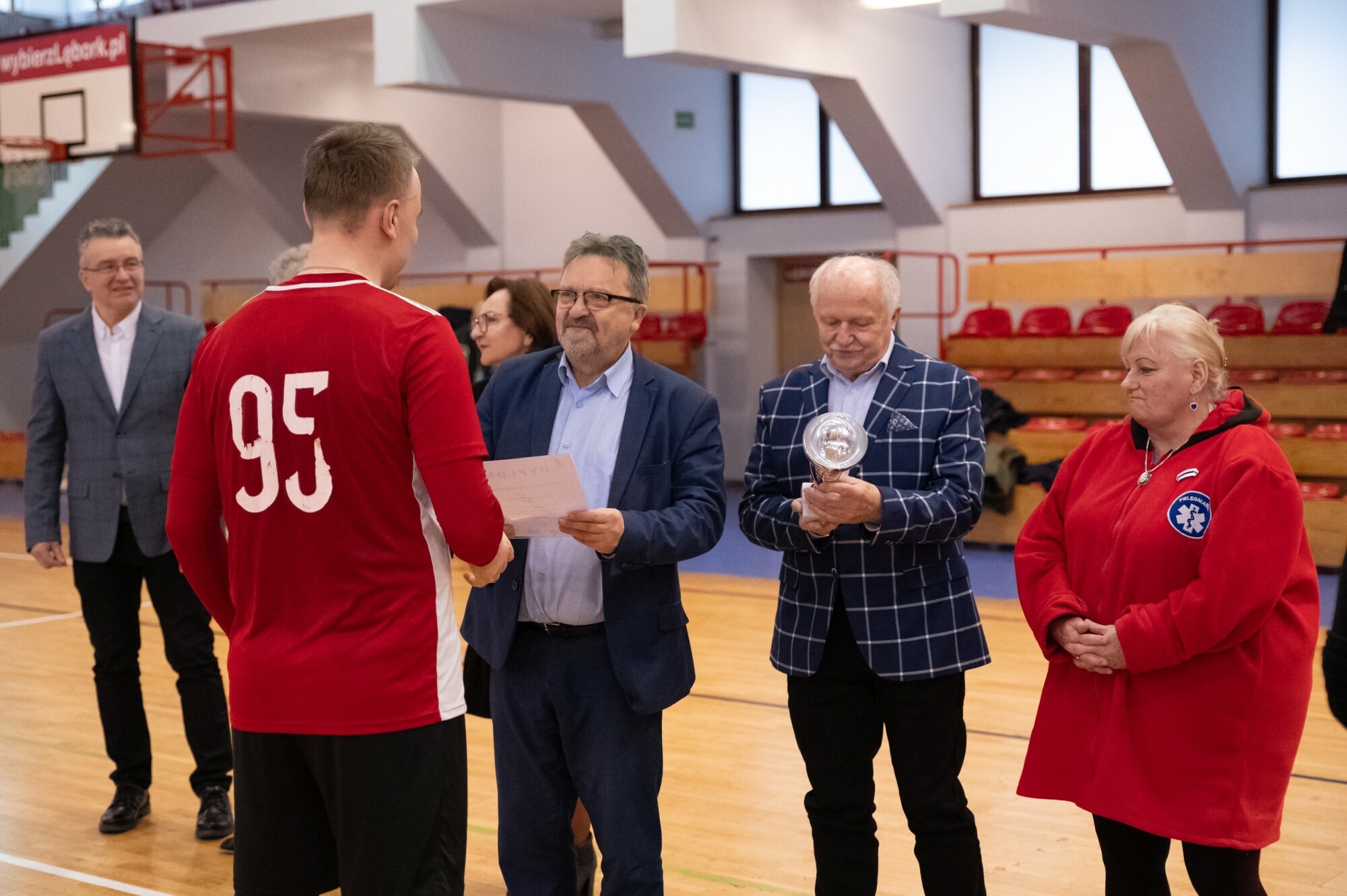 Wraz ze starostą puchary wręczali: wicestarosta Edmund Głombiewski, wiceprzewodniczący Rady Powiatu Lęborskiego: Witold Krużycki i Marian Borek (pełniący jednocześnie funkcję przewodniczącego Powiatowej Rady Sportu), a także burmistrz Lęborka Witold Namyślak i sekretarz miasta Marian Kurzydło, którzy udostępniają miejską halę do organizacji rozgrywek. Opiekę medyczną nad turniejem zapewniła Iwona Stawarz.