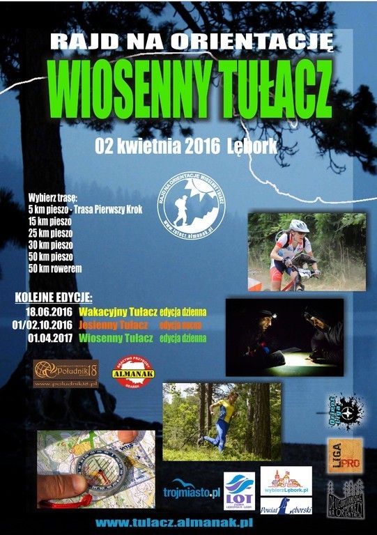 2 kwietnia 2016 r. Bractwo Przygody "Almanak" z Gdańska organizuje na terenie naszego powiatu Rajd na Orientację, pn. „WIOSENNY TUŁACZ”.