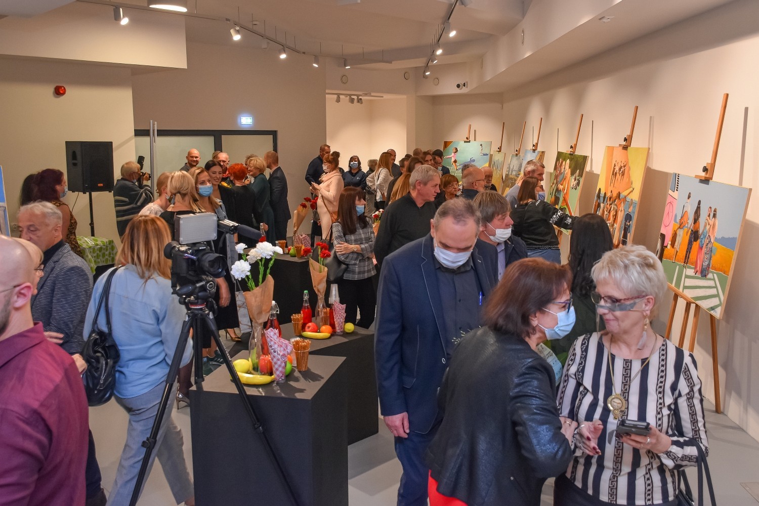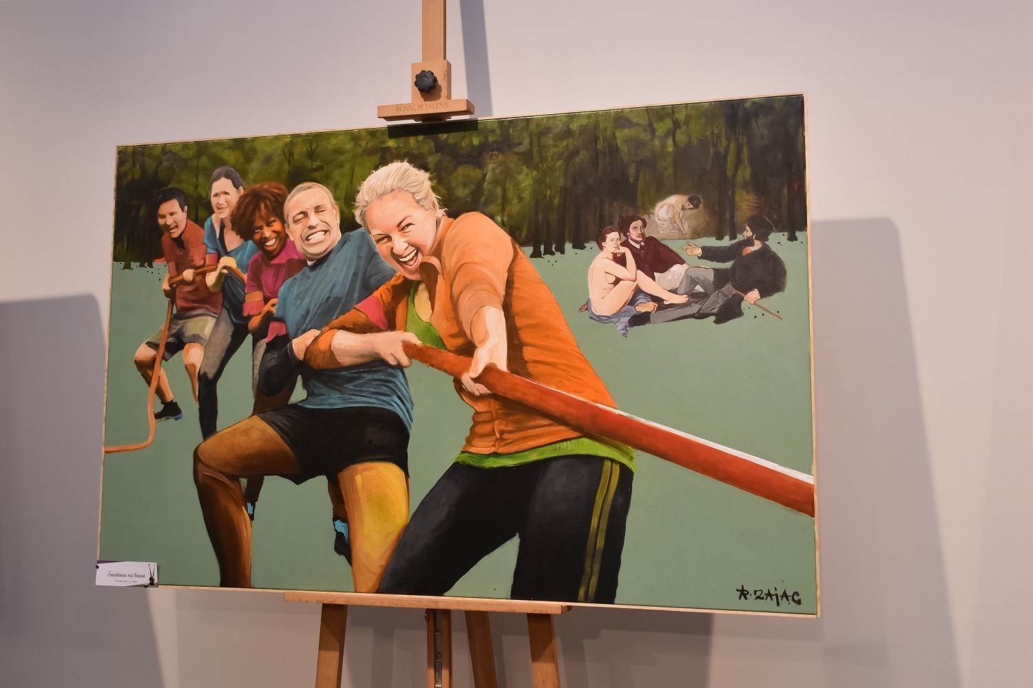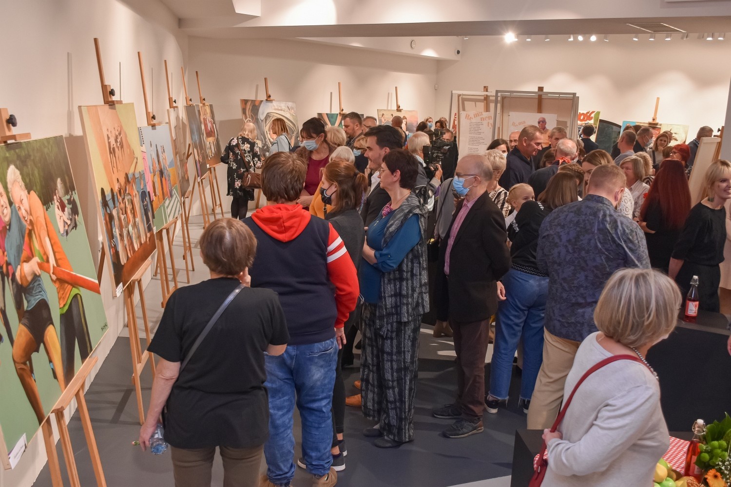 Prowokacja – TAK, nuda – nie ma takiej opcji – tak w telegraficznym skrócie można by zrecenzować tę niezwykłą wystawę, na którą składa się dorobek 24 prac malarskich z 24 miesięcy twórczej działalności artysty. Pewnego rodzaju artystyczną zaczepką, skłaniającą do zastanowienia się nad ideą przyświecającą wystawie i przewodnią myślą prezentacji, było oświadczenie artysty tuż przed przecięciem wstęgi: - Wstęgę mojej wystawy przetnę ja – wygłoszone przed gronem gości i widzów, po prezentacji dorobku i omówieniem tego, czego można będzie się spodziewać po przedstawionych pracach. „Remanenty” kojarzyć by się mogły z czymś na kształt porządkowania strychu i klasyfikowania tego, co już zostało wcześniej pokazane. To jednak wyjątkowo mylny tok myślenia. Remanenty Zająca to pewnego rodzaju malarskie rozliczenie się z przeszłością, z czasami PRLu, z klimatem i najważniejszymi wydarzeniami tamtych dni. Dla młodego pokolenia to niemal plakatowe spojrzenie w przeszłość. Dla starszych – podróż wspomnień do miejsc i chwil, które w jakiś sposób odcisnęły swój ślad, zachowując emocjonalnie zakodowany ogląd tamtej rzeczywistości. To podróż po wspomnieniach pełnych refleksji, emocji, blasków i cieni minionych lat. Bezpośredni zapis rzeczywistości – współczesnej i minionej, ujętej z osobistej perspektywy – to wizytówka artystyczna twórcy, operującego skrótem, przedstawiającego zapożyczone motywy – tworzącym nowa jakość. 24 miesiące tworzenia – 24 obrazy – dyscyplina i rytm. Trud codzienności, trud tworzenia na jednej palecie artysty. 24 miesiące tworzenia w trudnych czasach są pewnym dialogiem ze wspomnieniami o młodości i tworzeniu nie mniej trudnych, ale innych czasach. Autor tworzył swoje prace w czasie obostrzeń – ograniczeń funkcjonujących również w innych czasach. „Ale to już było” – to obraz, który powstał jako pierwszy, choć ogólnie przyjemny w odbiorze, ukazuje typowe blokowisko na osi czasu i nieuchronnych nadchodzących zmian, z którym koresponduje praca zatytułowana „Iskierka nadziei” – zwiastujący możliwe przemiany, które historycznie się dokonały. „Tak jak namalował pan Chagall” – ukazuje kosmiczną podróż Gagarina w ikonicznie fotograficznym ujęciu postaci pilota statku kosmicznego „Wostok” wzbogaconej o scenę charakterystyczną dla twórczości Chagalla – „Żyda – wiecznego tułacza” przemierzającego chagallowski świat. Wspomnienia i przenośnie – to charakterystyka prezentowanych obrazów. Artysta nawiązuje do „Najkrótszego przewodnika po sobie samym” Gustawa Herlinga-Grudzińskiego, prywatnego, biograficznego vademecum dla miłośników twórczości i czytelników zainteresowanych losami pisarza. Wśród gości wydarzenia byli samorządowcy ze starostą Alicją Zajączkowską, burmistrzem Lęborka Witoldem Namyślakiem i jego zastępcą Teresą Ossowską - Szarą, a także przewodniczący Rady Miejskiej Jarosław Litwin. Wystawę można oglądać w Wieży Ciśnień do 22 października. Ryszard Zając z wykształcenia jest konserwatorem dzieł sztuki po studiach na Wydziale Sztuk Pięknych w Toruniu. Swoje prace wystawiał w galeriach w Suwałkach, Giżycku i Gołdapi. Był nagradzany za malarstwo, plakaty oraz scenografię do widowisk teatralnych. Dzieła Zająca rozchwytywane są w licznych galeriach warszawskich. Wśród gości wernisażu oprócz władz powiatu i miasta obecni byli liczni radni miasta i powiatu, reprezentanci lokalnego biznesu i koneserzy sztuki.