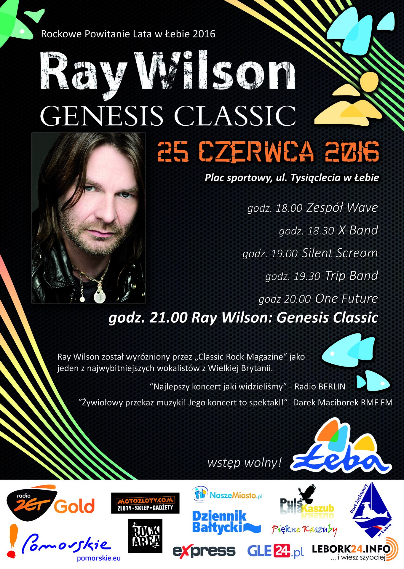 25 czerwca 2016 roku zaplanowano organizację dużej imprezy rozpoczynającej sezon letni w Łebie pn. „Rockowe Powitanie Lata w Łebie”. Na placu sportowym przy ul. Tysiąclecia w Łebie powstanie ogromna scena z profesjonalnym nagłośnieniem aby sprostać wymaganiom Ray’a Wilson, ostatniego wokalisty grupy GENESIS. Koncert gwiazdy wstępnie przewidziano na godzinę 21.00.