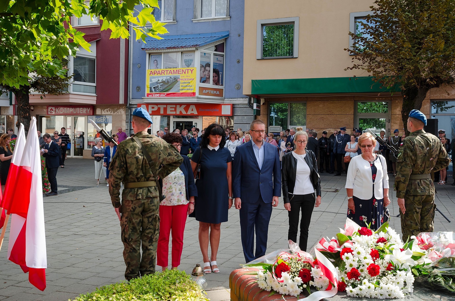 Okolicznościowe wystąpienie burmistrza Witolda Namyślaka, salwa honorowa kompanii reprezentacyjnej 1 Lęborskiego Batalionu Zmechanizowanego im. gen. Jerzego Jastrzębskiego to część elementów rocznicowych obchodów. Uzupełniły je: Apel Pamięci odczytany przez porucznik Lidię Tobolską oraz składanie kwiatów przez przedstawicieli samorządu: Teresę Ossowską – Szarą, Starostę Lęborskiego i Witolda Namyślaka, Burmistrza Miasta Lęborka. Wiązanki składali również przedstawiciele powiatowych i miejskich jednostek organizacyjnych, szkół, przedszkoli, organizacji społecznych i politycznych. Nie zabrakło przedstawicieli służb mundurowych i harcerzy.