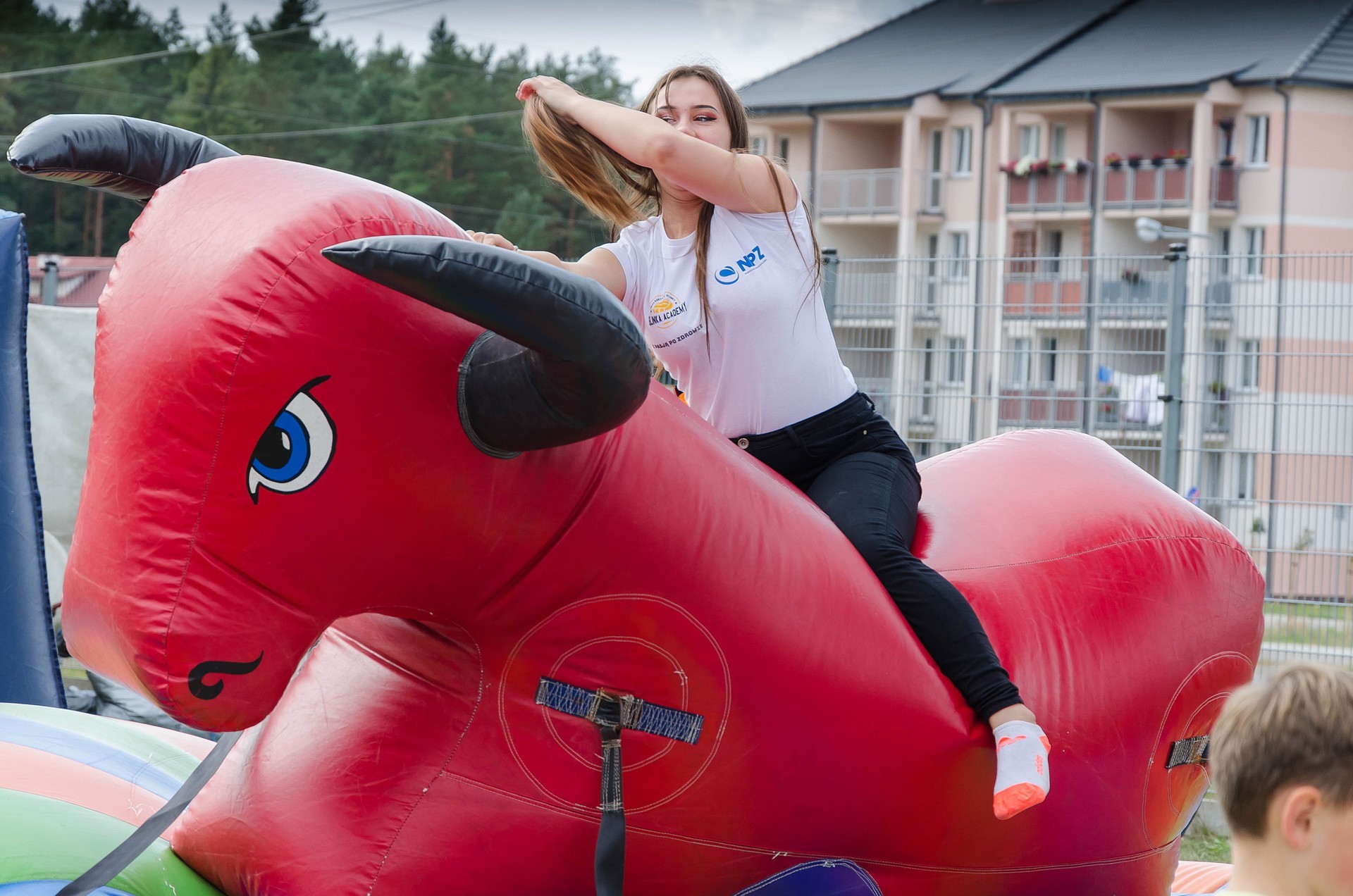 W czasie pikniku mieliśmy jeszcze szereg innych atrakcji. Ze specjalnie przygotowanej sceny instruktorki z klubu „Marzenie" prowadziły pokazy fitness , a pomiędzy tymi występami animatorki z biura „Przygoda" prowadziły zabawy i konkursy dla dzieci.