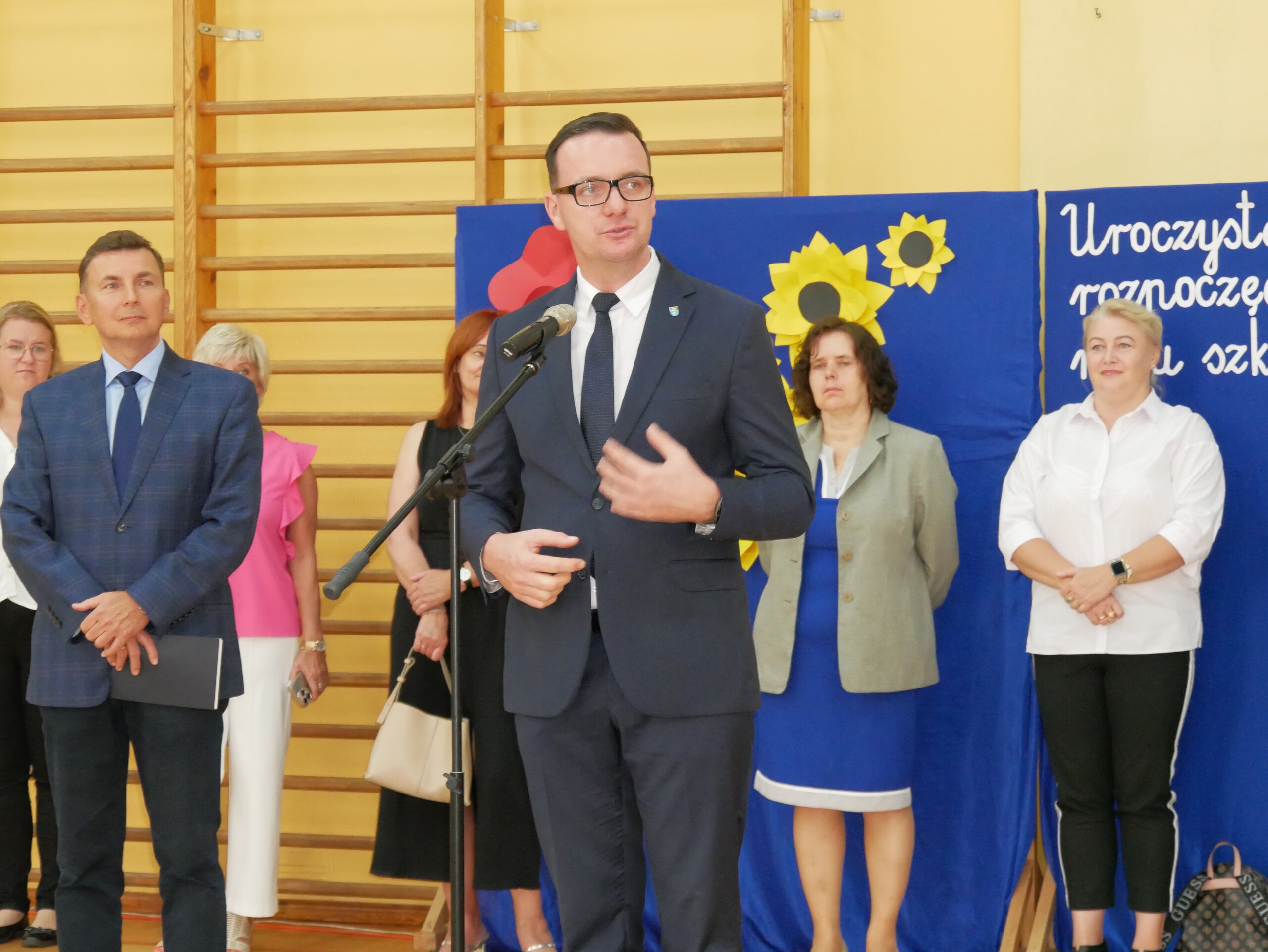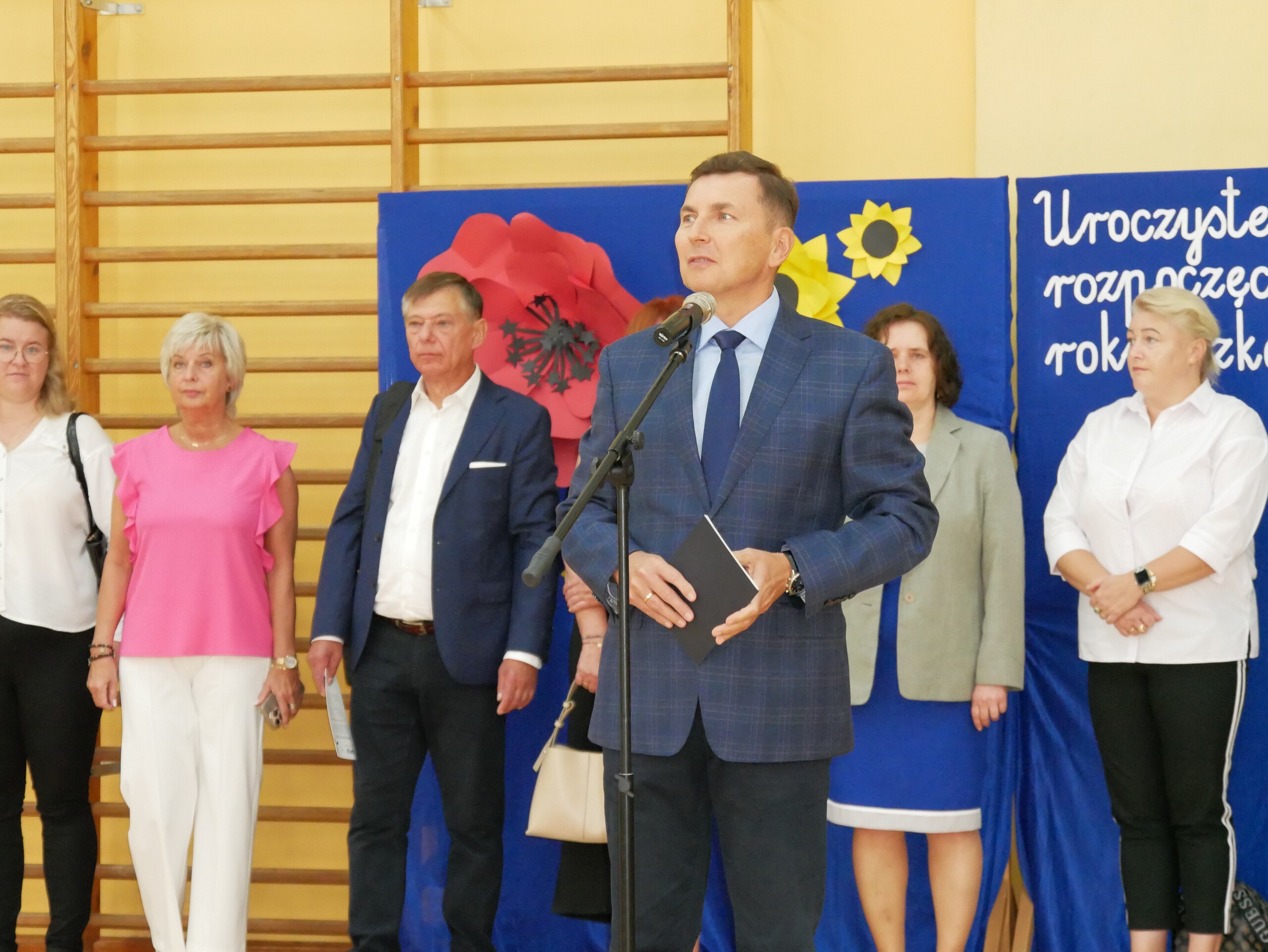 Zwracając się do nauczycieli, wicestarosta docenił rolę pedagogów w ukierunkowywaniu młodzieży, by jak najpełniej mogła wykorzystać swój potencjał i talenty. Całej szkolnej społeczności życzył sukcesów: – Niech ten rok szkolny będzie pełen sukcesów, które dają satysfakcję i budują pewność siebie młodych ludzi – zakończył wystąpienie wicestarosta.