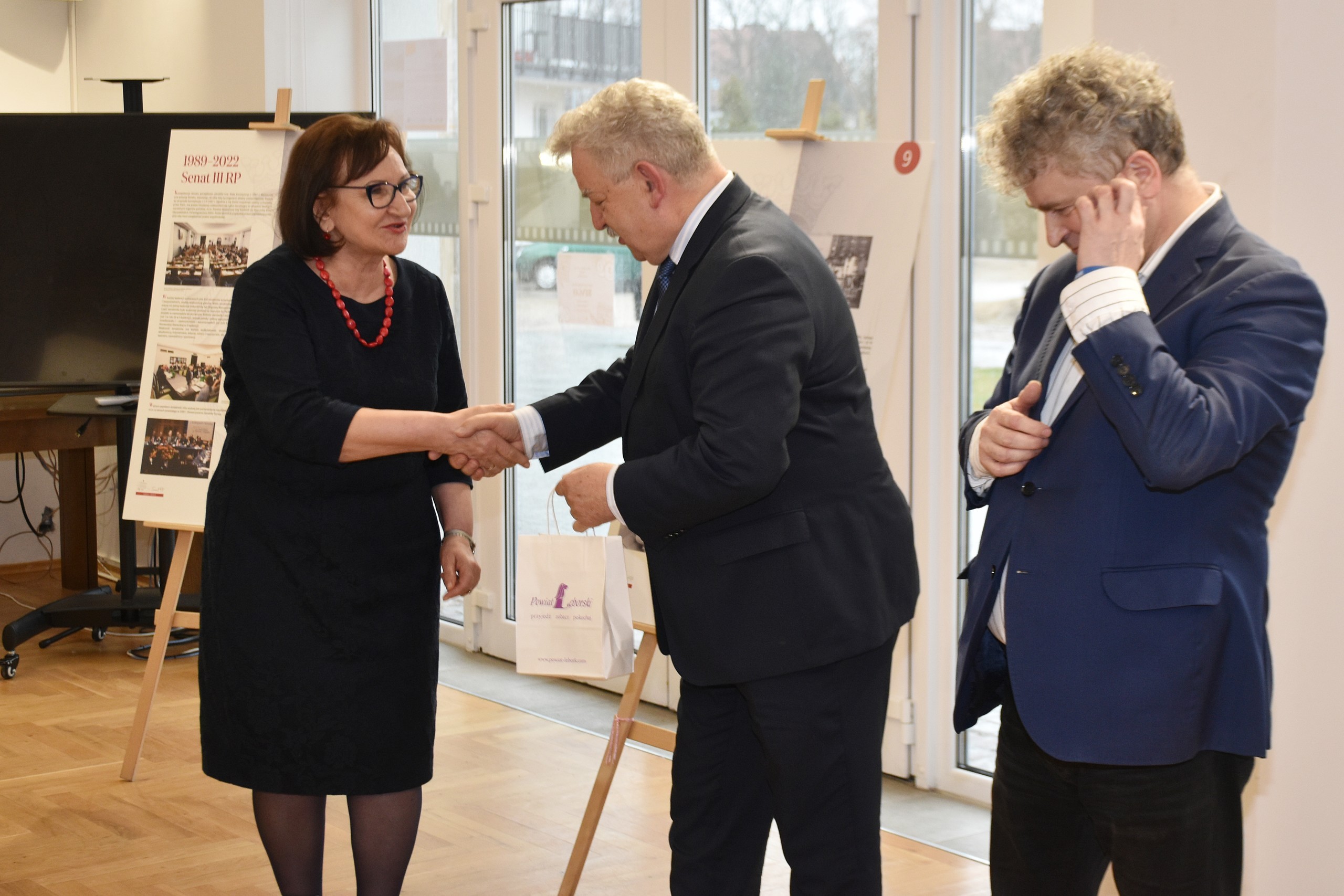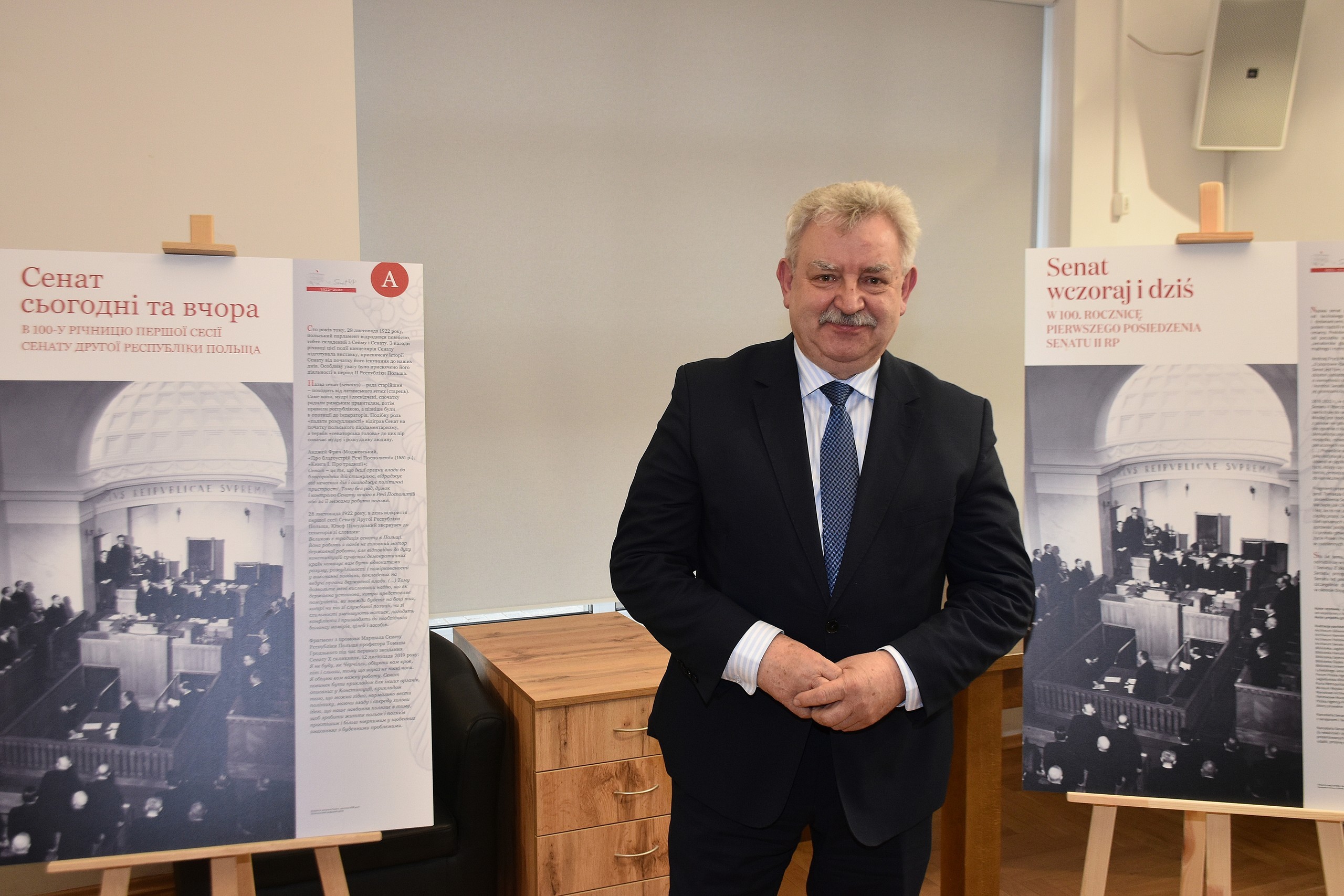 Do Lęborka wystawa przyjechała z Warszawy, gdzie po raz pierwszy otworzył ją Marszałek Senatu RP prof. Tomasz Grodzki. Wystawa została przygotowana przez Kancelarię Senatu i opracowana przez historyka, prof. Jerzego Kochanowskiego. Prezentuje nie tylko podstawowe informacje o Senacie RP, ale też szczegóły nieznane szerokiemu gremium odbiorców. Przybliża historię Izby od czasów jej powstania do współczesnych. Prezentowane są kolejno: Senat staropolski i czasy rozbiorów, dwudziestolecia międzywojennego, wątpliwości co do istnienia Izby i jej uprawnień, wybory do Sejmu i Senatu, działalność parlamentarna i pozaparlamentarna senatorów, różnorodność ówczesnego Senatu. Można również poznać losy senatorów w czasie wojny i okresie powojennym, a także odrodzenie Izby w 1989 r. i jej działalność w czasach współczesnych. Szczególnie wiele miejsca poświęcono Senatowi w okresie II RP, kiedy to na mocy konstytucji marcowej z 1921 r. powrócono do przedrozbiorowej tradycji dwuizbowego parlamentu. W konsekwencji, 100 lat temu, 28.11.1922 r., polski parlament odrodził się w swojej pełnej postaci, tzn. złożony z Sejmu i Senatu. Tę właśnie rocznicę świętujemy w 2022 r. Podczas lęborskiego wernisażu doświadczonym politykom i samorządowcom towarzyszyli również przedstawiciele młodzieży skupionej w Młodzieżowej Radzie Miasta z jej przewodniczącym Janem Pasko-Porysem. – Bardzo cieszę się, że zaproszenie na wystawę spotkało się z tak dużym odzewem – mówił senator Kazimierz Kleina – Cieszę się, że jest z nami starosta Alicja Zajączkowska, burmistrz Witold Namyślak, przedstawiciele Uniwersytetu Trzeciego Wieku, osoby zaangażowane w działalność społeczną. Cieszę się, że są tu również bardzo młodzi ludzie, a więc mamy szeroki przekrój społeczności Lęborka.