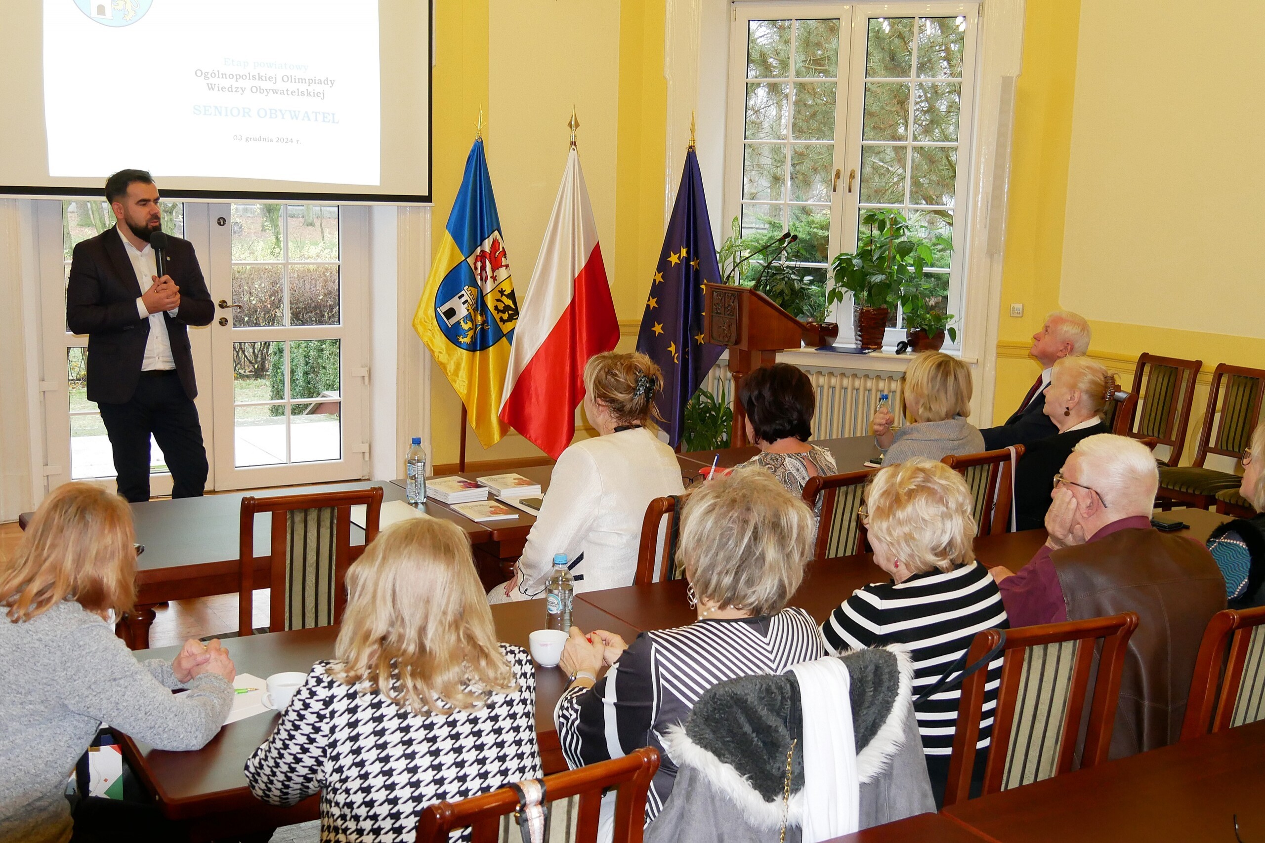 Uczestników przywitał w sali obrad Rady Powiatu Lęborskiego Starosta Lęborski Tomasz Litwin, dziękując za chęć działania i ciągłe poszerzanie wiedzy na temat zasad, norm i instytucji państwa obywatelskiego. Znajomość zapisów Konstytucji RP, aktów prawnych regulujących funkcjonowanie praw obywatelskich, a także rozszerzenie aktywności obywatelskiej osób starszych oraz powiększenie ich wiedzy z zakresu politologii i wiedzy o społeczeństwie to główne cele przedsięwzięcia zorganizowanego w formie wiedzowej olimpiady. Przedsięwzięcie wspierane jest przez Pomorską Radę ds. Polityki Senioralnej przy Regionalnym Ośrodku Polityki Społecznej, której przedstawicielka – Elżbieta Godderis od lat wspiera różne formy poszerzania wiedzy seniorów i zachęca do uczestnictwa we wszelkich dostępnych rodzajach społecznej aktywności obywatelskiej.
