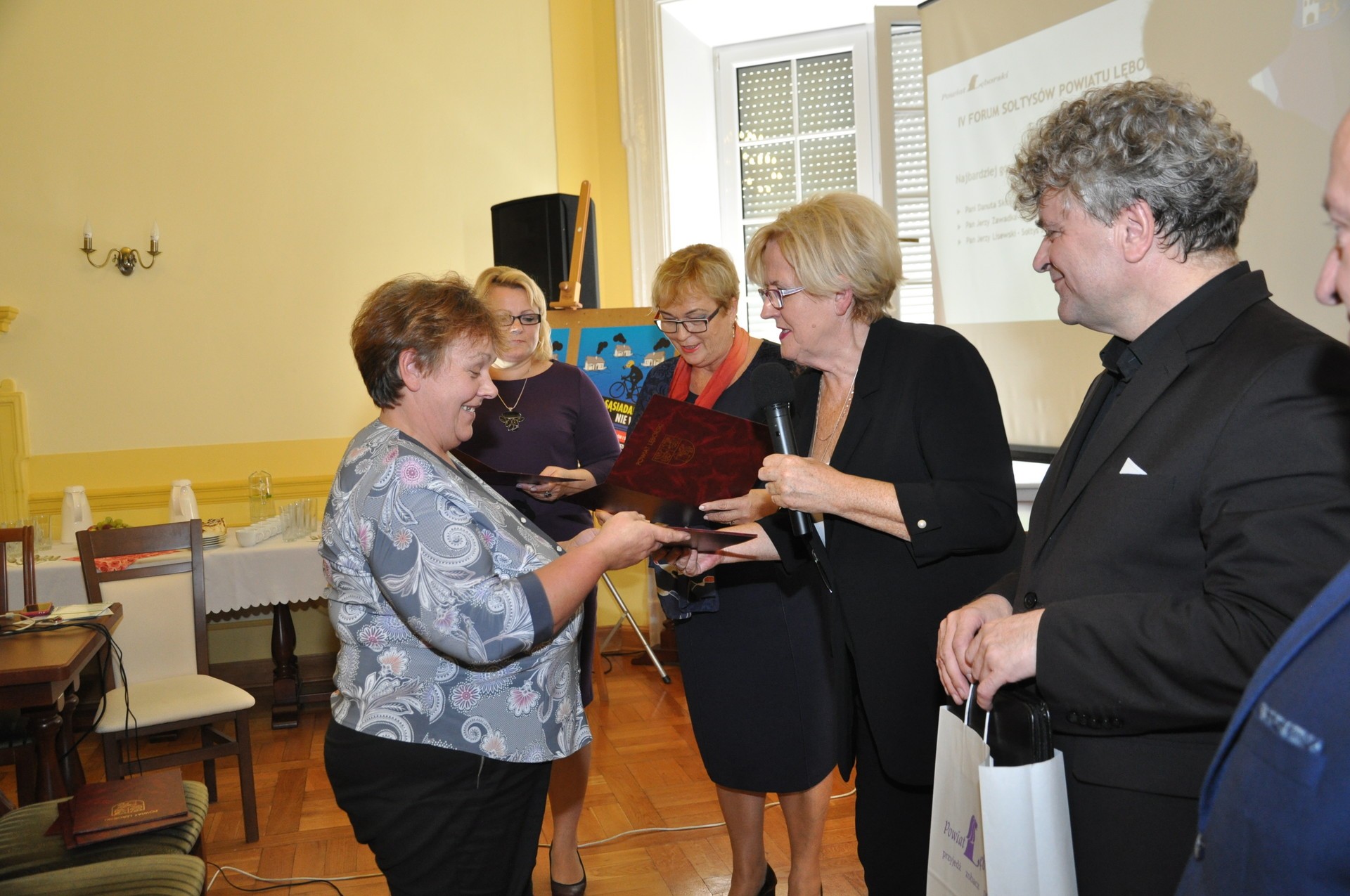 Gratulacje i upominki otrzymali sołtysi, którzy szczególnie wyróżnili się pod względem gospodarności i zaangażowania w inicjatywy proekologiczne. Starosta Lęborski nagrodziła: Justynę Lica, sołtys Karwicy, Annę Walkusz, sołtys Łebuni, Wiolettę Szymikowską, sołtys Bukowiny, Mariolę Wiśniewską, sołtys Mostów, Ryszarda Krygowskiego, sołtysa Rekowa Lęborskiego, Tomasza Gada, sołtysa Redkowic, Romana Downara – Zapolskiego, sołtysa Chocielewka, a także Jana Zawadkę, sołtysa Żarnowskiej, Danutę Skibińską, sołtys Wojciechowa i Jerzego Lisewskiego, sołtysa Wrześcia.