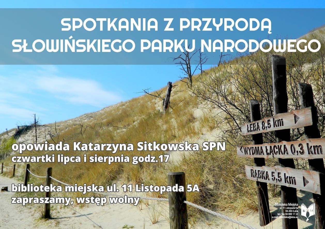 W każdy czwartek sierpnia w bibliotece miejskiej w Łebie będą się odbywały spotkania z przyrodą Słowińskiego Parku Narodowego, który w tym roku obchodzi swoje 50-lecie. Spotkania prowadzi pracownik edukacyjny SPN Katarzyna Sitkowska, która w ciekawy sposób opowiada nie tylko o florze i faunie parku, ale także o wodach, wydmach i przedwojennej szkole szybowcowej. Kolejne spotkanie 3 sierpnia o godz. 17 w bibliotece miejskiej w Łebie. Zapraszamy.