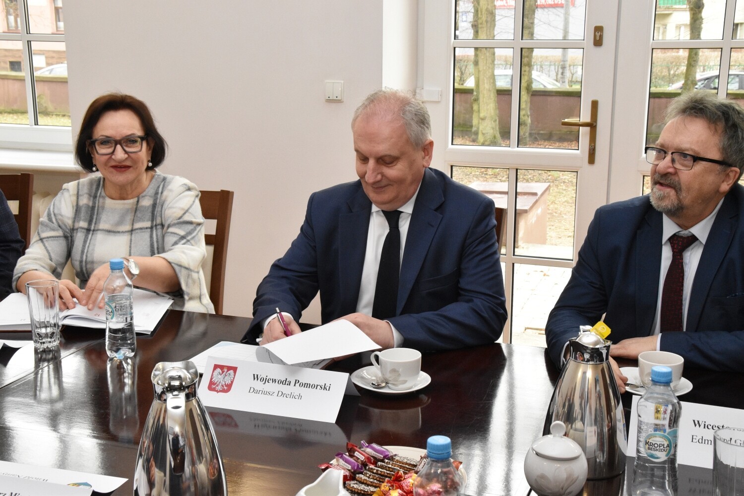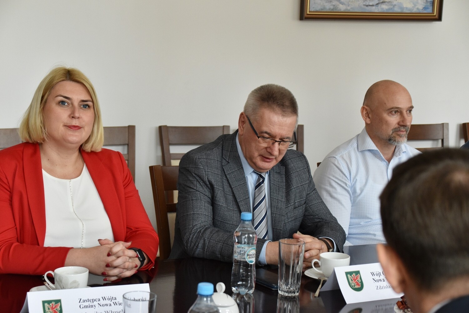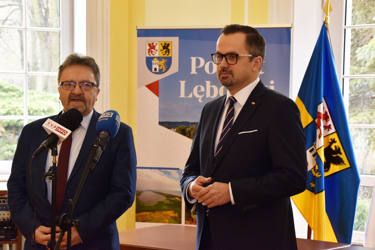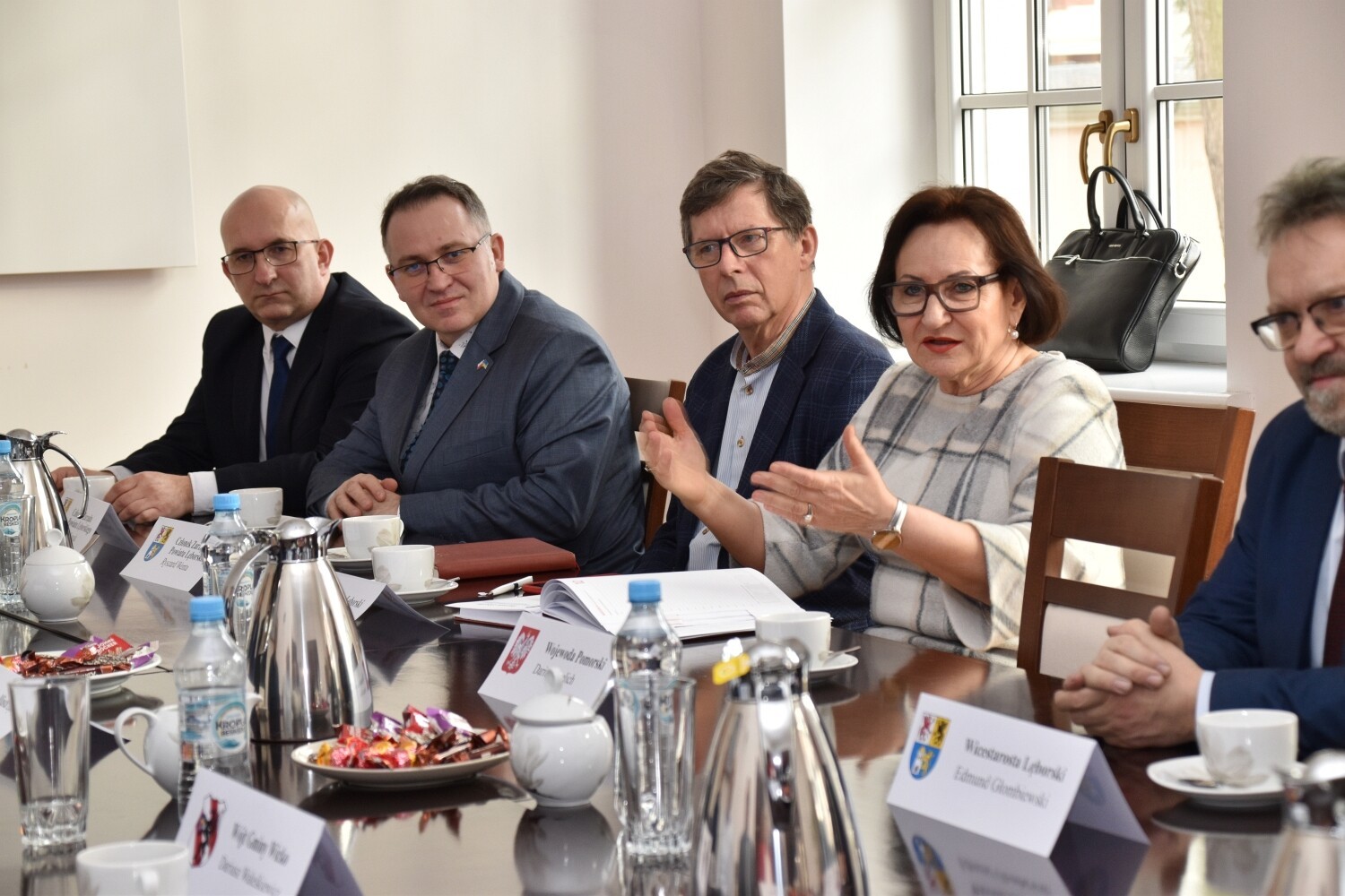 Tematem konwentu samorządowców było omówienie aktualnego postępu prac inwestycji realizowanych w regionie przy udziale środków rządowych. W roboczym spotkaniu Powiat Lęborski reprezentowali: Alicja Zajączkowska – Starosta Lęborski, wicestarosta Edmund Głombiewski, członkowie Zarządu Powiatu: Adam Nowak, Jacek Perłak i Ryszard Wenta oraz przewodniczący Rady Powiatu Lęborskiego Mirosław Tandek. Samorząd miejski i gminny reprezentowali: Jerzy Bańka – wójt Gminy Cewice, burmistrz Lęborka – Witold Namyślak, burmistrz Łeby – Andrzej Strzechmiński, wójt Gminy Nowa Wieś Lęborska – Zdzisław Chojnacki wraz z zastępcą – Moniką Włusek oraz Dariusz Waleśkiewicz – wójt Gminy Wicko. Dyskutowano m.in. o kondycji finansowej samorządów, możliwościach pozyskiwania środków zewnętrznych, w tym rządowych dofinansowań do inwestycji, planach inwestycyjnych na bieżący rok, projektach społecznych i inwestycjach drogowych. Wśród tematów dotyczących dróg, w związku z realizowaną budową lęborskiego odcinka drogi S6, powróciła kwestia potrzeby wykonania drogi umożliwiającej zjazd z budowanej S6 w kierunku Łeby, z pominięciem centrum Lęborka, co pozwoliłoby uniknąć korków w mieście, zwłaszcza w okresie nasilonego ruchu turystycznego i możliwości pozyskania finansowania tego przedsięwzięcia lub wariantu rozwojowego potrzebnego łącznika. Część dyskusji dotyczyła proceduralnych kwestii obsługi wniosków i sprawnego rozliczania przyznanych środków, co mogłoby skrócić i ułatwić całość procesu inwestycyjnego. – Cieszę się z wymiaru rządowego wsparcia do inwestycji w powiecie. W ciągu trzech lat na same inwestycje drogowe otrzymaliśmy 40 mln zł, które zostały dobrze zagospodarowane z korzyścią dla mieszkańców poprzez poprawę bezpieczeństwa i komfortu poruszania się po drogach. Wpłynęły również na podniesienie atrakcyjności obszarów inwestycyjnych na naszym terenie – podsumowuje wicestarosta Edmund Głombiewski – Powiat i gminy w powiecie mają duże potrzeby, ale mam nadzieję, że dzięki dobrej współpracy z administracją rządową będziemy mogli liczyć na kolejne środki, a działając wspólnie w gronie samorządowym, będziemy mogli z czasem sukcesywnie potrzeby mieszkańców naszego regionu zaspokajać.
