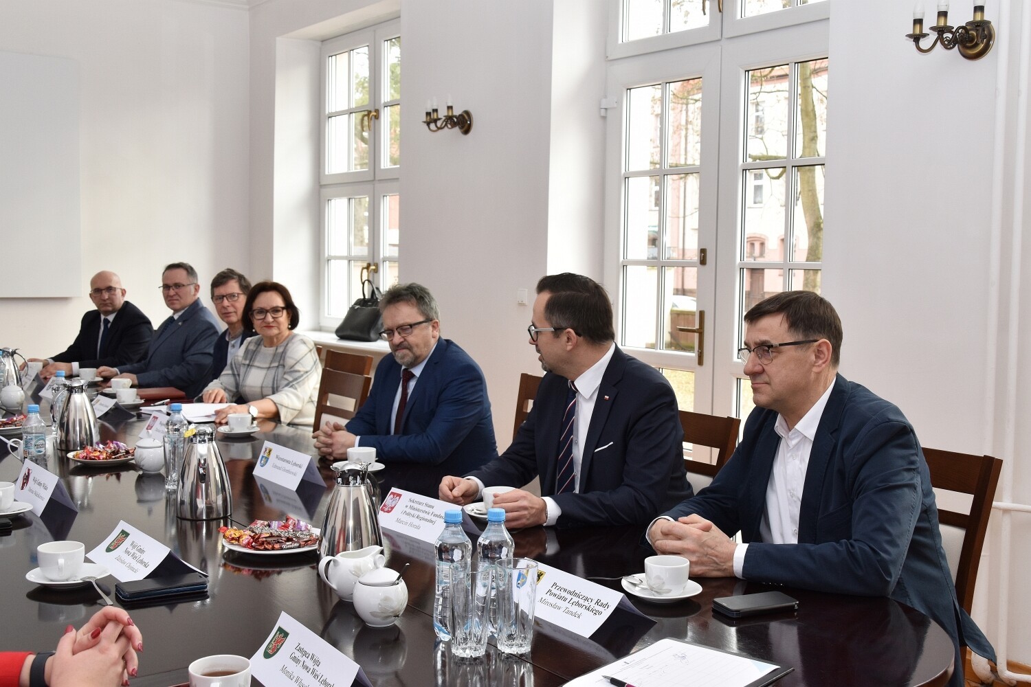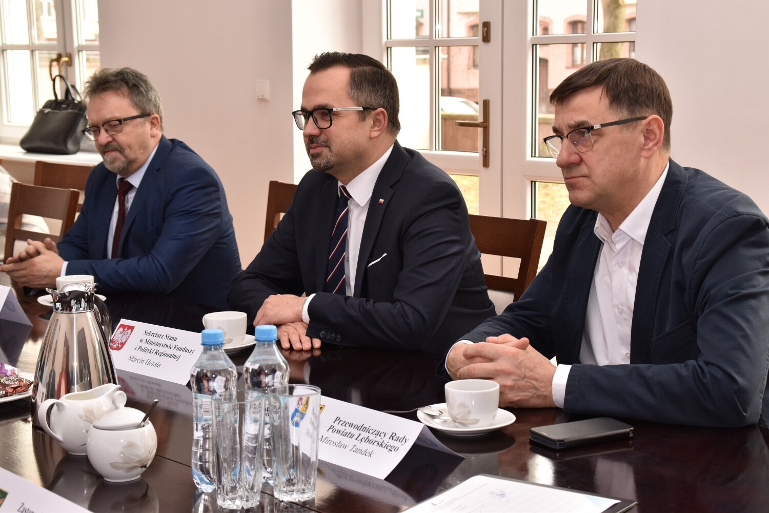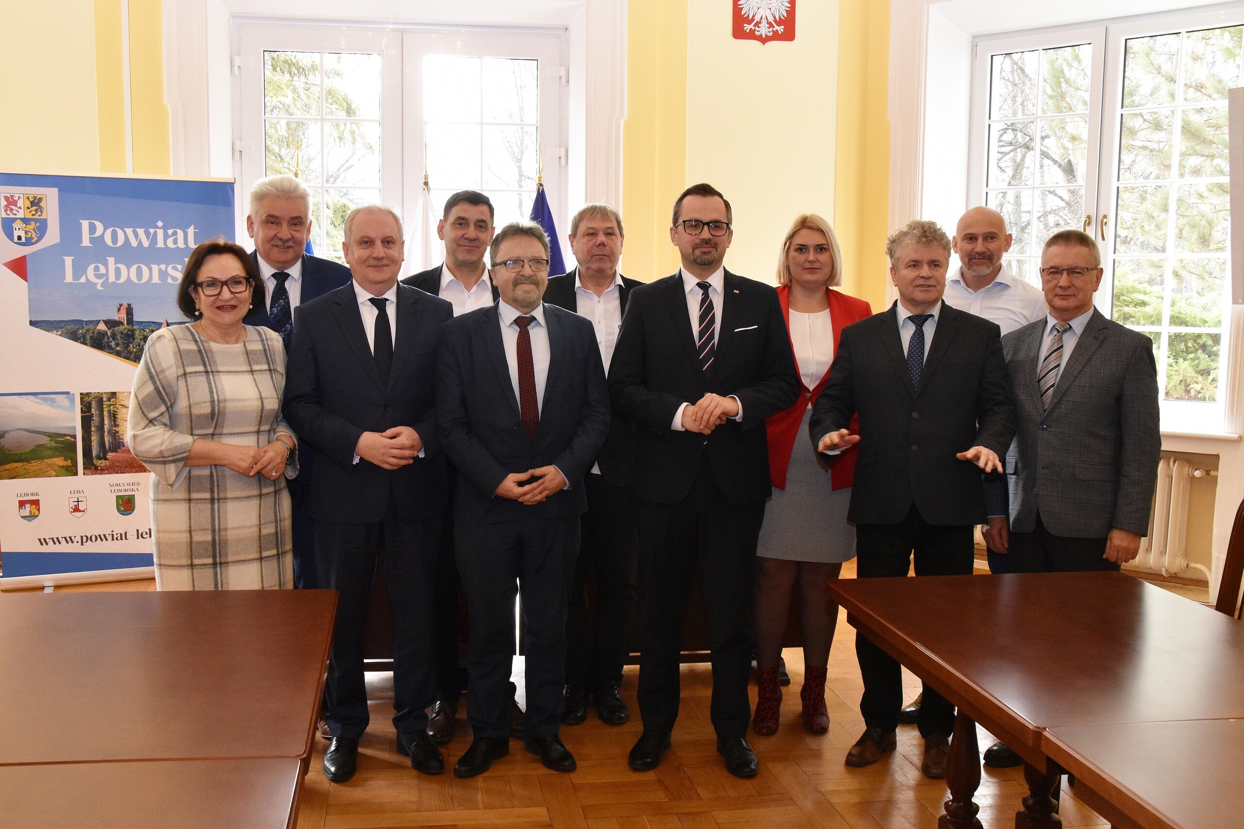 Samorządowcy z terenu powiatu lęborskiego spotkali się w Starostwie Powiatowym w Lęborku w poniedziałkowe przedpołudnie (13.02) z Wojewodą Pomorskim Dariuszem Drelichem i Sekretarzem Stanu w Ministerstwie Funduszy i Polityki Regionalnej, posłem Marcinem Horałą.