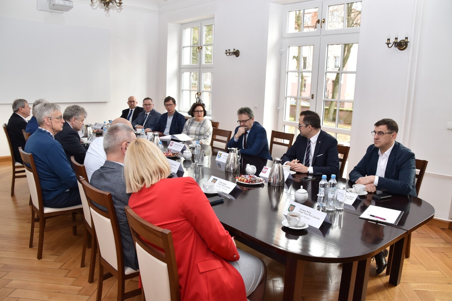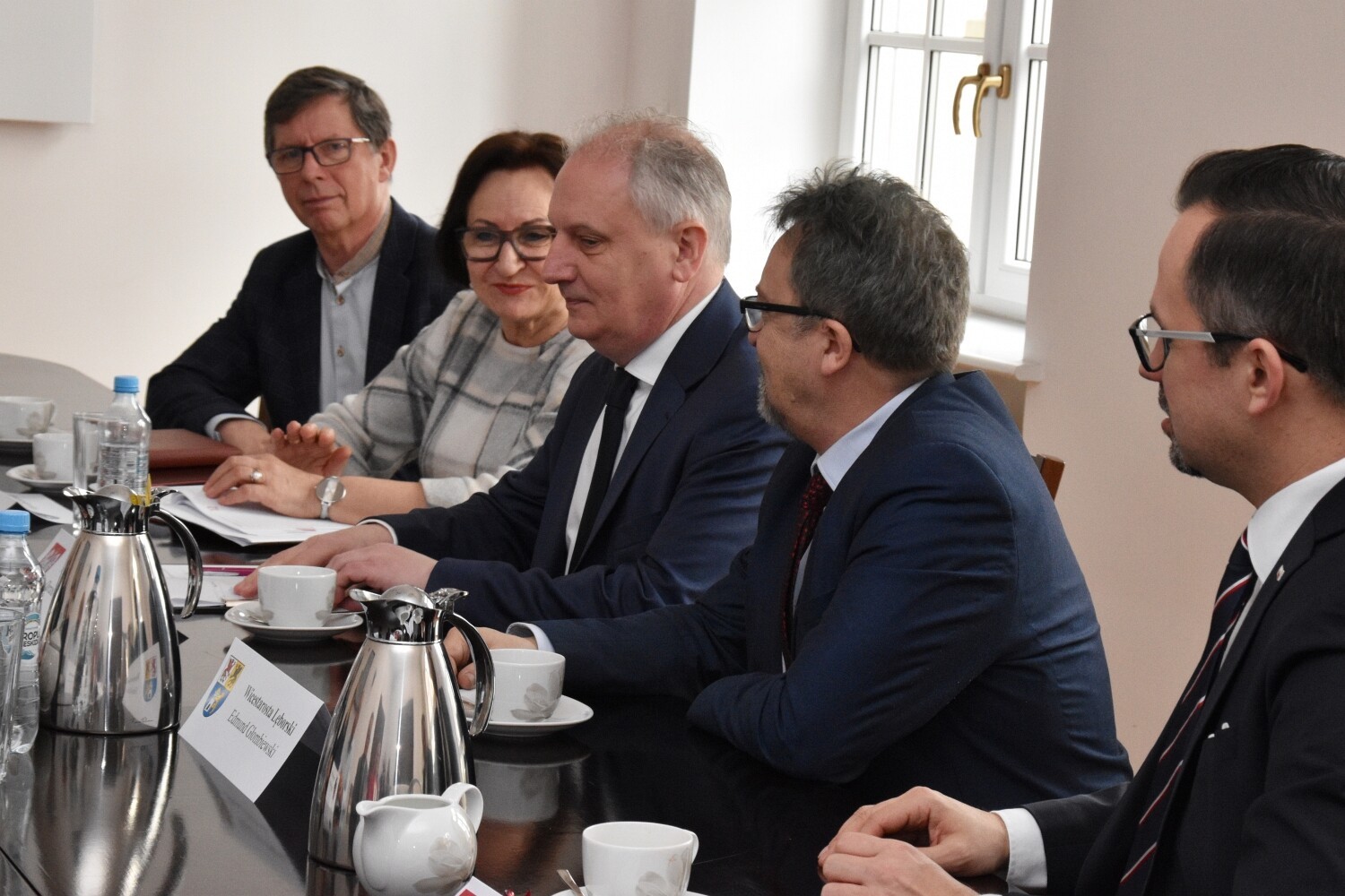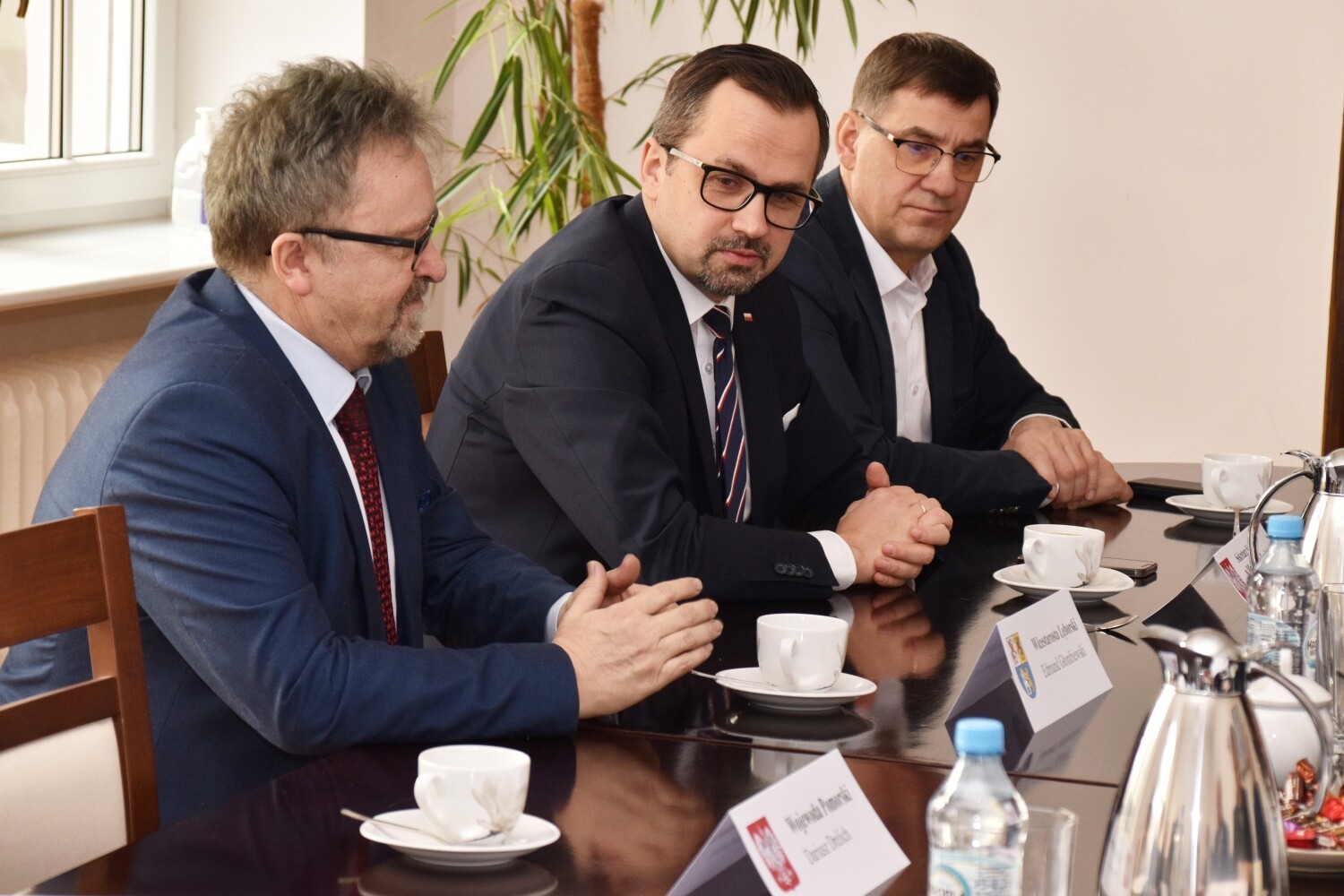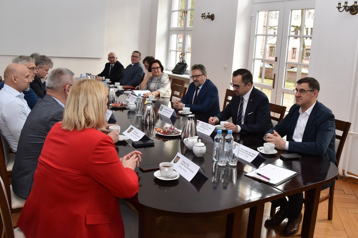 Samorządowcy z terenu powiatu lęborskiego spotkali się w Starostwie Powiatowym w Lęborku w poniedziałkowe przedpołudnie (13.02) z Wojewodą Pomorskim Dariuszem Drelichem i Sekretarzem Stanu w Ministerstwie Funduszy i Polityki Regionalnej, posłem Marcinem Horałą.