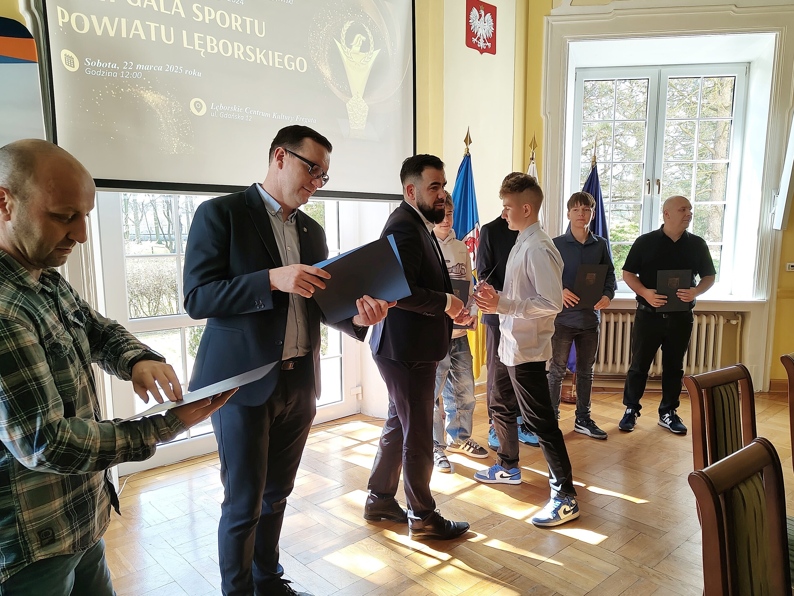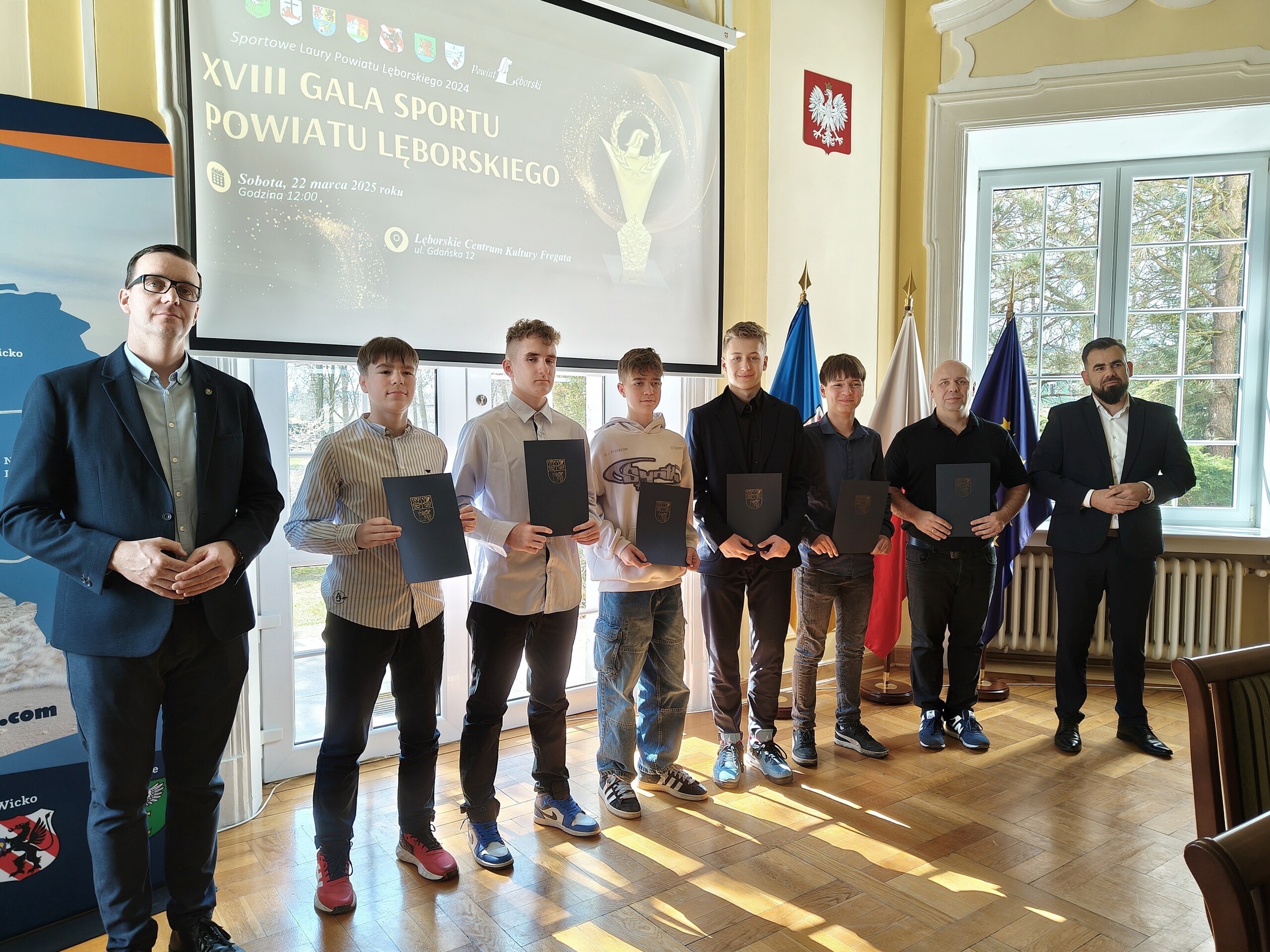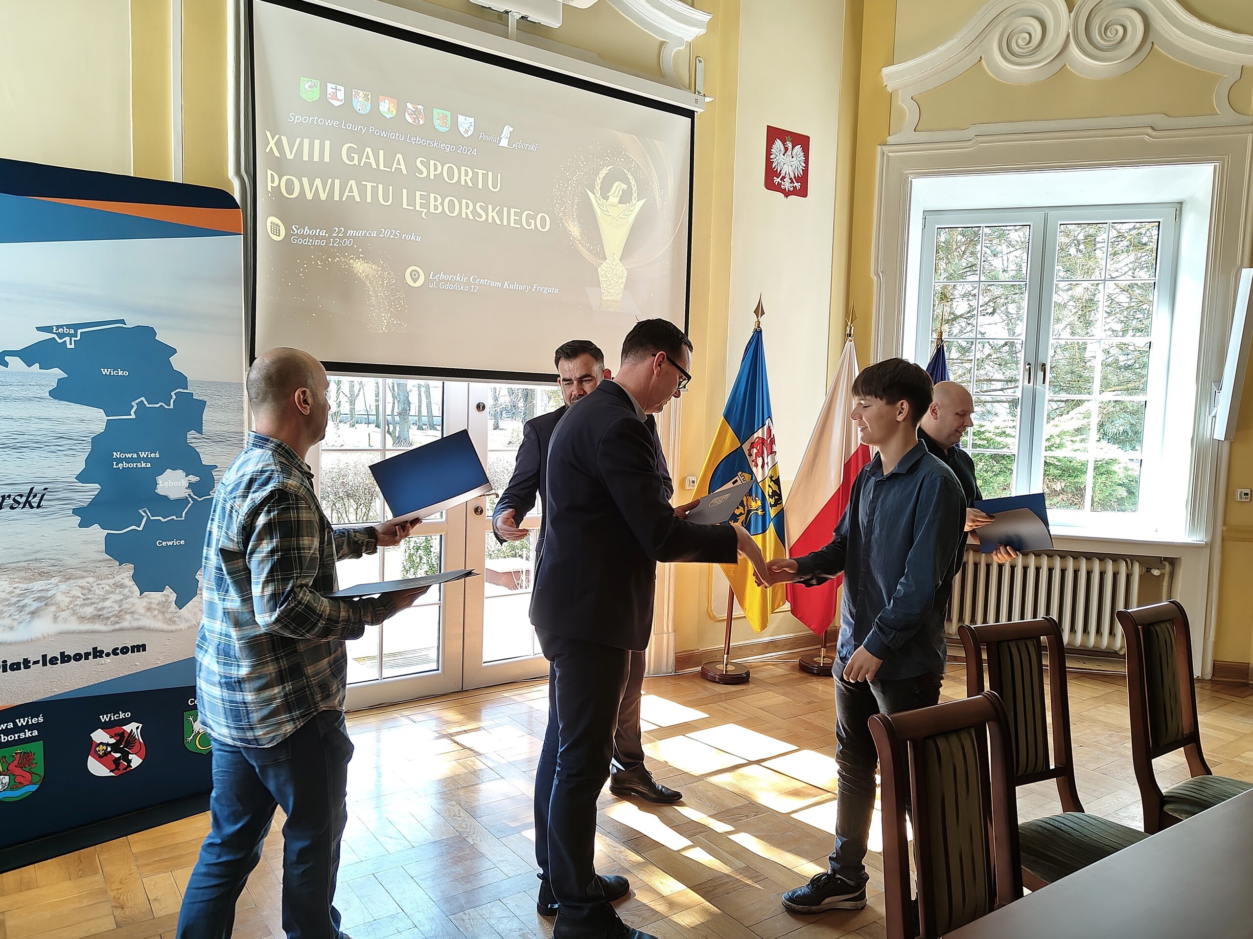 Z młodymi ludźmi i ich trenerami starostowie spotkali się w sali obrad Rady Powiatu Lęborskiego. To kontynuacja nagradzania sportowców za ubiegłoroczne osiągnięcia, która swój początek miała dwa tygodnie temu podczas Gali Sportu Powiatu Lęborskiego. Powodem oddzielnego spotkania ze sportowcami była ich nieobecność podczas Gali, ponieważ w czasie święta powiatowego sportu, rozgrywali mecze walcząc o kolejny sportowy sukces.