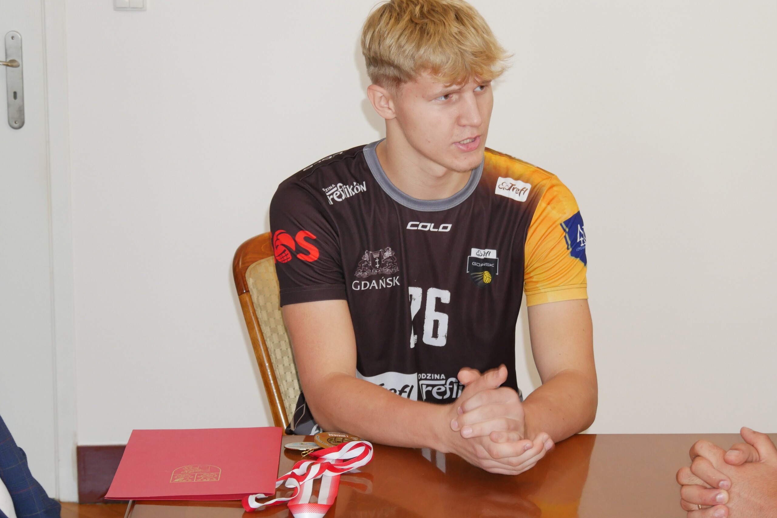 Starosta Tomasz Litwin spotkał się z zawodnikiem Trefla Gdańsk – mieszkańcem powiatu lęborskiego Kamilem Kossewskim, który wraz zespołem wywalczył pierwsze miejsce i złoty medal w Mistrzostwach Polski Juniorów Młodszych w piłce siatkowej.