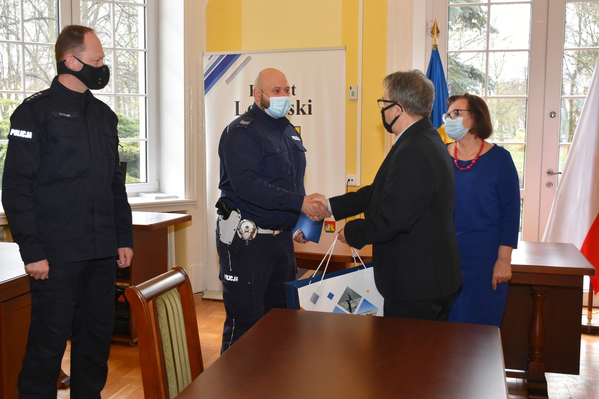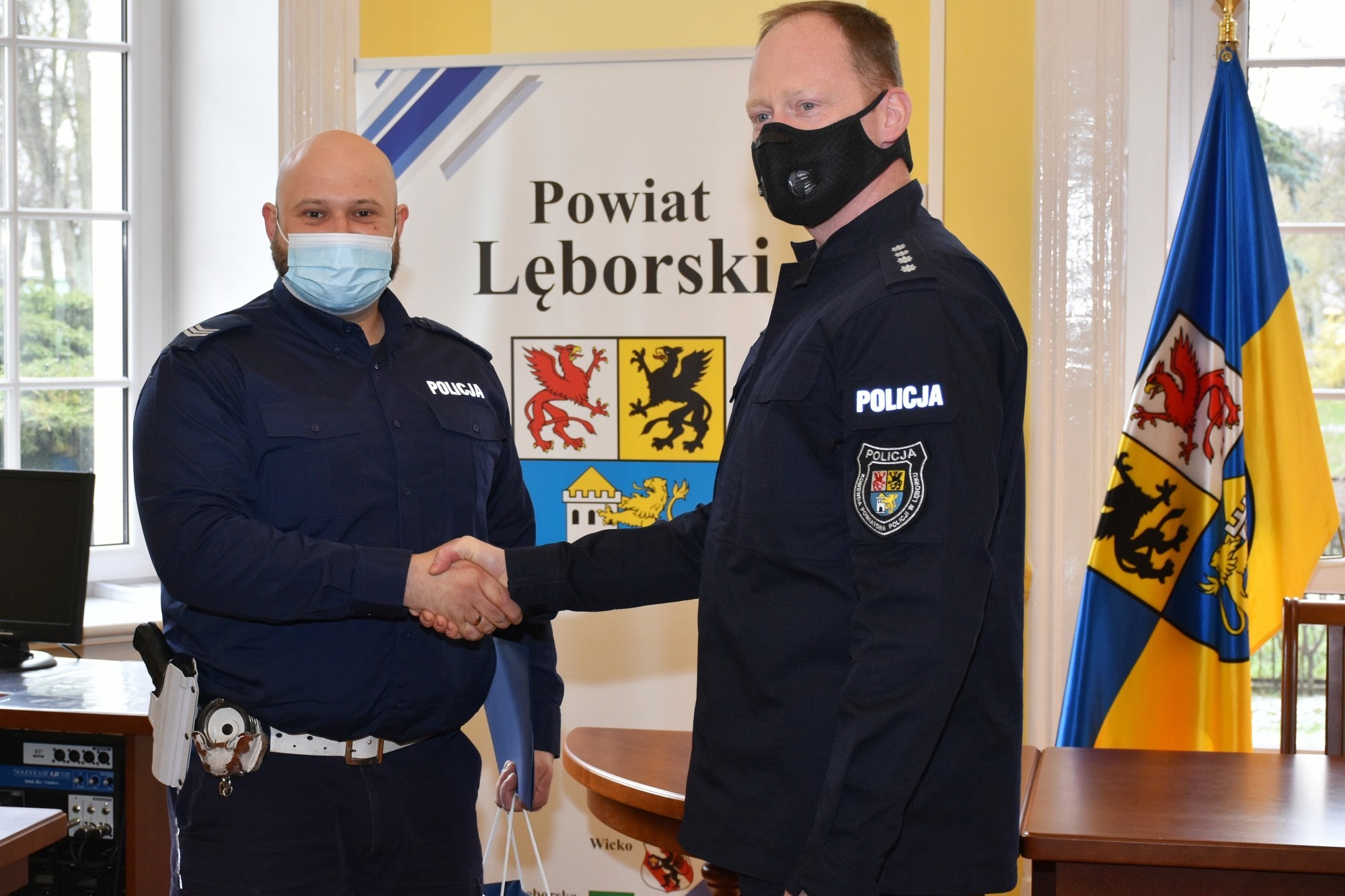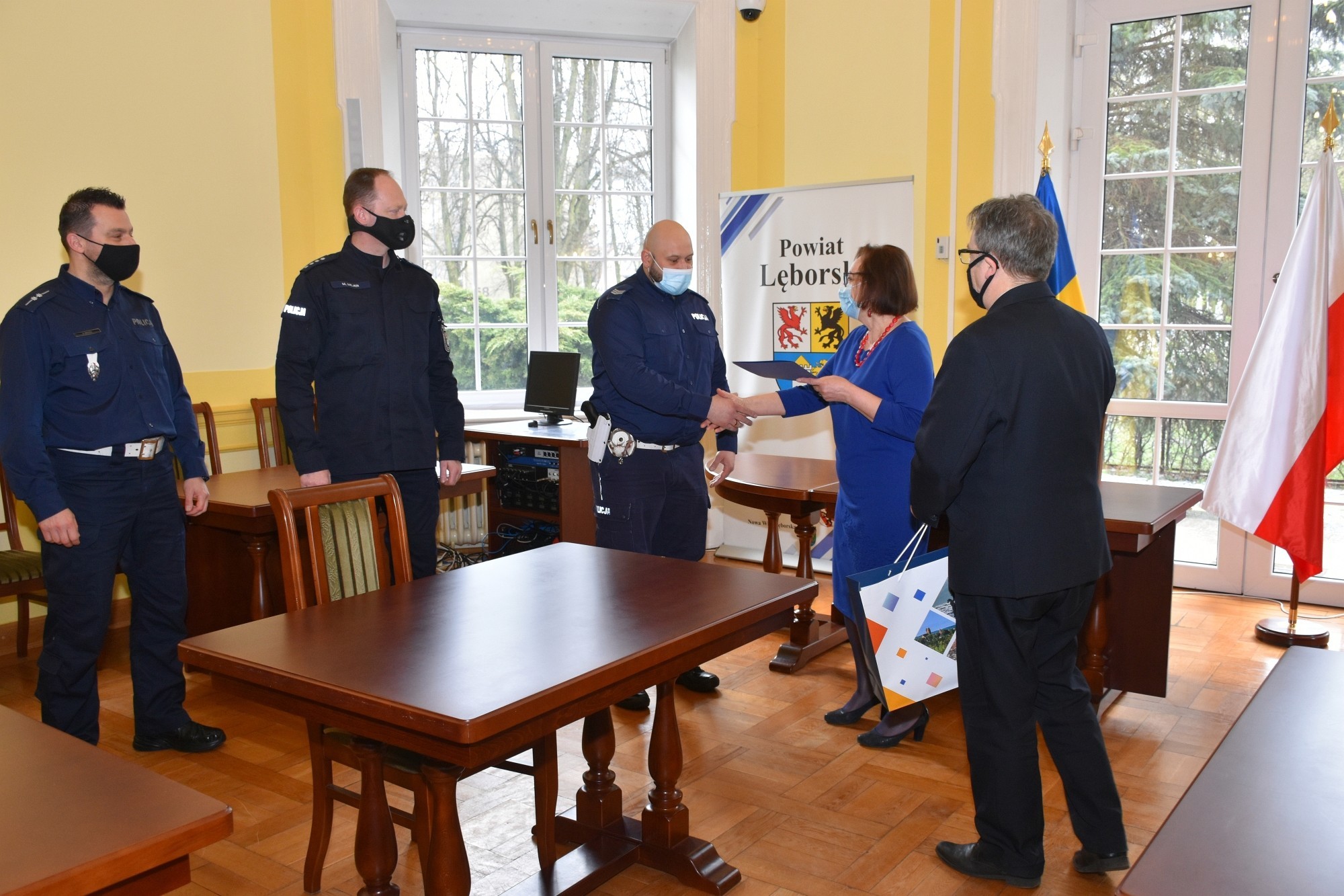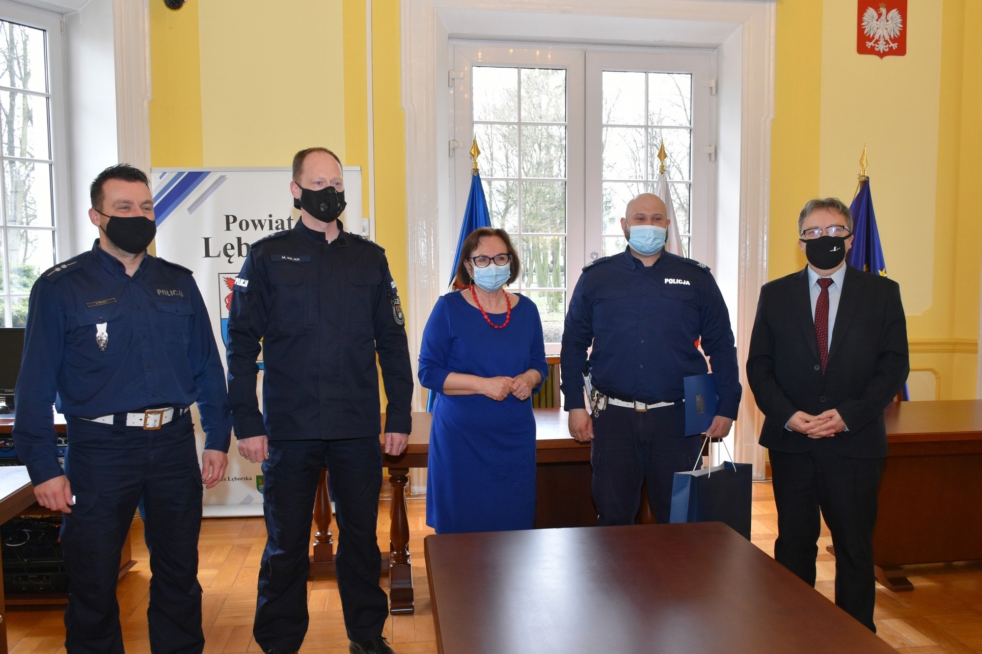 Starosta Lęborski Alicja Zajączkowska wspólnie z Edmundem Głombiewskim, Wicestarostą Lęborskim, uhonorowali sierżanta sztabowego Marcina Gontarka, który będąc po służbie, uniemożliwił ucieczkę i przyczynił się do zatrzymania kierującego pojazdem, który nie zatrzymał się do kontroli. Uciekinier, próbując wydostać się z blokady, uszkodził prywatne auto policjanta.