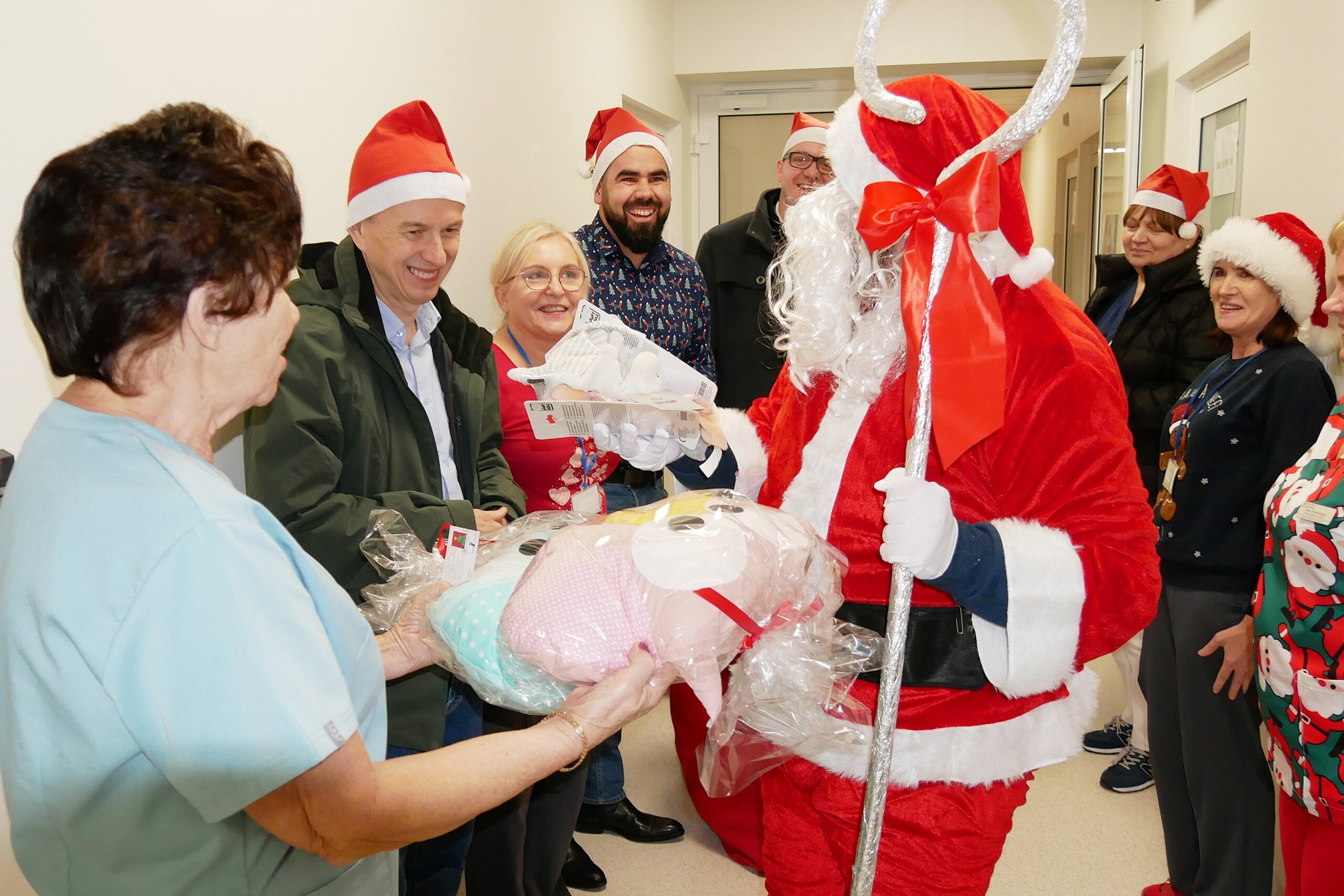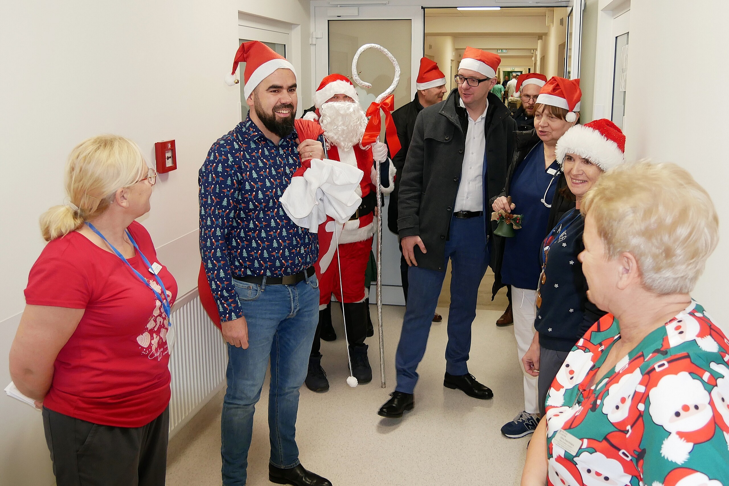 To już tradycja, że w Mikołajki przedstawiciele Powiatu zaglądają z prezentami na szpitalne oddziały, na których przebywają najmłodsi pacjenci. Starosta Tomasz Litwin i wicestarosta Adrian Wenta, w towarzystwie dyrekcji szpitala, ordynatorów, lekarzy i pielęgniarek odwiedzili oddziały: neonatologiczny i pediatryczny.