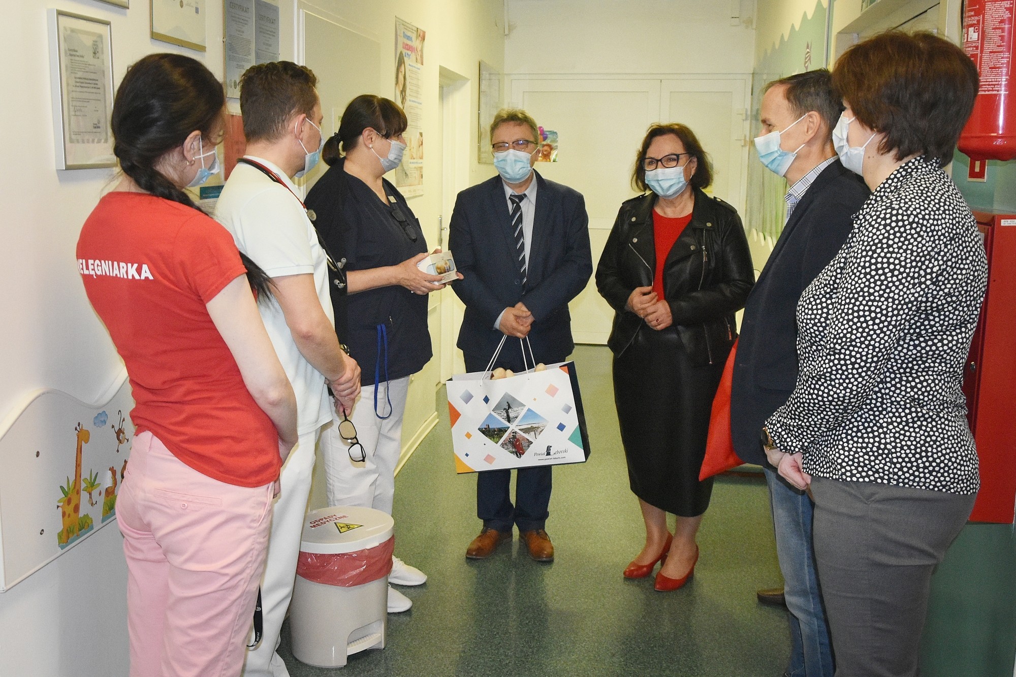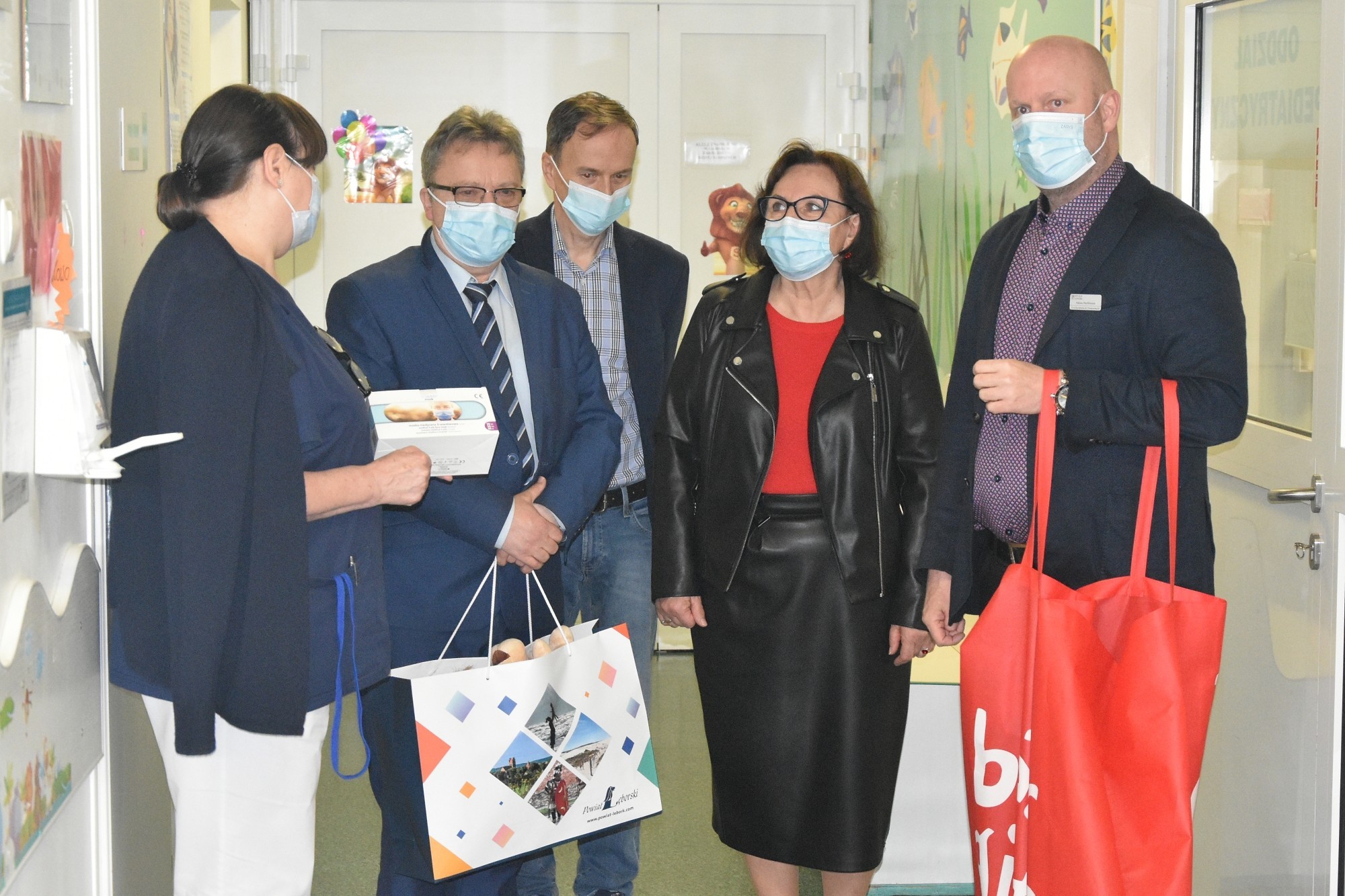 Dzieci przebywające na oddziałach: pediatrycznym i neonatologicznym otrzymały od starostów pluszowe lwy. Mięciutkie przytulanki na pewno choć odrobinę złagodzą czas rozstania z bliskimi. Chociaż stan pandemii został już oficjalnie zakończony, we wszystkich placówkach medycznych w dalszym ciągu obowiązują jeszcze pewne ograniczenia, jak choćby obowiązek zasłaniania ust i nosa oraz ograniczony do minimum kontakt z osobami spoza bezpiecznego środowiska szpitalnego. Dlatego też upominki dla najmłodszych zostały przekazane przez starostów personelowi medycznemu oddziałów, który zadbał, by trafiły do adresatów prezentów. W szpitalnych odwiedzinach starostom towarzyszyli: Marta Frankowska – dyrektor SPS ZOZ, Adam Hoffman, zastępca dyrektora ds. finansowych i Artur Barna, naczelny lekarz lęborskiego szpitala.