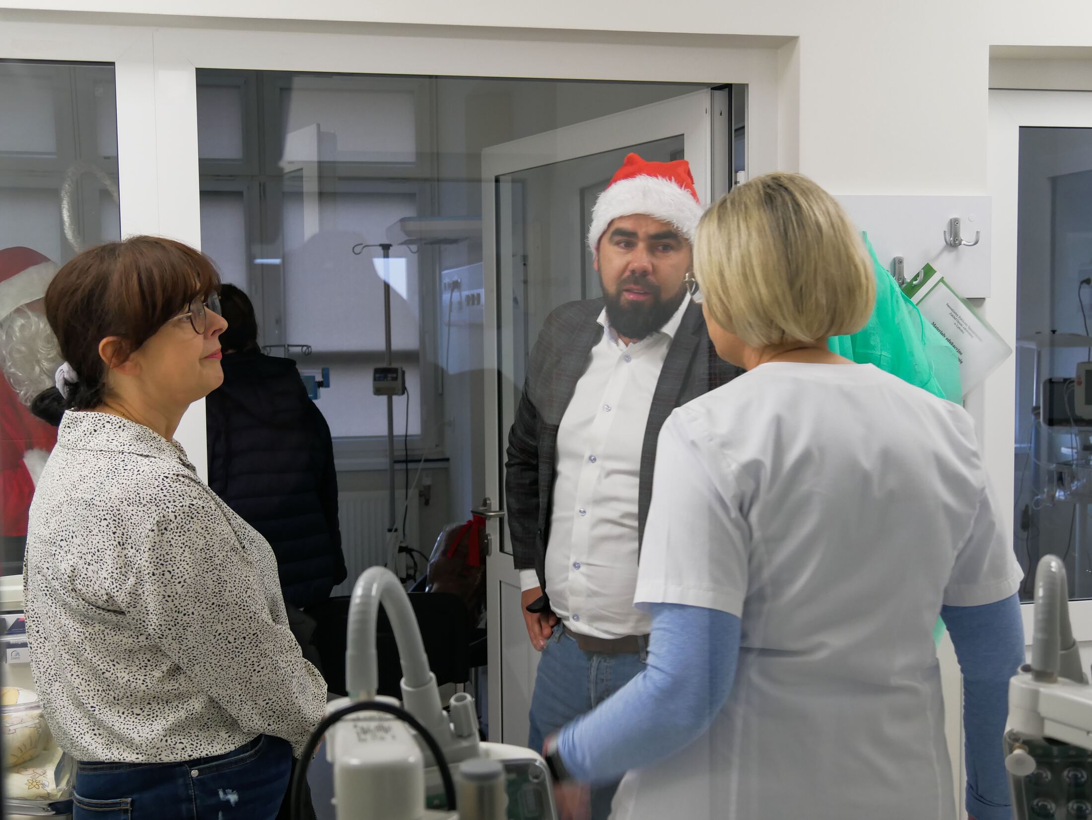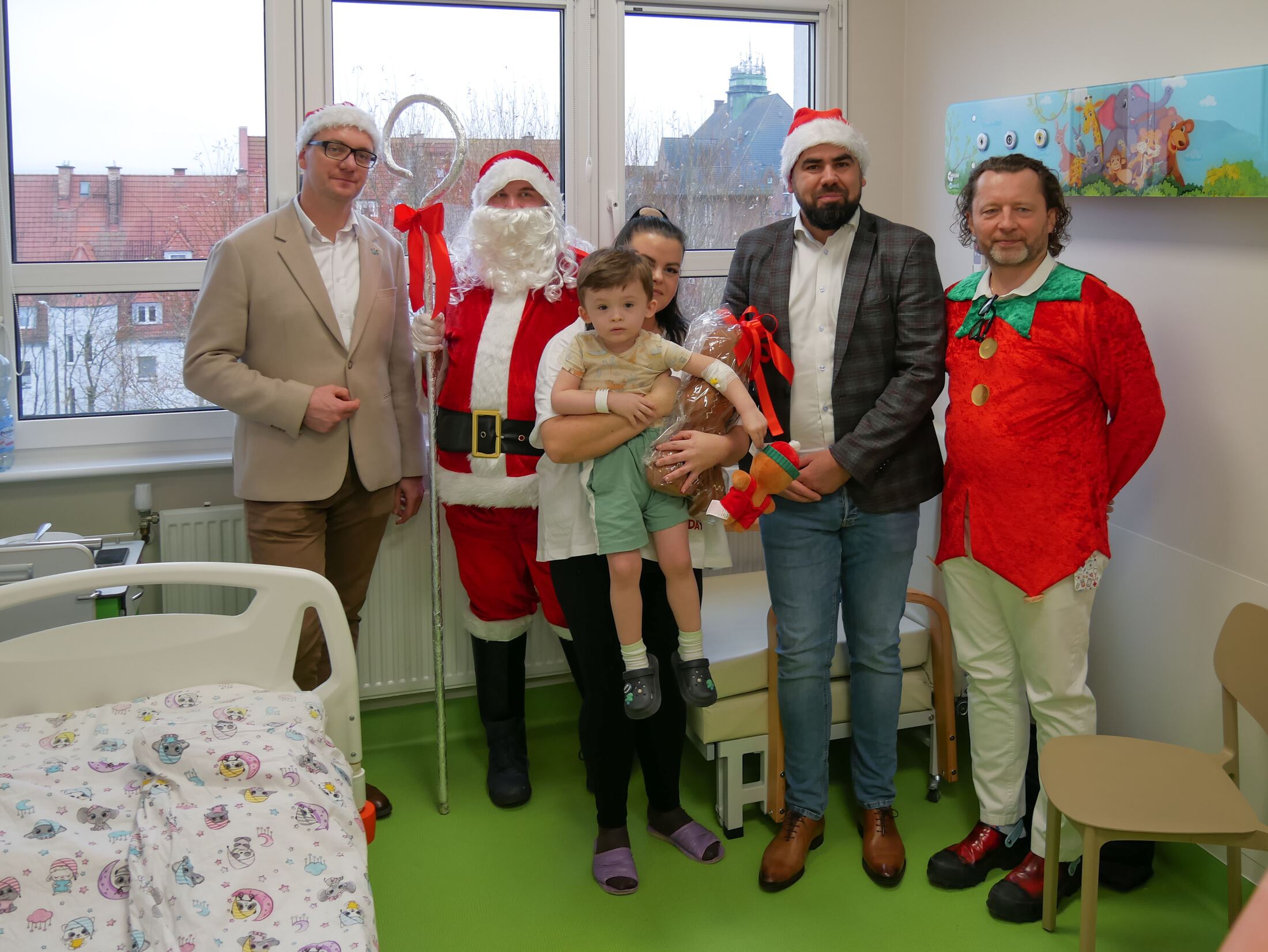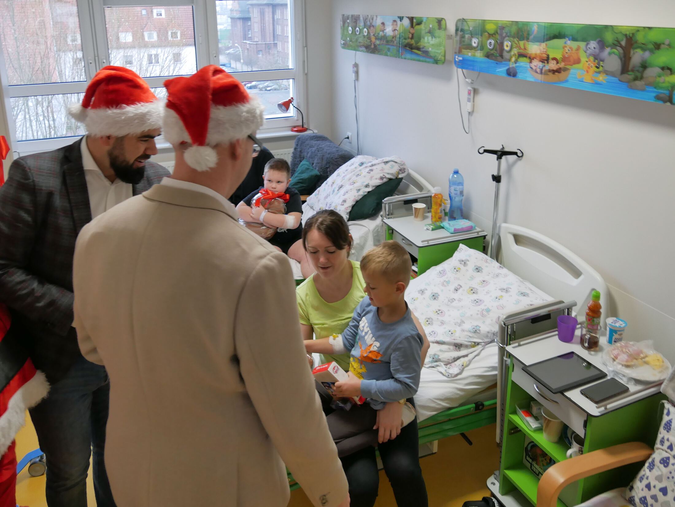 Starostowie wraz z kadrą zarządczą lęborskiego Samodzielnego Publicznego Specjalistycznego Zakładu Opieki Zdrowotnej, pod wodzą kończącej kadencję dyrektor Marty Frankowskiej - podtrzymując wieloletnią tradycję, postanowili przynieść odrobinę radości najmłodszym pacjentom w tym szczególnym okresie, w którym na dobre zaczyna się przeżywanie magicznej atmosfery świąt Bożego Narodzenia. Goście zaopatrzeni w worki pełne prezentów w towarzystwie prawdziwego Mikołaja odwiedzili 14 dzieci przebywających na Oddziale Neonatologicznym i 7 pacjentów Oddziału Pediatrycznego.