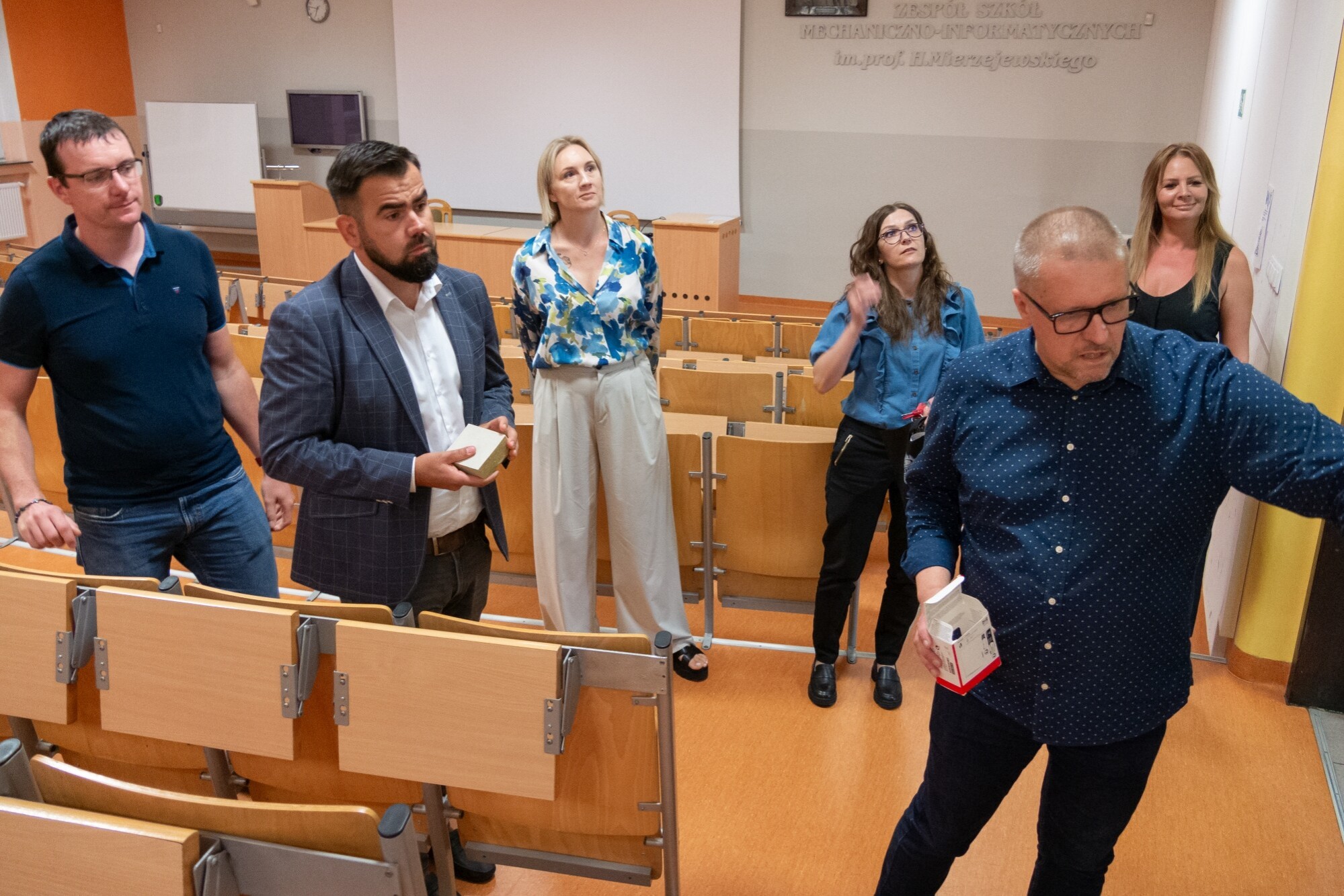 W Zespole Szkół Mechaniczno-Informatycznych starostów przyjął dyrektor Grzegorz Popin wraz z wicedyrektorkami: Marleną Pepłowską i Iwoną Kłosowską. Wśród rozmów pojawił się temat pilnych napraw w sali audiowizualnej, która oprócz oczywistych funkcji szkolnych, pełni również często rolę miejsca spotkań szkoleniowych i okolicznościowych dla różnych instytucji, stowarzyszeń i podmiotów zewnętrznych. Rozmowy dotyczyły również możliwości zagospodarowania pomieszczeń po byłej stołówce i kuchni na pracownie zajęć dydaktycznych. Starosta zapoznał się też z procesem organizacji praktyk zawodowych dla uczniów, ułatwiających przyszłe podjęcie pracy.