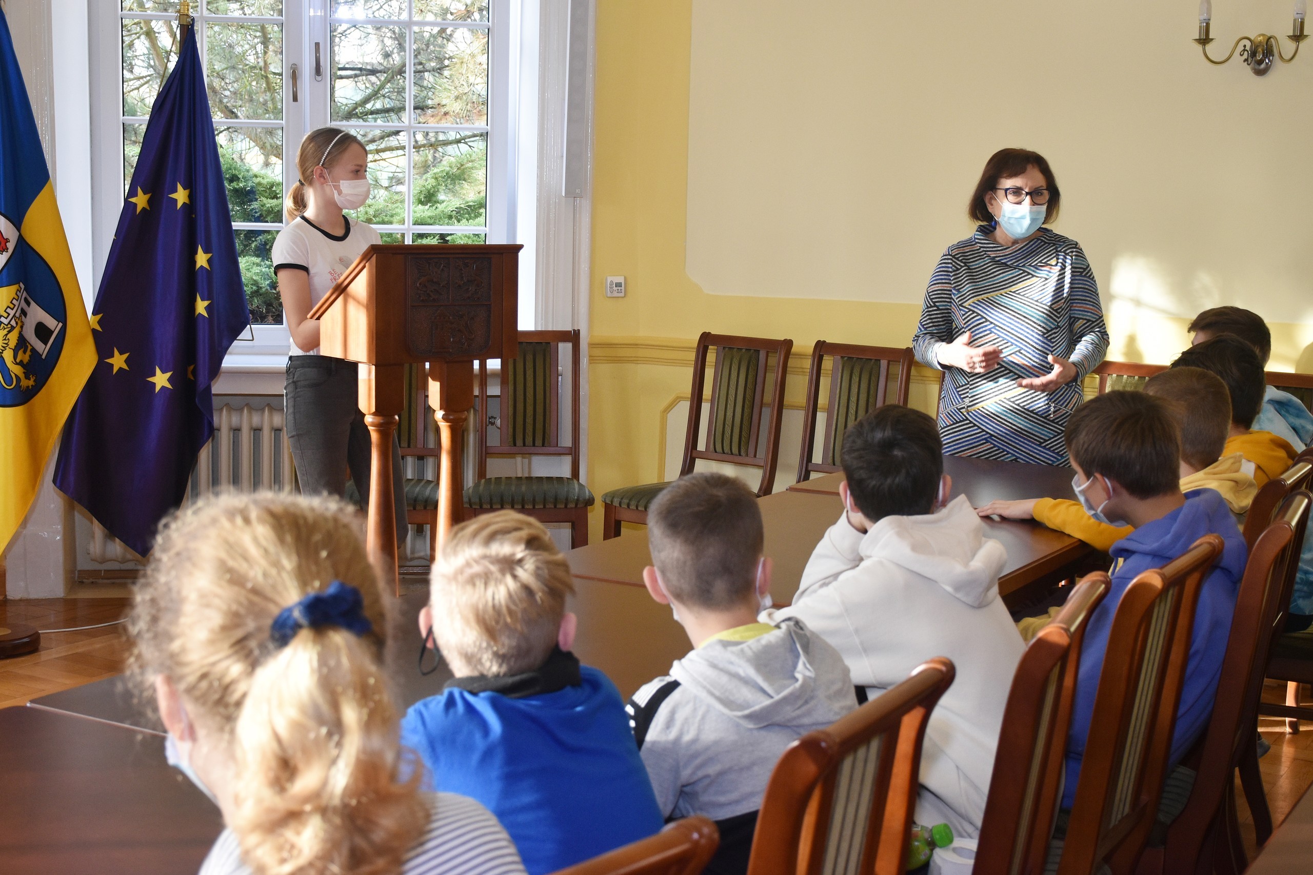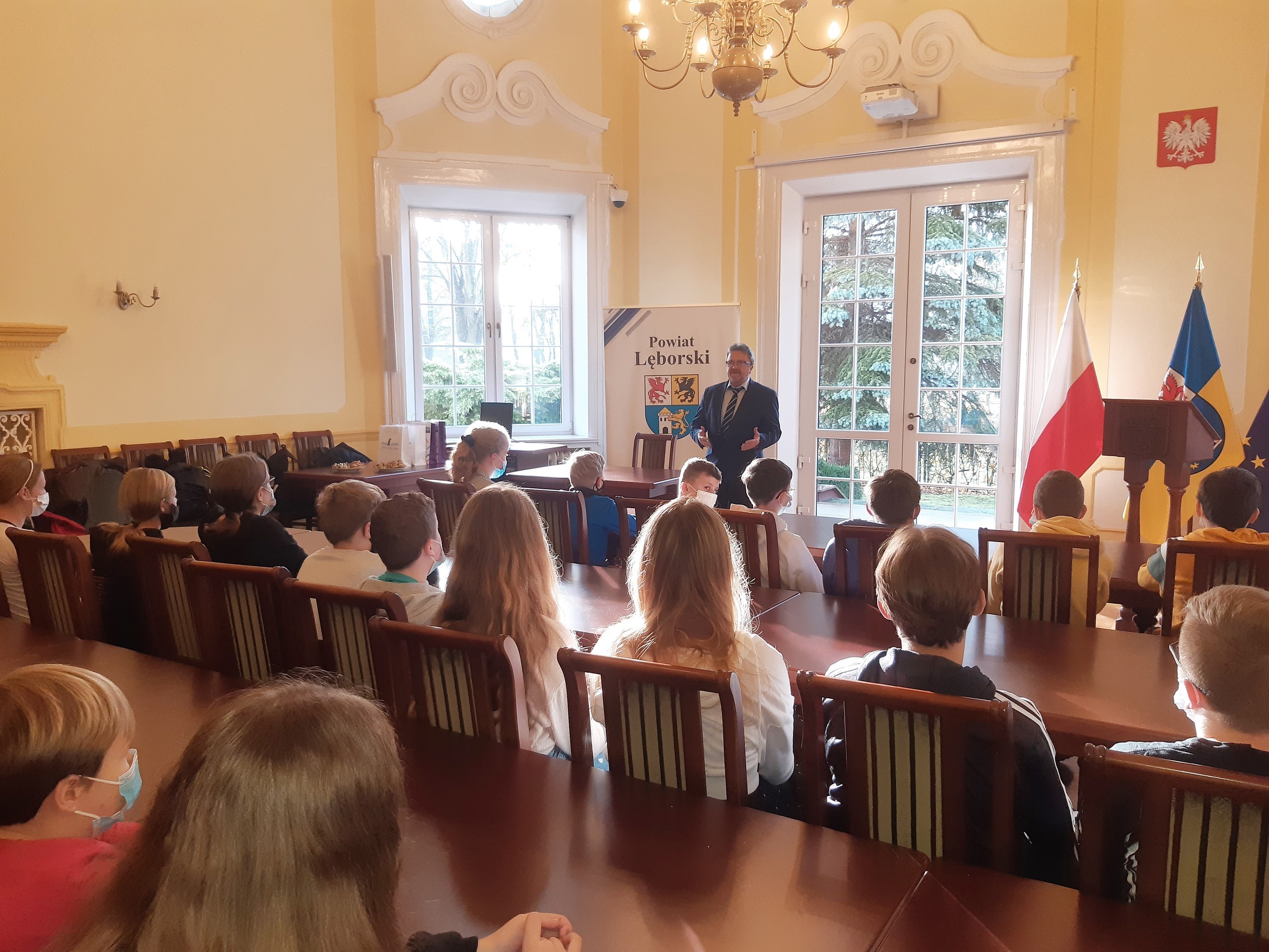 Czym różni się Starostwo Powiatowe od Urzędu Miasta czy Urzędu Gminy, jakie sprawy znajdują się w kompetencjach Starosty i Powiatu, jaka jest struktura urzędu – o tym i wielu innych aspektach starostwa dowiedzieli się uczniowie klasy 7d ze Szkoły Podstawowej nr 1, uczestniczący w projekcie „Otwarta Firma”.