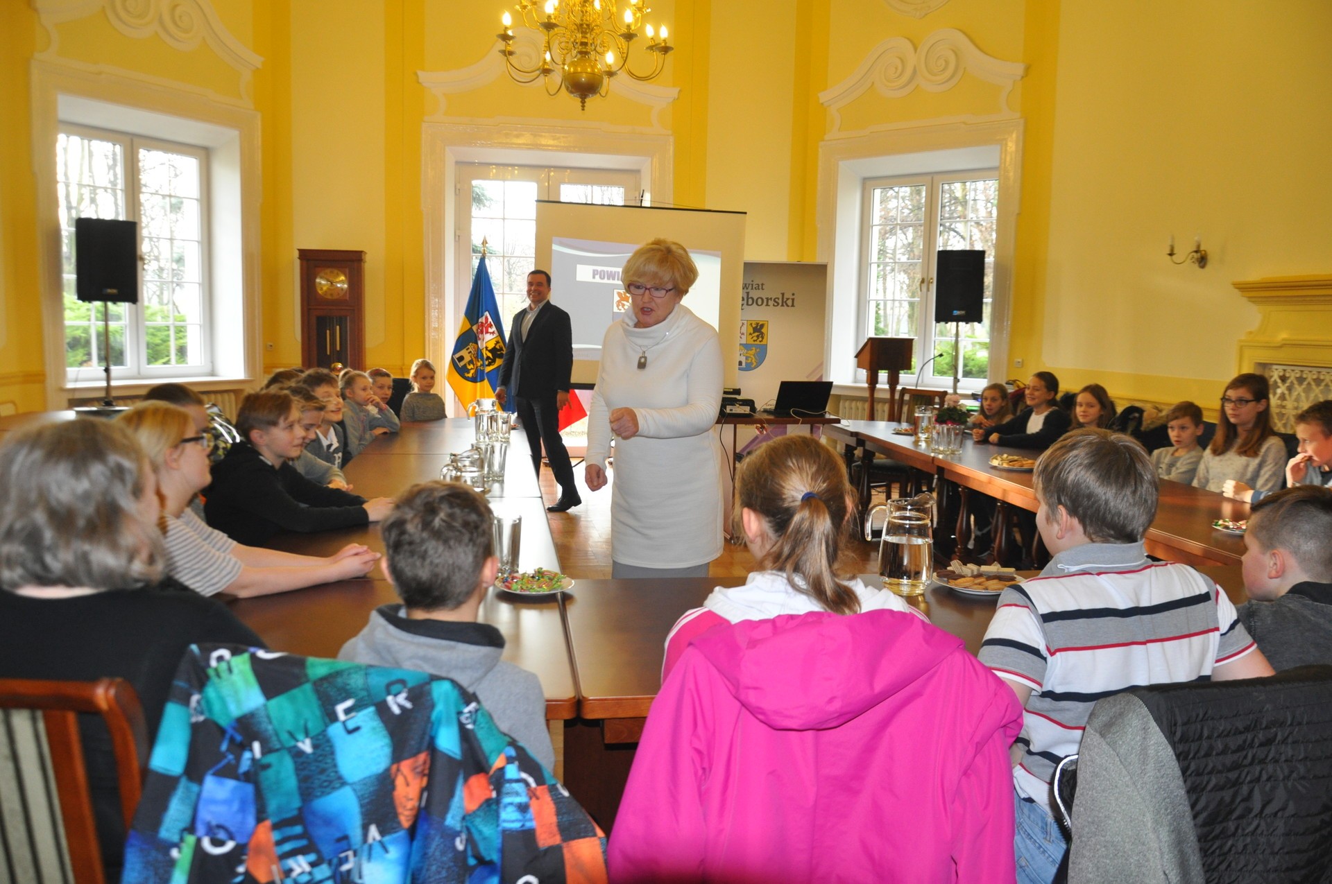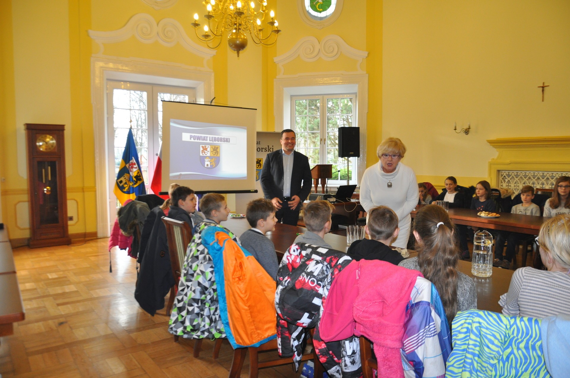 To już kolejne spotkanie pracowników starostwa z dziećmi i młodzieżą z lęborskich szkół. Całkiem niedawno urząd odwiedziła młodzież z klas gimnazjalnych Szkoły Podstawowej nr 1. Tym razem gościły w starostwie dzieci z klas piątych Szkoły Podstawowej nr 3, wraz z opiekunami. Młodych gości w sali obrad Rady Powiatu Lęborskiego powitała Teresa Ossowska – Szara, starosta lęborski. Opowiedziała dzieciom o podstawowych funkcjach powiatu i roli Rady Powiatu w stanowieniu lokalnego prawa. Wicestarosta Elżbieta Godderis opowiedziała m.in. o działających na terenie powiatu lęborskiego organizacjach pozarządowych. Na temat urzędniczej codziennej pracy oraz roli jaką urząd pełni w funkcjonowaniu lokalnej społeczności mówił Krzysztof Król, sekretarz powiatu lęborskiego. Ważnym aspektem działań powiatu są wszystkie te czynności, które służą zachowaniu ekologicznej czystości jego obszaru, która to cecha jest jednym z największych walorów terenu, na którym rokrocznie wypoczywają setki tysięcy turystów z kraju i zagranicy.