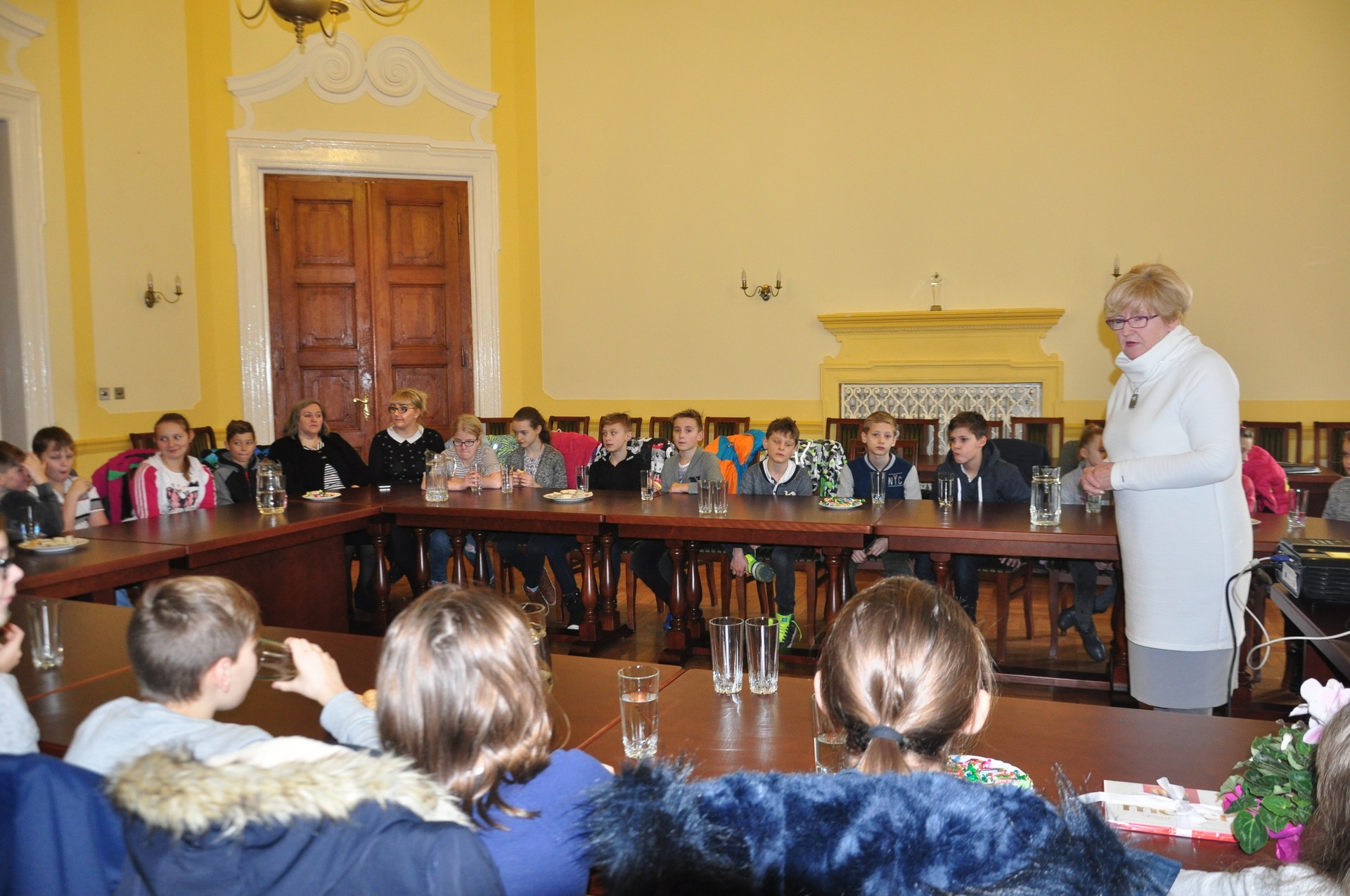 Spotkanie odbyło się w ramach zajęć lekcyjnych i służyło zapoznaniu dzieci z zakresem działalności i metodami pracy urzędnika samorządowego. Zakończył je oczywiście słodki poczęstunek i drobne upominki dla dzieci.