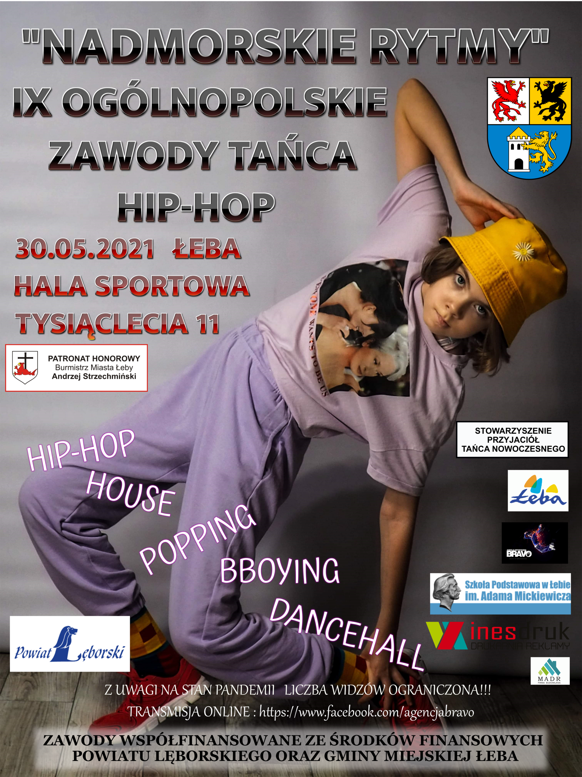 "Stowarzyszenie Przyjaciół Tańca Nowoczesnego zaprasza na zawody taneczne pn. "Nadmorskie Rytmy", które odbędą się w dniach 29-30 maja 2021 r. w hali sportowej przy