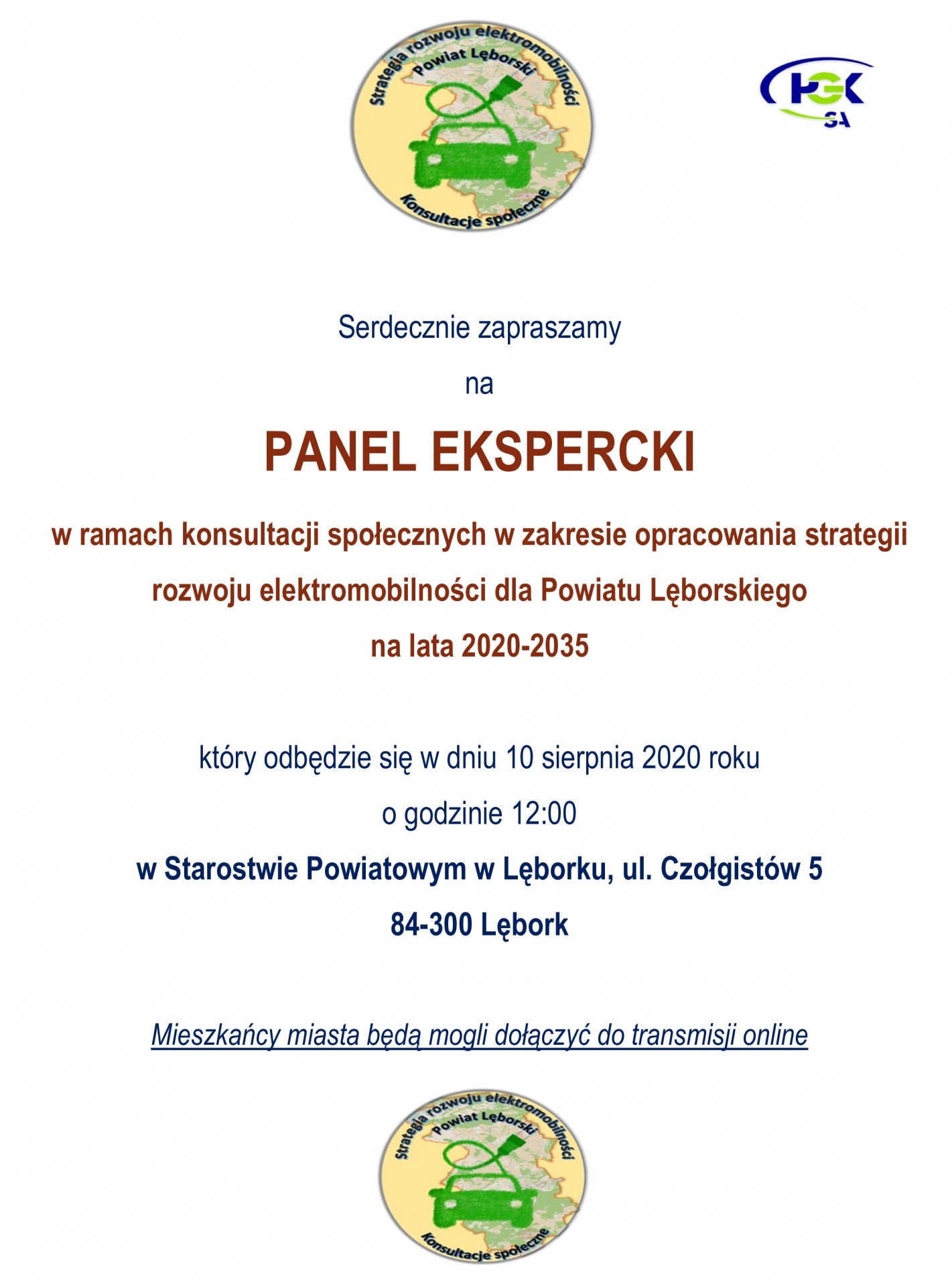 10 sierpnia (poniedziałek) o godz. 12.00 odbędzie się ogólnodostępny panel ekspercki w związku z opracowywaną w Powiecie Lęborskim Strategią Rozwoju Elektromobilności. Dzięki transmisji internetowej, każdy będzie mógł zadać pytanie specjalistom.