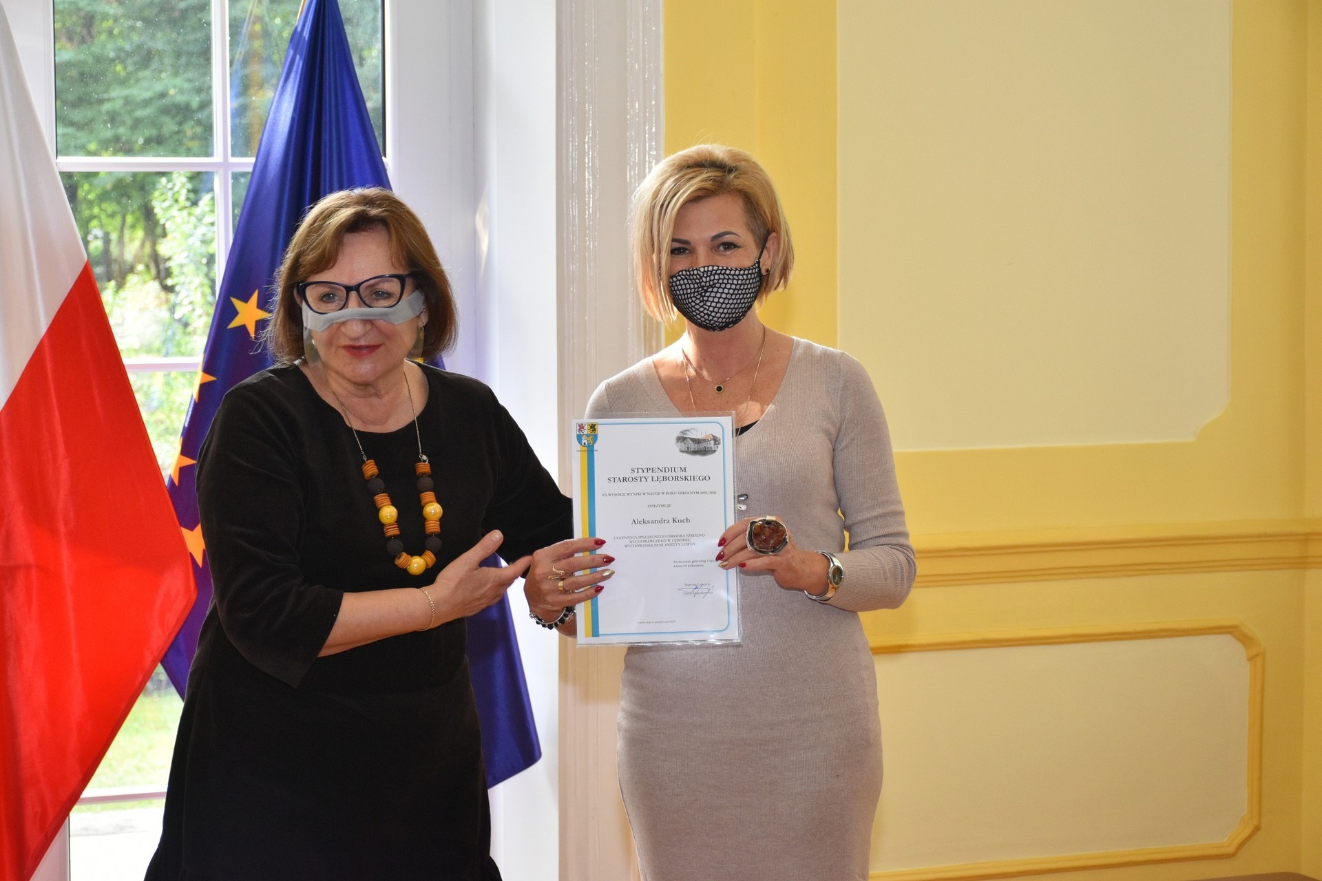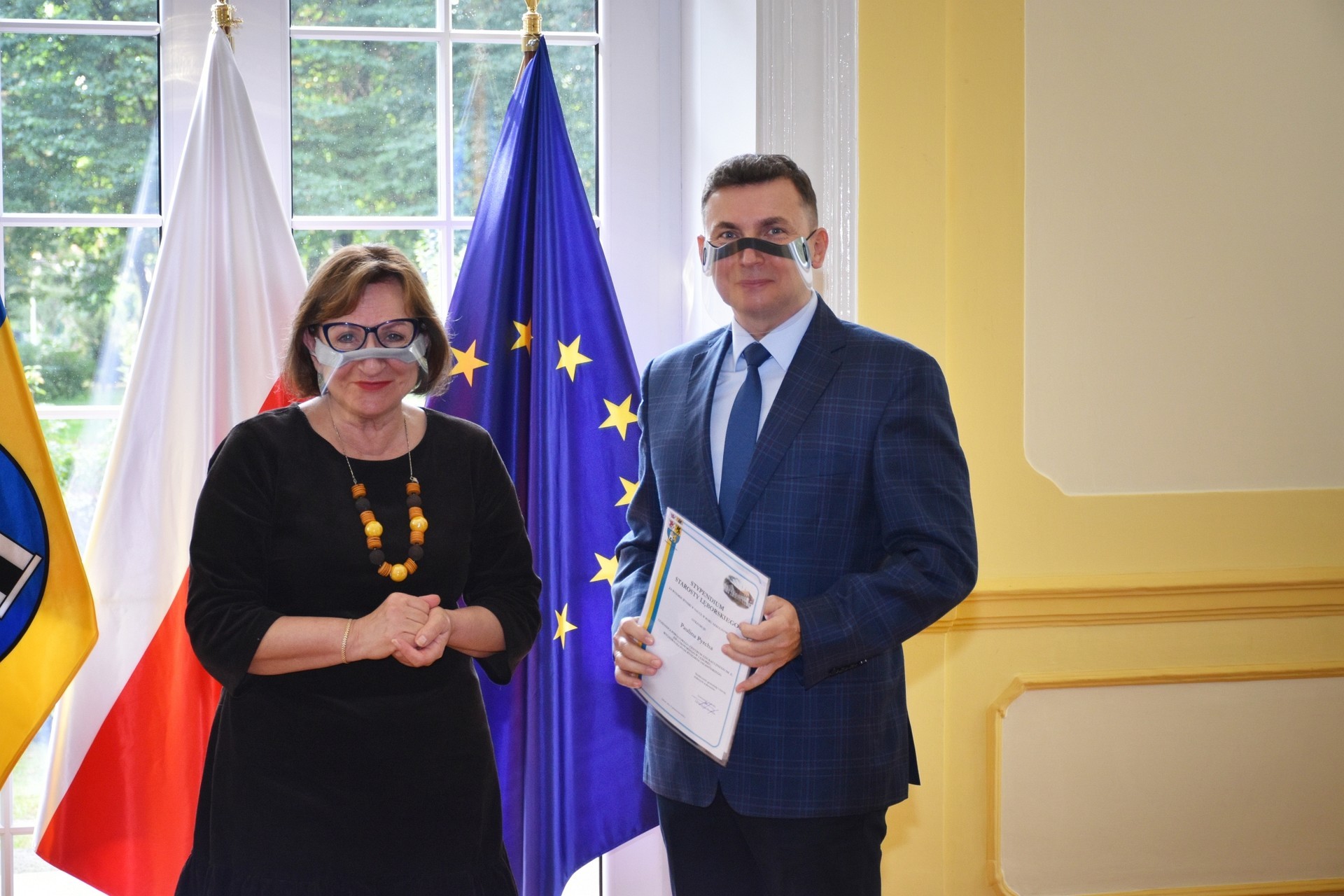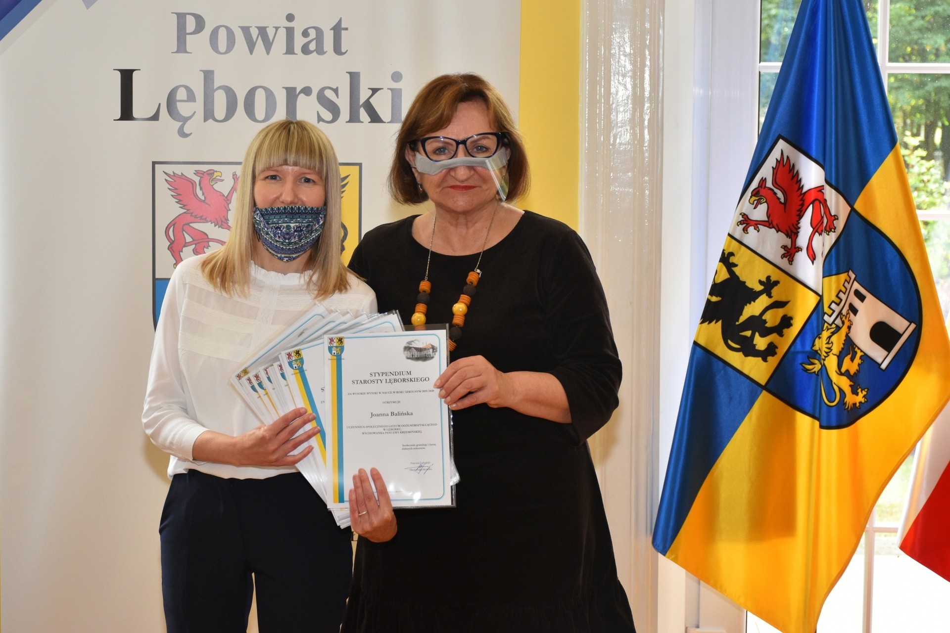 Niezwykle ścisłe grono osób, w którym odbyło się przekazanie dokumentów wynika z konieczności ograniczenia do absolutnego minimum prawdopodobieństwa zagrożenia rozprzestrzenianiem się Covid-19. Wobec dynamicznie rozwijającej się sytuacji pandemicznej w skali kraju, powiat lęborski w dalszym ciągu pozostaje przysłowiową „zieloną wyspą” i zachowaniu tego stanu służą m.in. działania polegające na ograniczeniu spotkań w szerszym gronie osób. Tym razem, w Sali obrad Rady Powiatu pojawili się” Ewa Magott – dyrektor Społecznego Liceum Ogólnokształcącego, Danuta Rybak – dyrektor Specjalnego Ośrodka Szkolno-Wychowawczego i Artur Obolewski – dyrektor Powiatowego Centrum Edukacyjnego. – Z każdego pojedynczego sukcesu uczniów bardzo się cieszę – mówiła Alicja Zajączkowska, Starosta Lęborski – To również powód do dumy dla każdej szkolnej społeczności i to bez względu na to jak duże grono uczniów uzyskuje wyróżnienia. Każdy pojedynczy sukces ucznia, to również sukces danej szkoły i jej kadry pedagogicznej. Gratuluję serdecznie wszystkim wyróżnionym i nauczycielom – współtwórcom ich sukcesu.