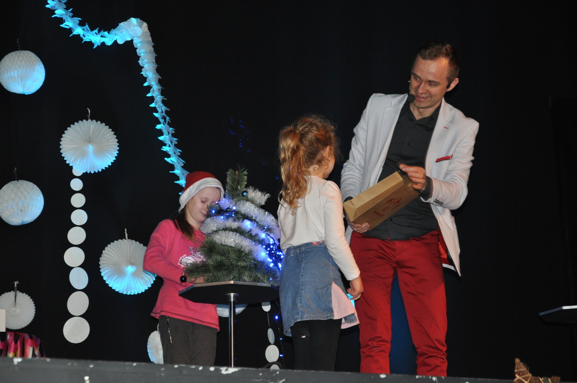 Święta Bożego Narodzenia to dla wielu z nas czas magiczny, przepełniony radością, dobrymi słowami, rodzinną atmosferą. I tych elementów na pewno nie zabrakło podczas tegorocznego bożonarodzeniowego spotkania pieczy zastępczej. Cudowny klimat muzyczny zapewniła grupa wokalistów klasy artystycznej Liceum Ogólnokształcącego nr 2 w Lęborku wraz z opiekunem, Panią Jolantą Mrożewską. Natomiast w świat magii zabrał uczestników iluzjonista, Damian Spętany.