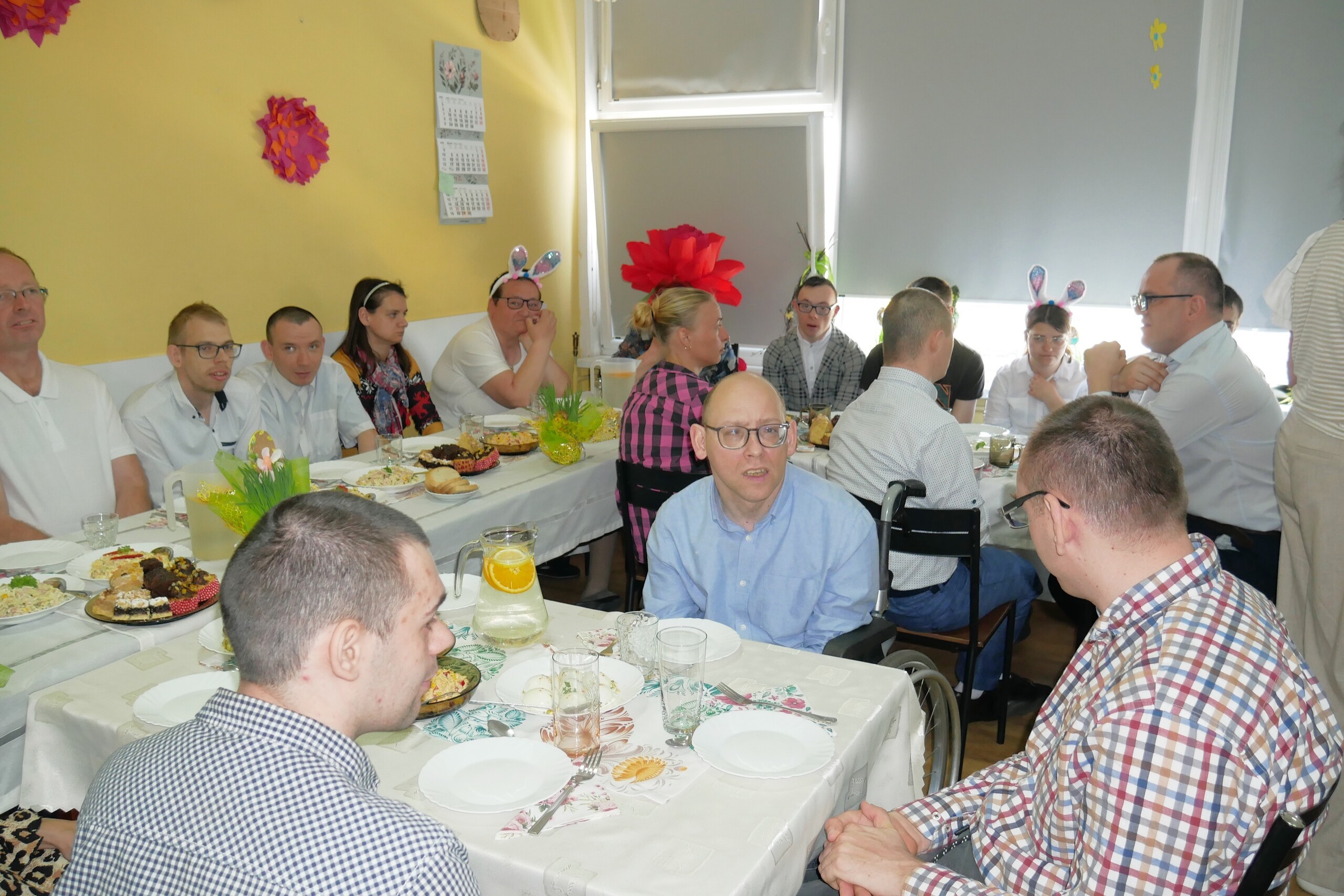 Życzenia pogody ducha, wiosennego nastroju, pozytywnego nastawienia do codzienności i mokrego dyngusowego poniedziałku złożył Starosta Lęborski Tomasz Litwin uczestnikom zajęć i kadrze Warsztatu Terapii Zajęciowej w Lęborku. Jak co roku Warsztat przygotował dla swoich podopiecznych i przyjaciół symboliczne wielkanocne śniadanie.