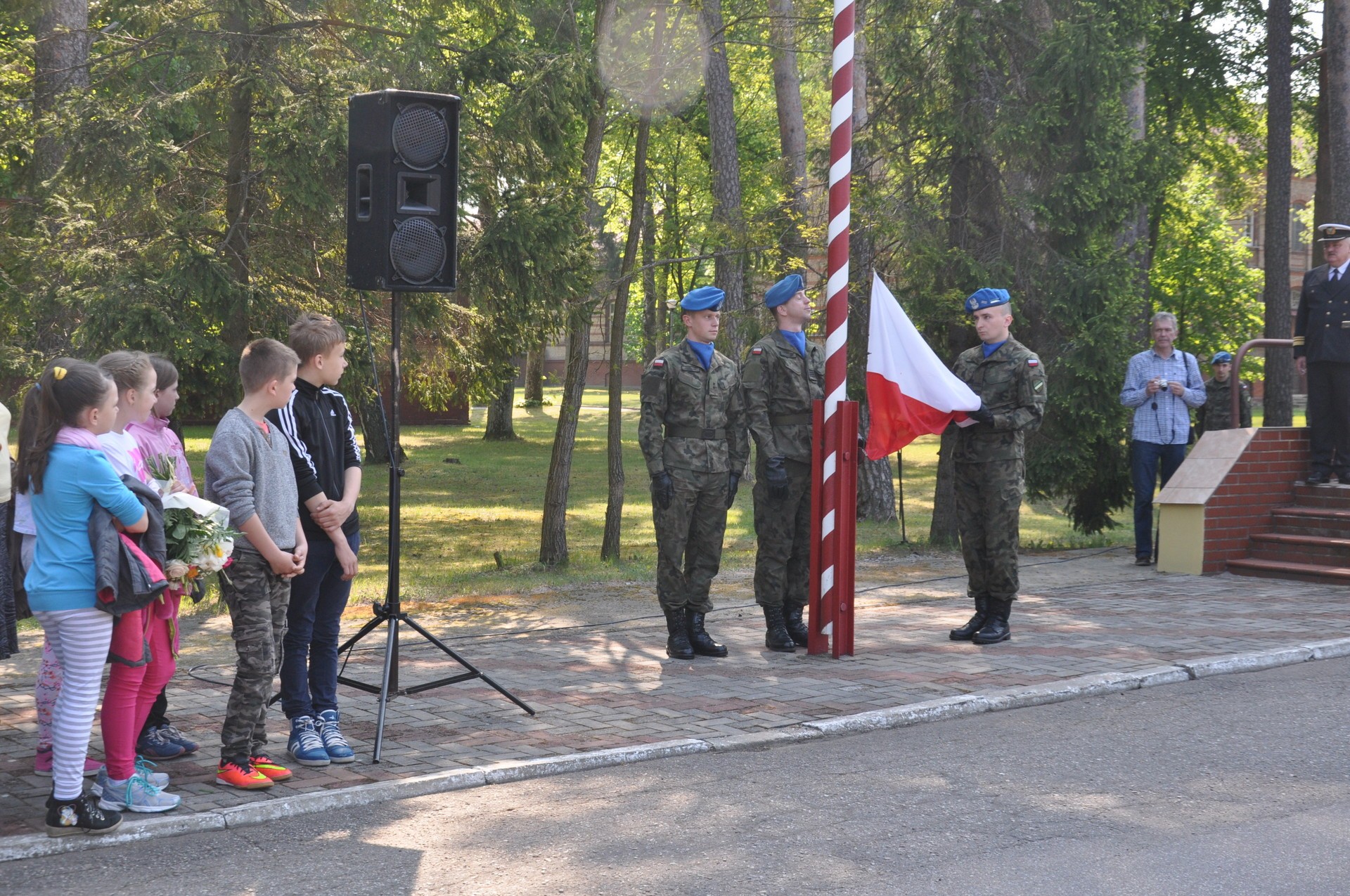 Po uroczystościach na placu apelowym delegacje przeszły przed sztab gdzie pod tablicą pamiątkową złożono kwiaty.