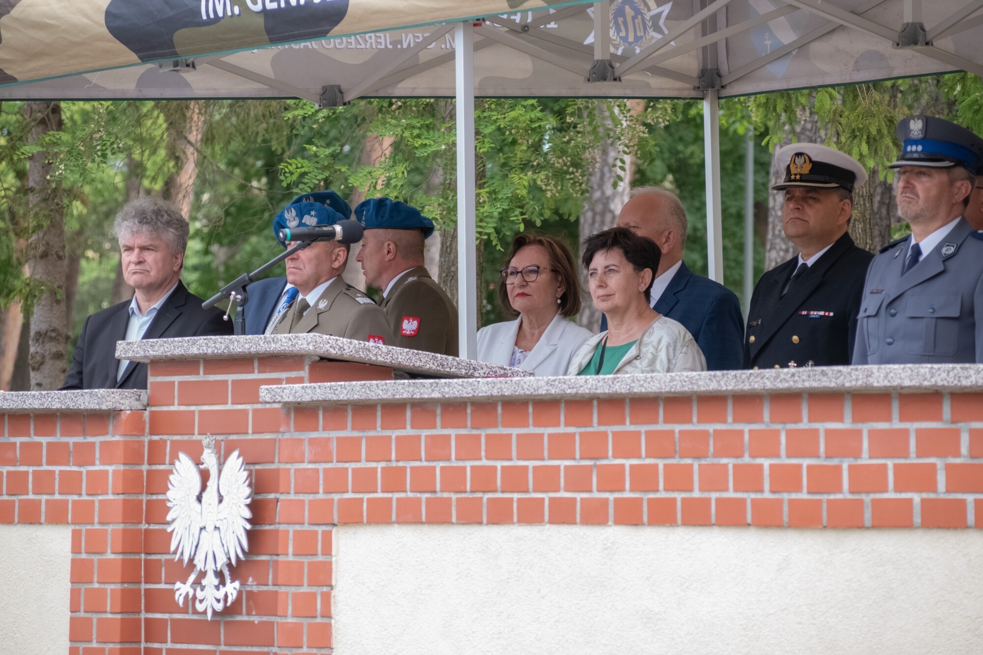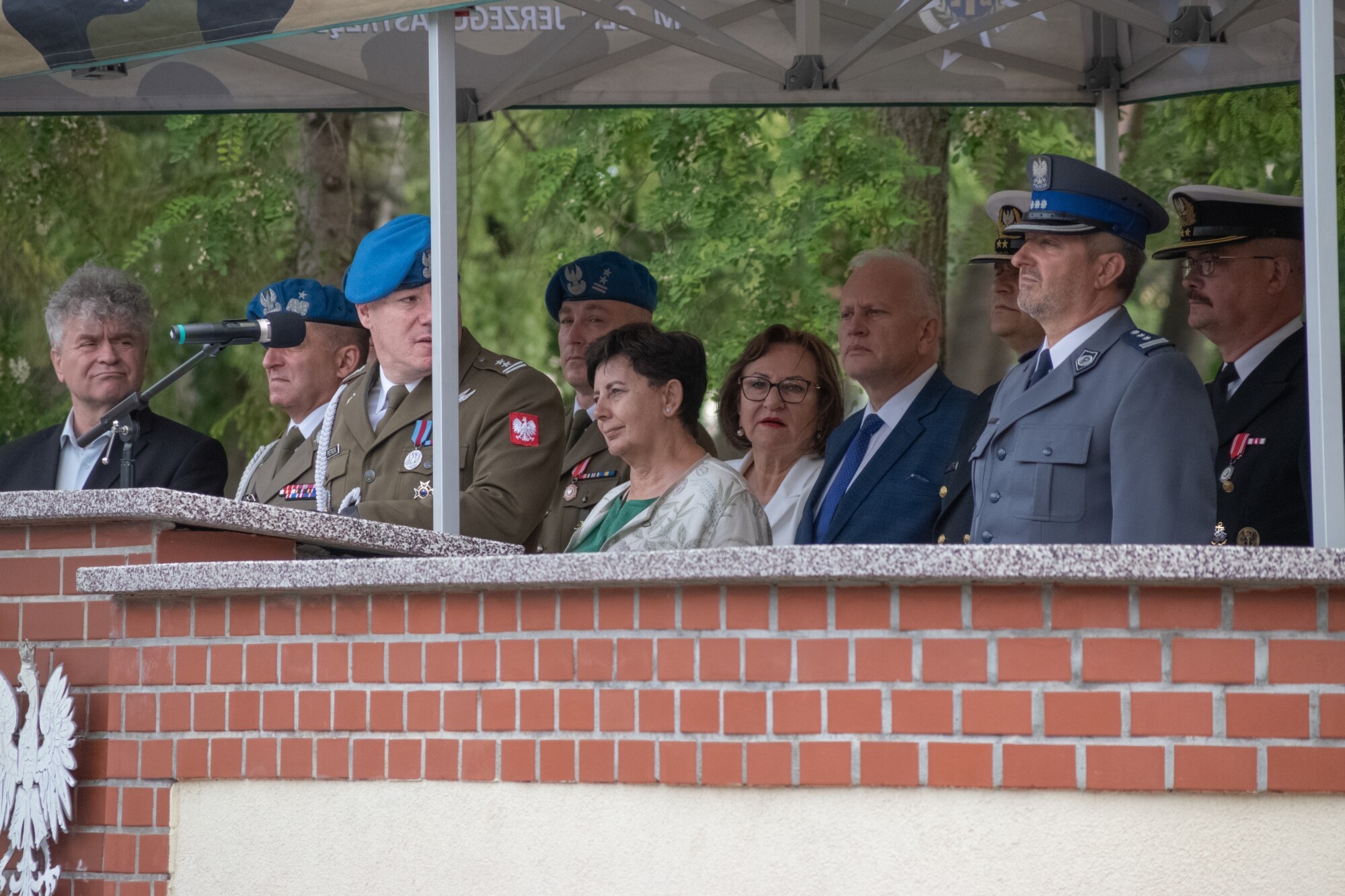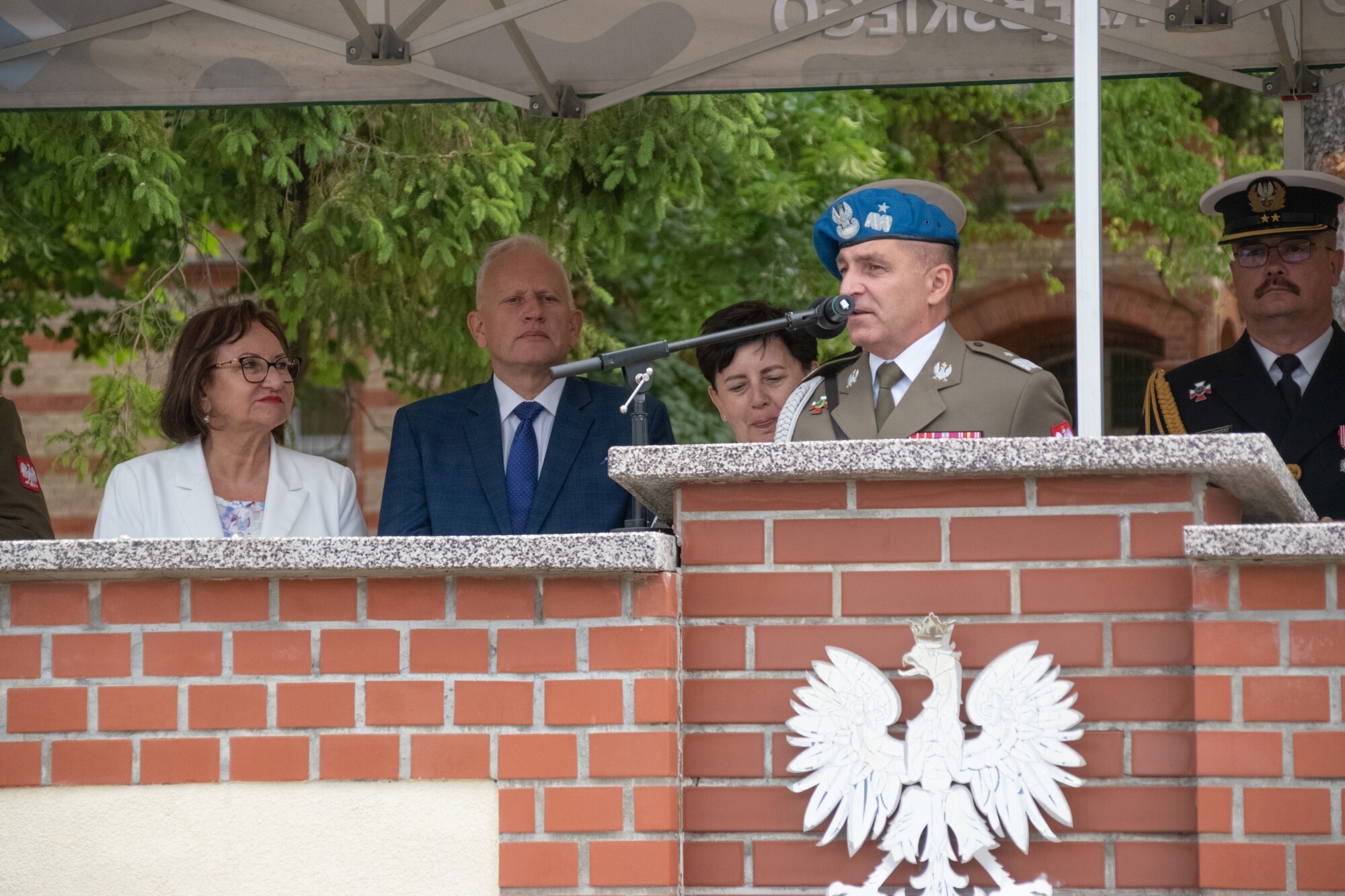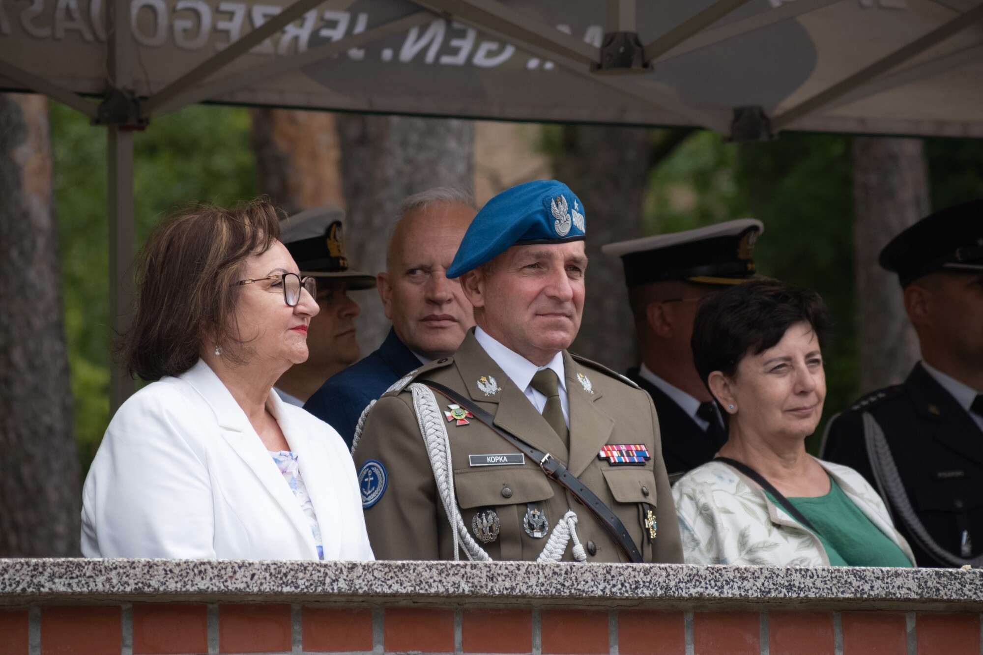 W imieniu władz Powiatu Lęborskiego, życzenia żołnierzom złożyła Alicja Zajączkowska – Starosta Lęborski, odnosząc się m.in. do przywołanych przez ppłk. M. Pietrzaka rozważań z warszawskiej konferencji dotyczącej modernizacji wojska w kontekście wojny w Ukrainie. - Chcę dzisiaj wyrazić szacunek dla waszej profesjonalnej i pełnej poświęcenia służby – mówiła starosta Alicja Zajączkowska – Gdyby ktoś nas – samorządowców zapytał po co jest wojsko i komu służy, to odpowiedzielibyśmy zgodnie, że na pewno służy narodowi, kiedy granice państwa są zagrożone. Powiedzielibyśmy również, że służy społeczności lokalnej, bo nie ma takiego wydarzenia patriotycznego w powiecie, mieście, czy gminach powiatu lęborskiego, gdzie wojsko nie byłoby obecne. To dodaje blasku tym uroczystościom i podnosi wymiar patriotycznego oddziaływania. Dziękuję wam również za tę codzienną pracę, którą wkładacie w proces kształcenia klas mundurowych w Powiatowym Centrum Edukacyjnym, poprzez który inspirujecie młodzież do osiągania wysokich wyników i uczestniczenia w różnych turniejach i zawodach. Jesteśmy dumni , że mamy na naszym terenie taką wojskową jednostkę i tak dobrze wyszkolonych żołnierzy.