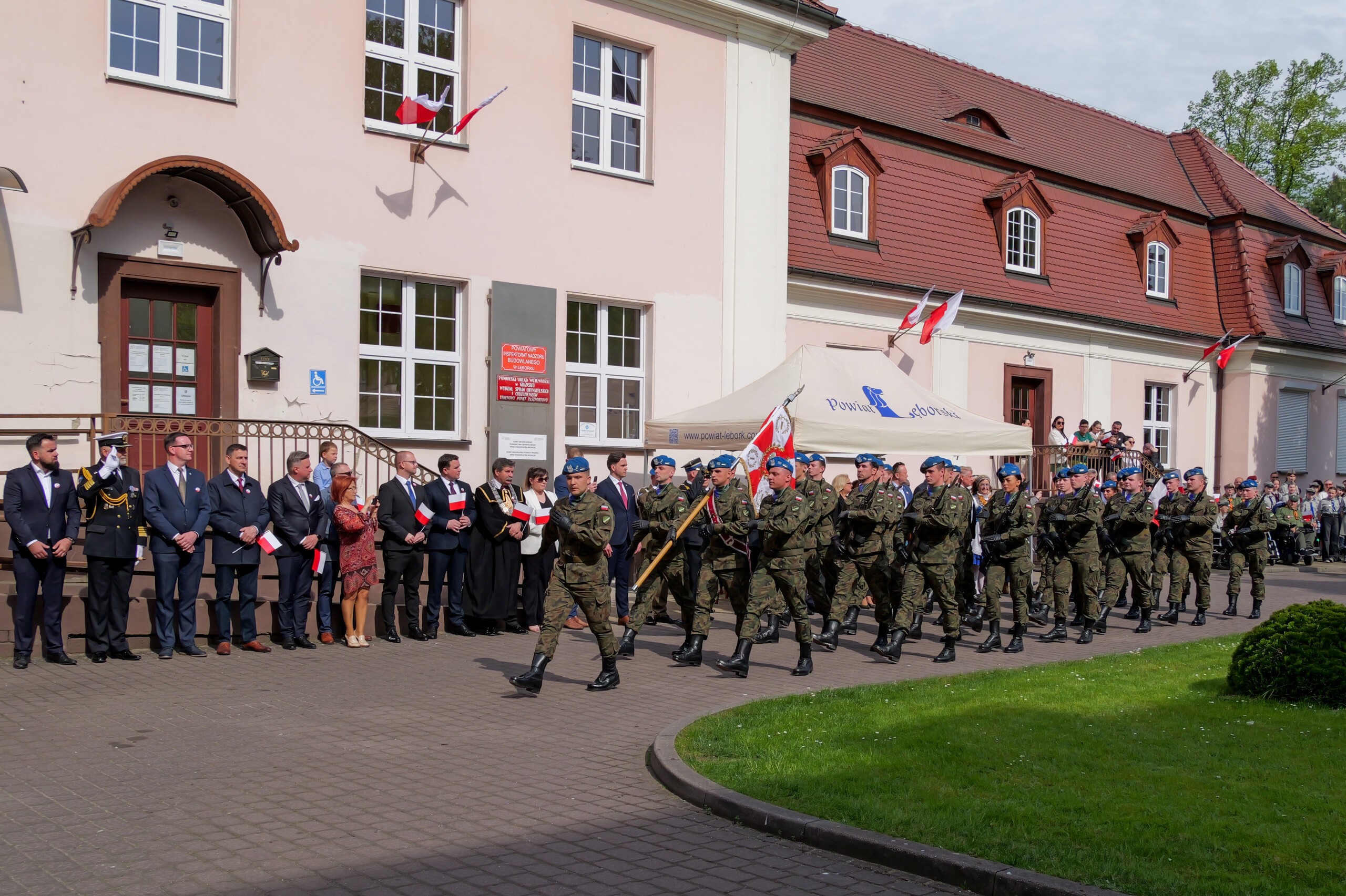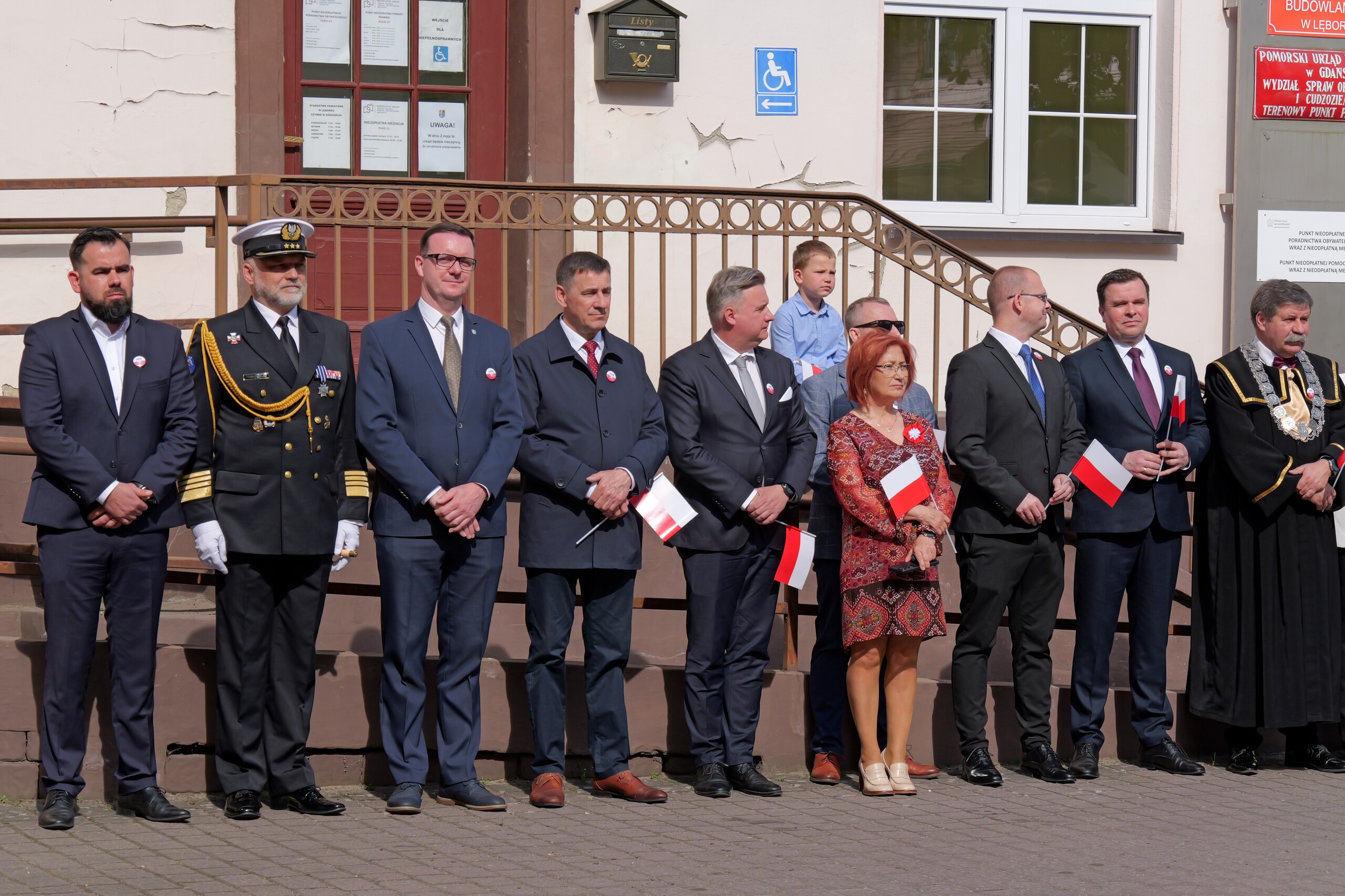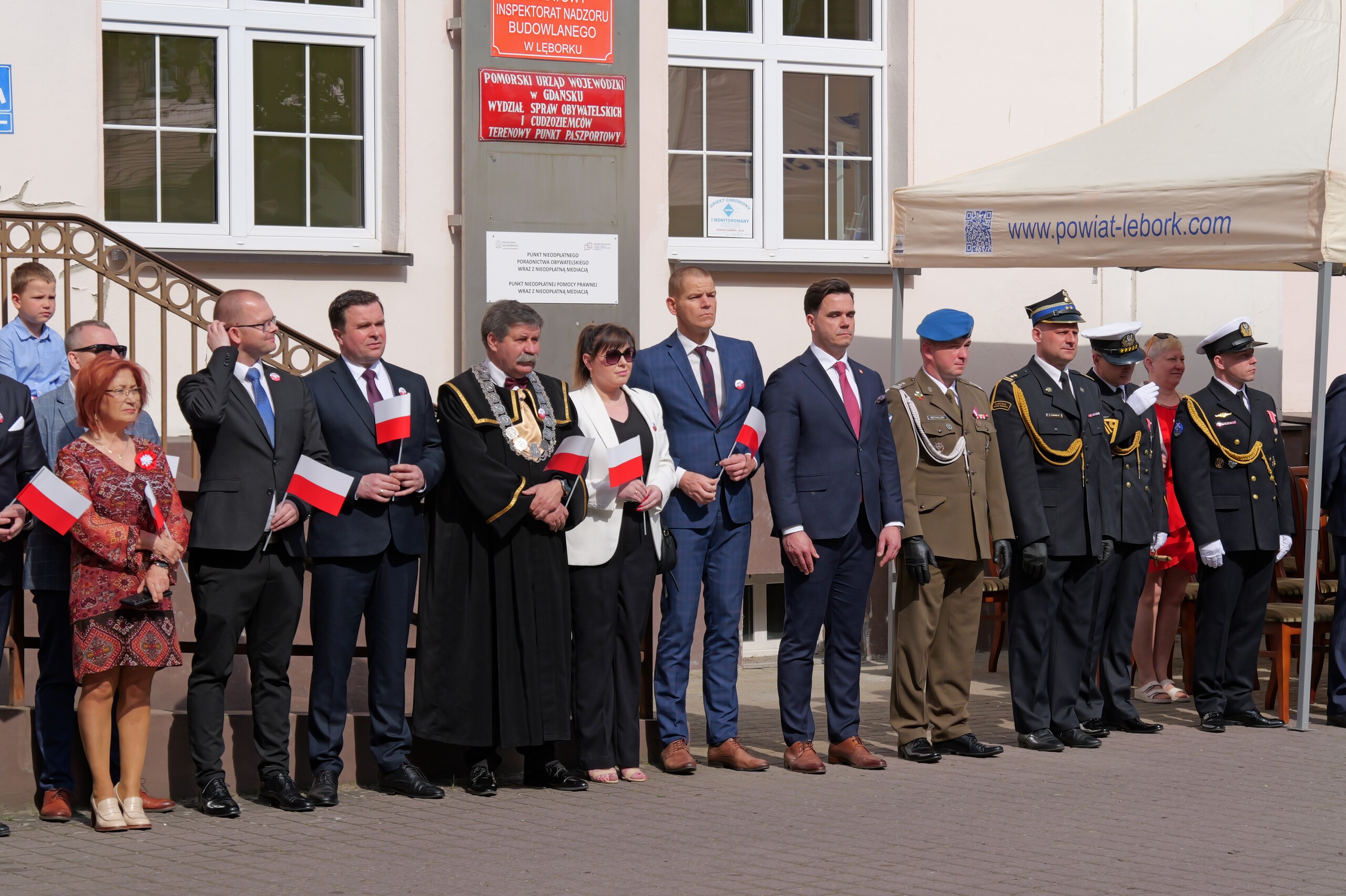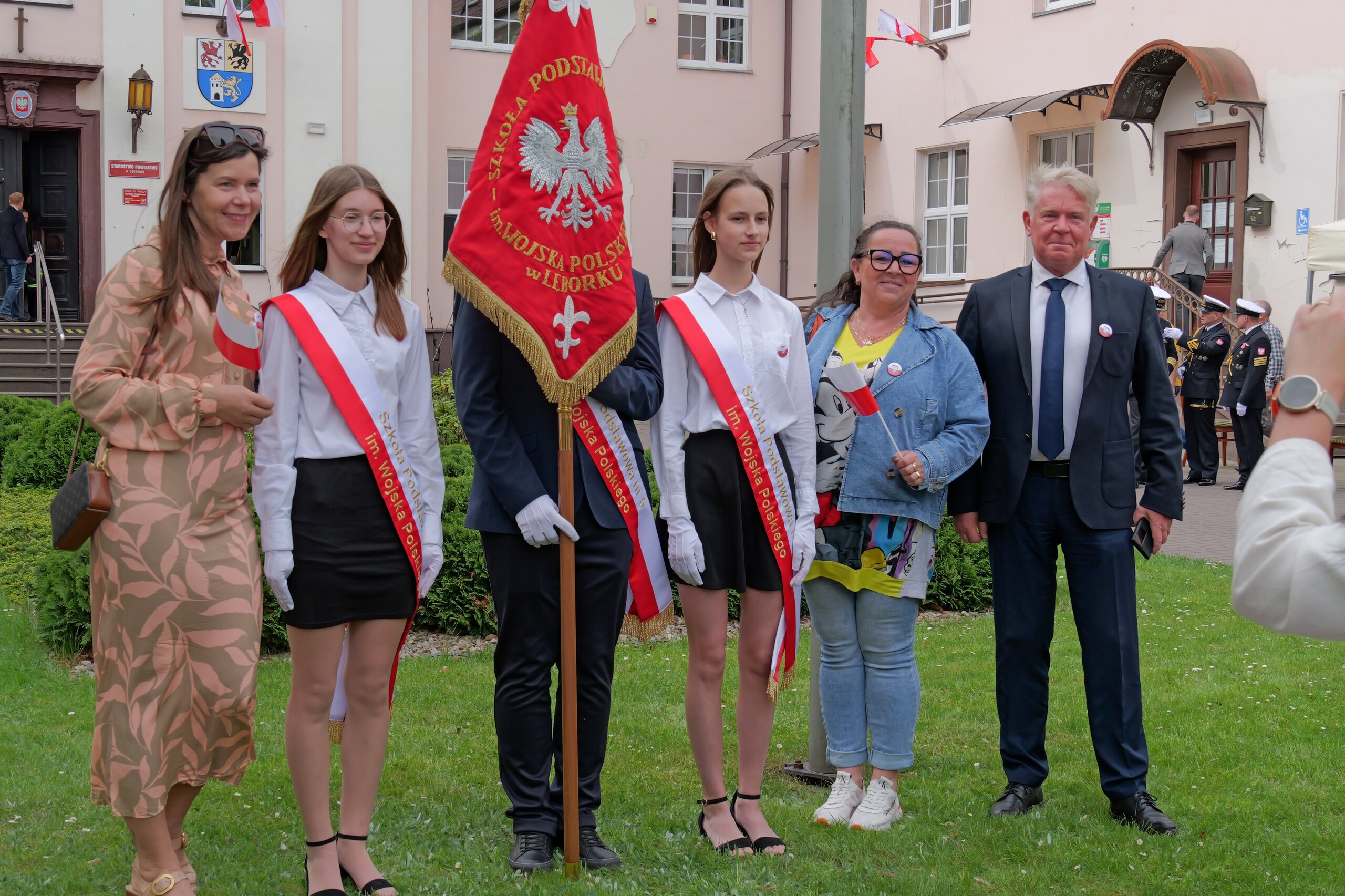 We wspólnym świętowaniu na dziedzińcu starostwa uczestniczyli: Poseł na Sejm RP Michał Kowalski. Radna Sejmiku Województwa Pomorskiego Iwona Mielewczyk, radni powiatowi z przewodniczącym Rady Powiatu Mirosławem Tandkiem i radni Miasta Lęborka wraz z przewodniczącym Rady – Radosławem Zimnowodą.
