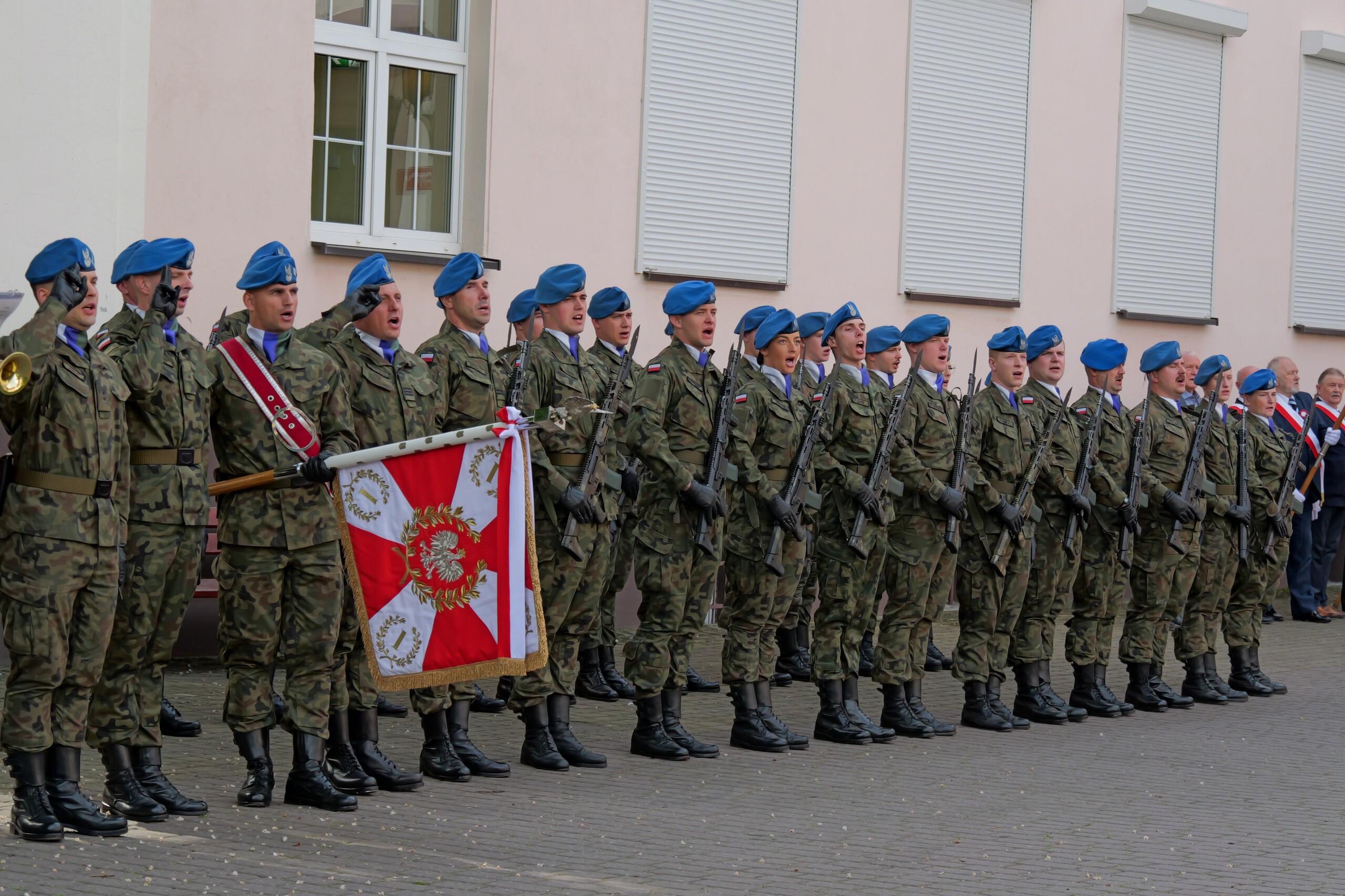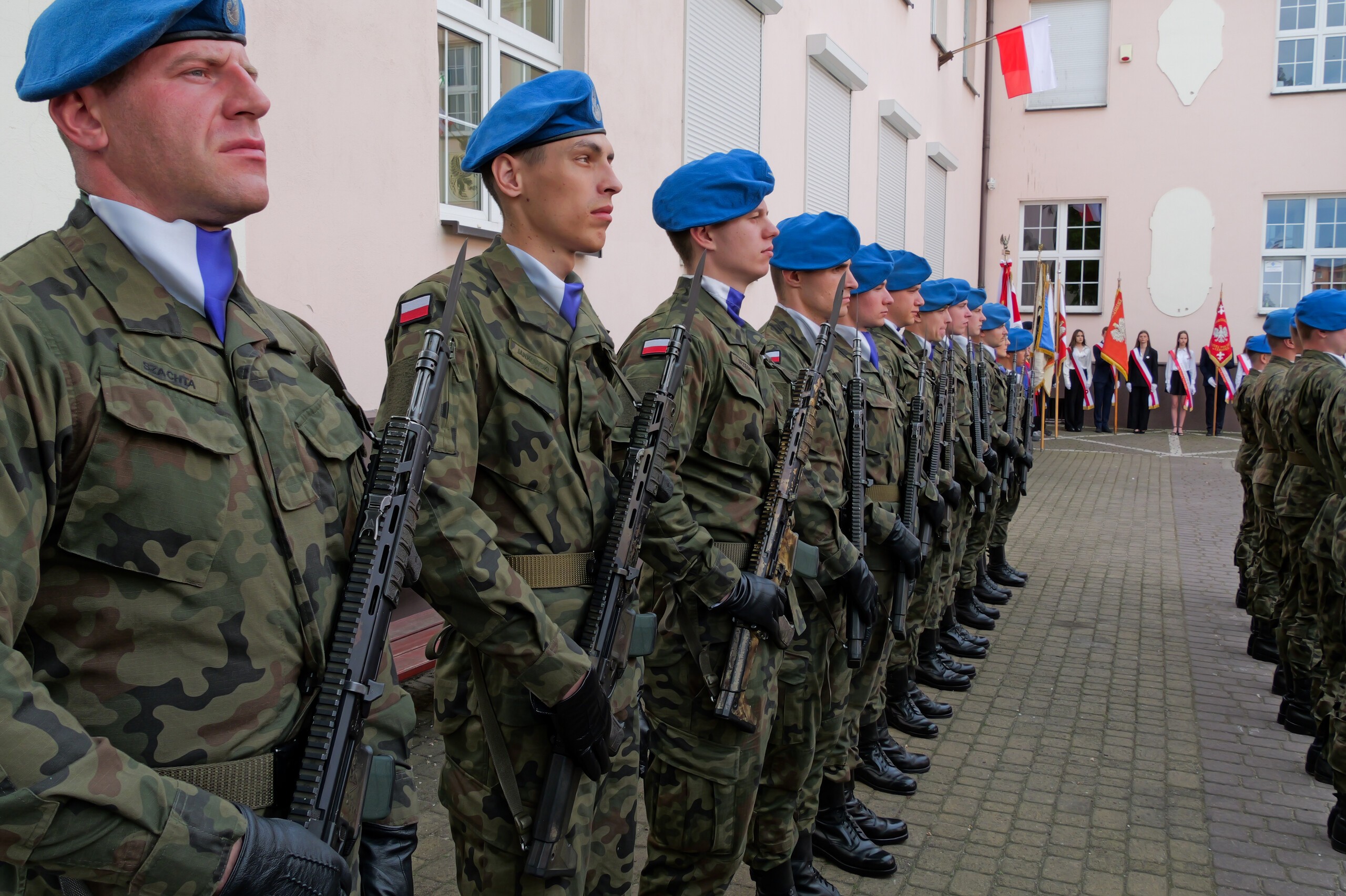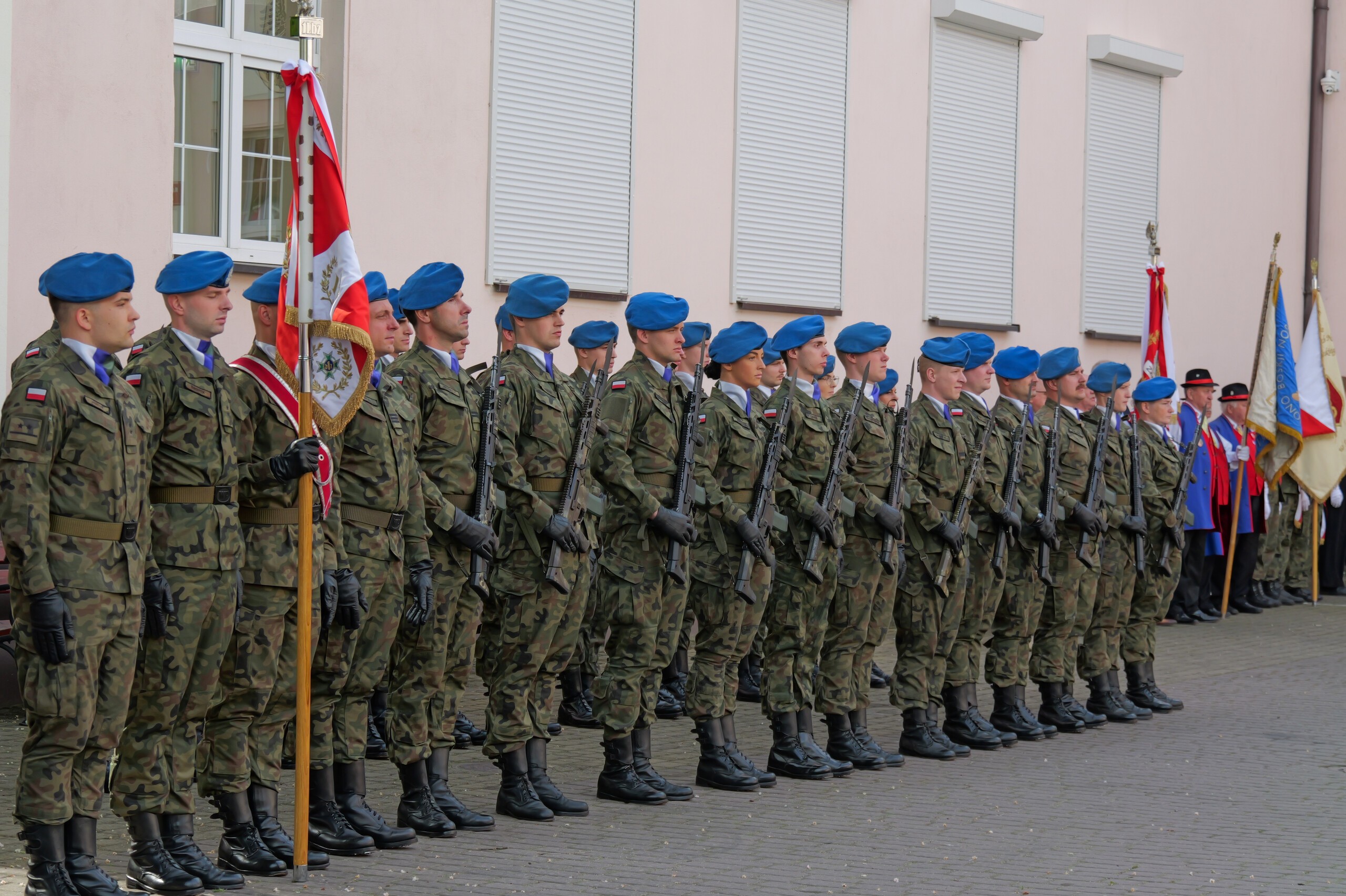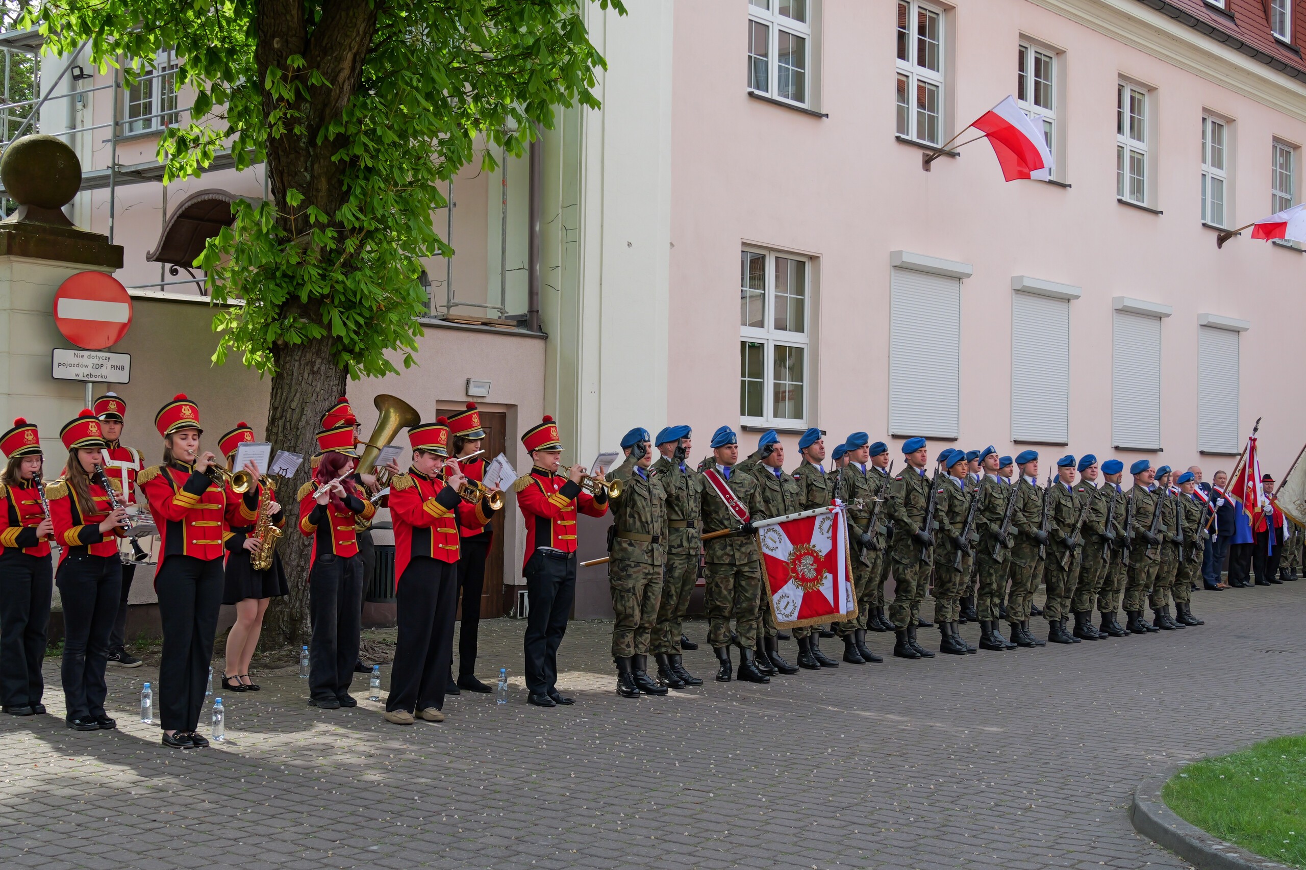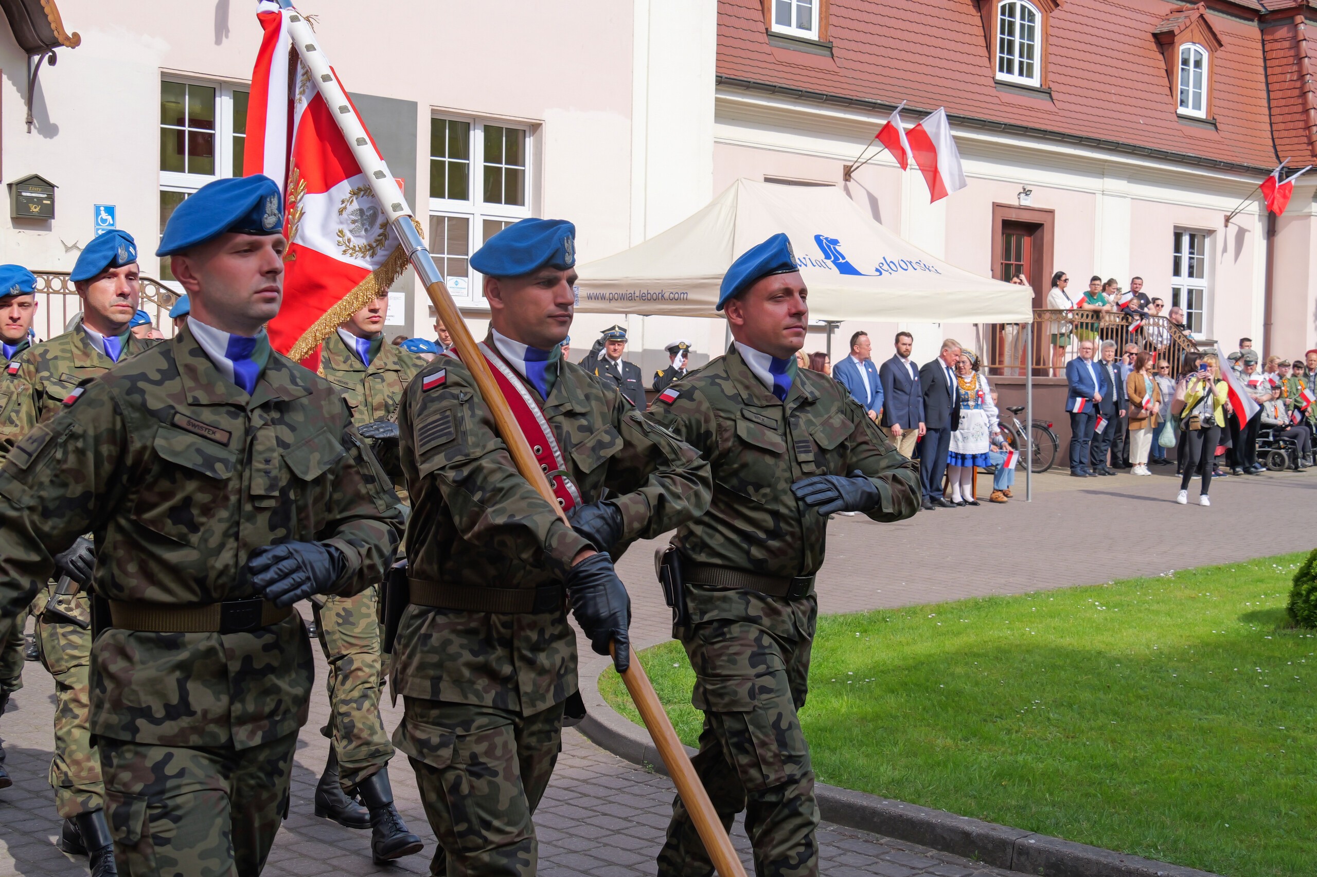 Poczet flagowy oraz kompanię reprezentacyjną wystawił 1. Lęborski Batalion Zmechanizowany im. gen. Jerzego Jastrzębskiego.