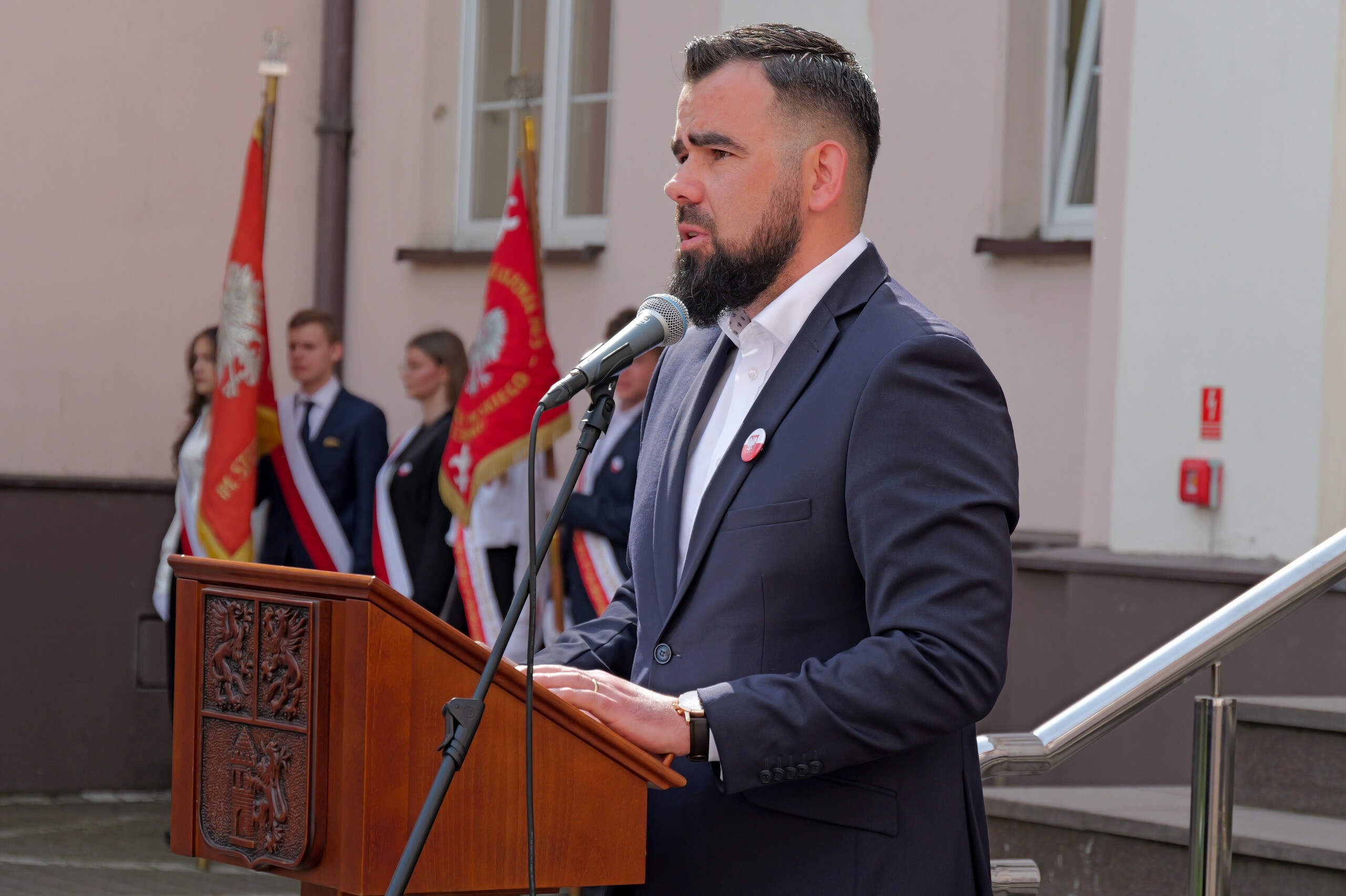 W dalszej części wystąpienia starosta podziękował tym wszystkim, którzy mają swój szczególny wkład w dbałość o bezpieczeństwo i zapewnienie sprawnego funkcjonowania państwa. Były podziękowania dla żołnierzy stale gotowych do obrony granic, dla policji, straży pożarnej i Straży Granicznej, dbających o bezpieczeństwo wewnętrzne. Były podziękowania dla pracowników resortu ochrony zdrowia i pracowników instytucji publicznych, którzy codziennie przez swój profesjonalizm i oddanie mieszkańcom, mają swój wkład w sprawne funkcjonowanie państwa. Podziękowania otrzymali nauczyciele, którzy przez należyte kształcenie i wychowywanie młodego pokolenia dbają o pielęgnowanie postaw obywatelskich i wartości patriotycznych.