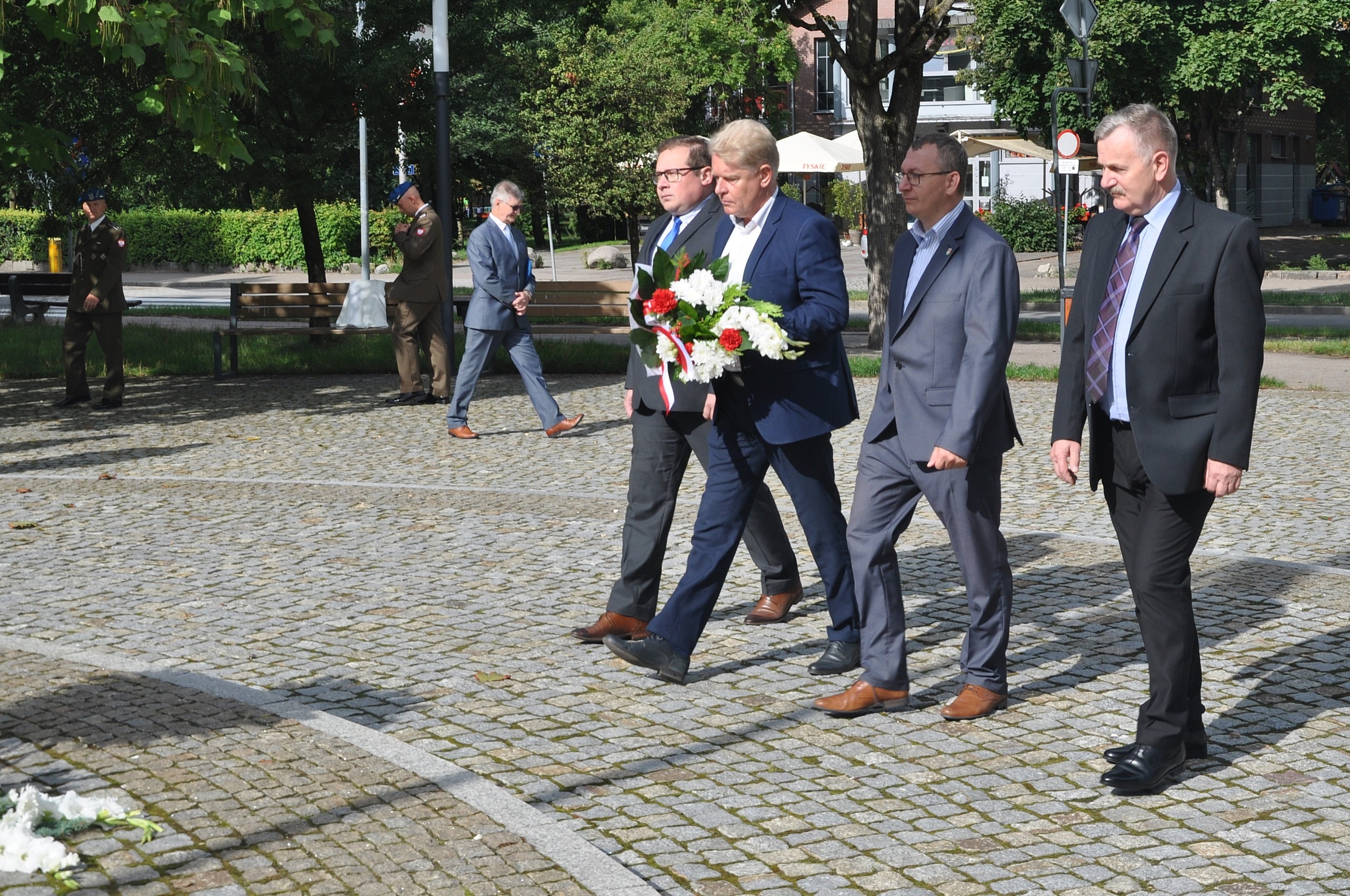 Przedstawiciele władz powiatowych i miejskich złożyli kwiaty pod Obeliskiem Niepodległości z okazji przypadającego 15 sierpnia Święta Wojska Polskiego i 101. Rocznicy Bitwy Warszawskiej w wojnie 1920 r.
