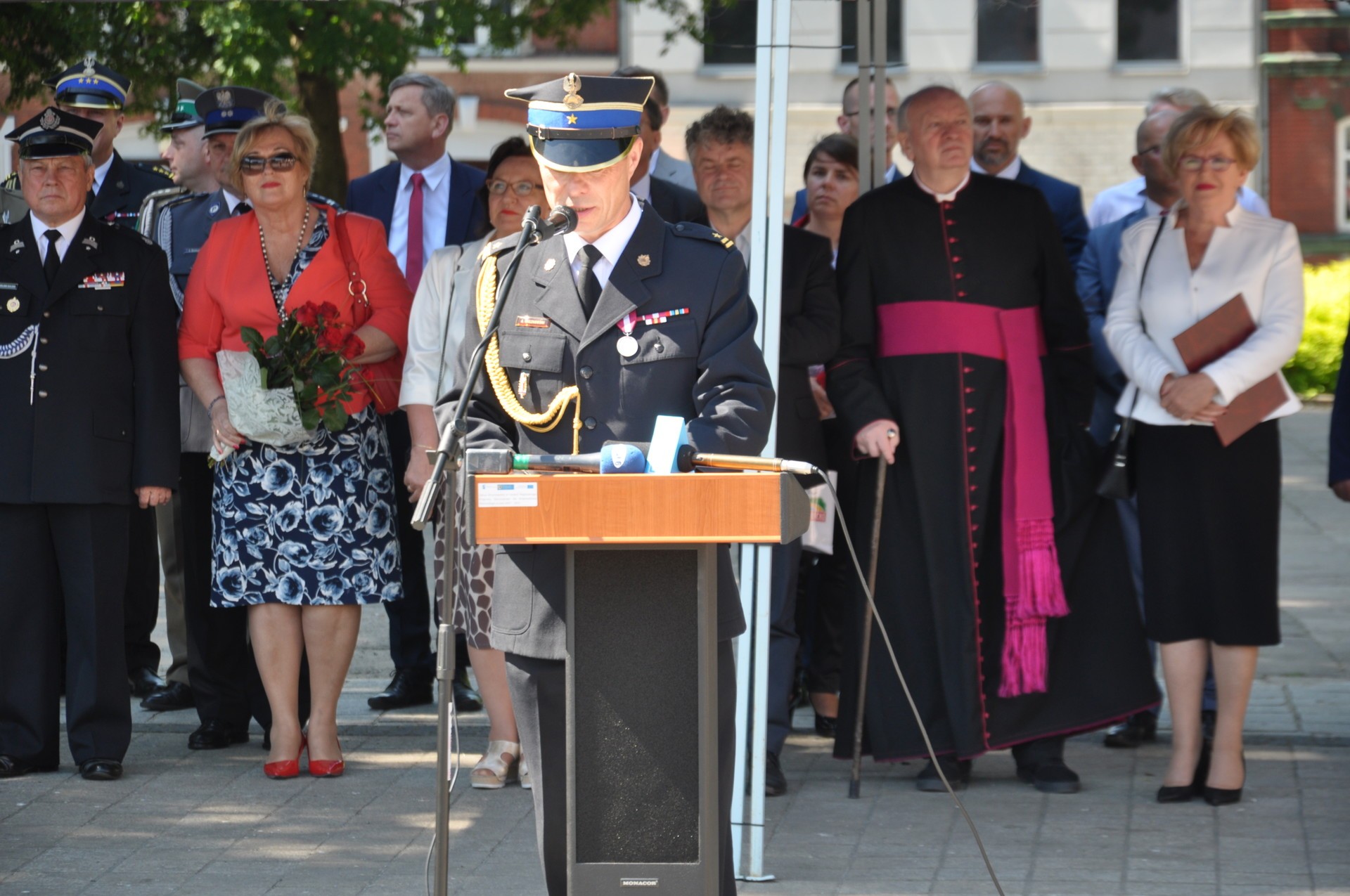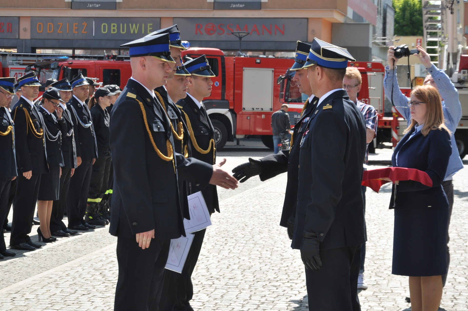 Tuż po uroczystym podniesieniu flagi państwowej na szczyt mobilnej specjalistycznej drabiny strażackiej, nastąpiło uroczyste odznaczenie wyróżniających się strażaków oraz nadanie wyższych stopni. Odznaczenia otrzymali również członkowie Ochotniczej Straży Pożarnej i Ochotniczej Służby Ratowniczej. Ich wkład we wzrost poczucia bezpieczeństwa mieszkańców powiatu również jest niebagatelny.