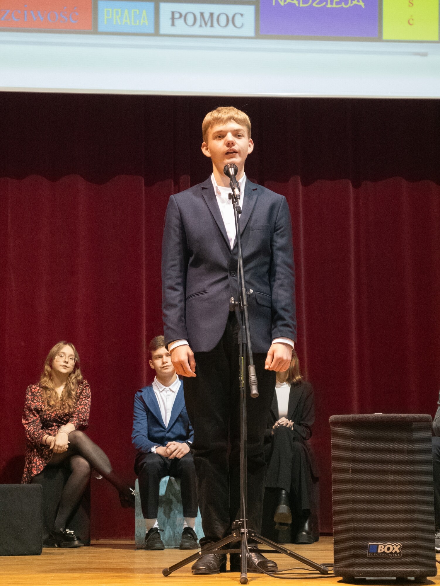 Na scenie auli w Zespole Szkół Ogólnokształcących nr 2 w konkursie recytatorskim zaprezentowali się uczniowie Szkoły Podstawowej nr 1, Społecznego Liceum Ogólnokształcącego, I Liceum Ogólnokształcącego, Zespołu Szkół Gospodarki Żywnościowej i Agrobiznesu, Powiatowego Centrum Edukacyjnego, Młodzieżowego Domu Kultury i Zespołu Szkół Ogólnokształcących nr 2.