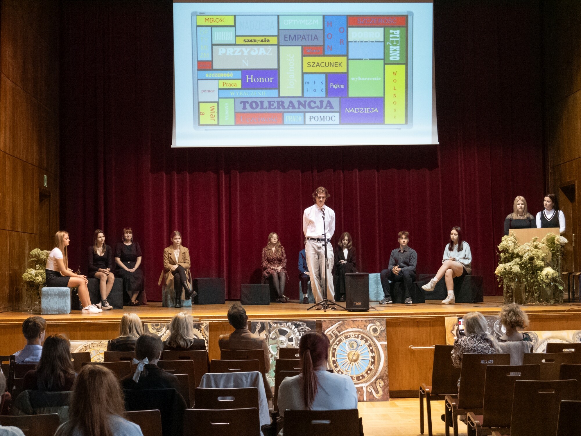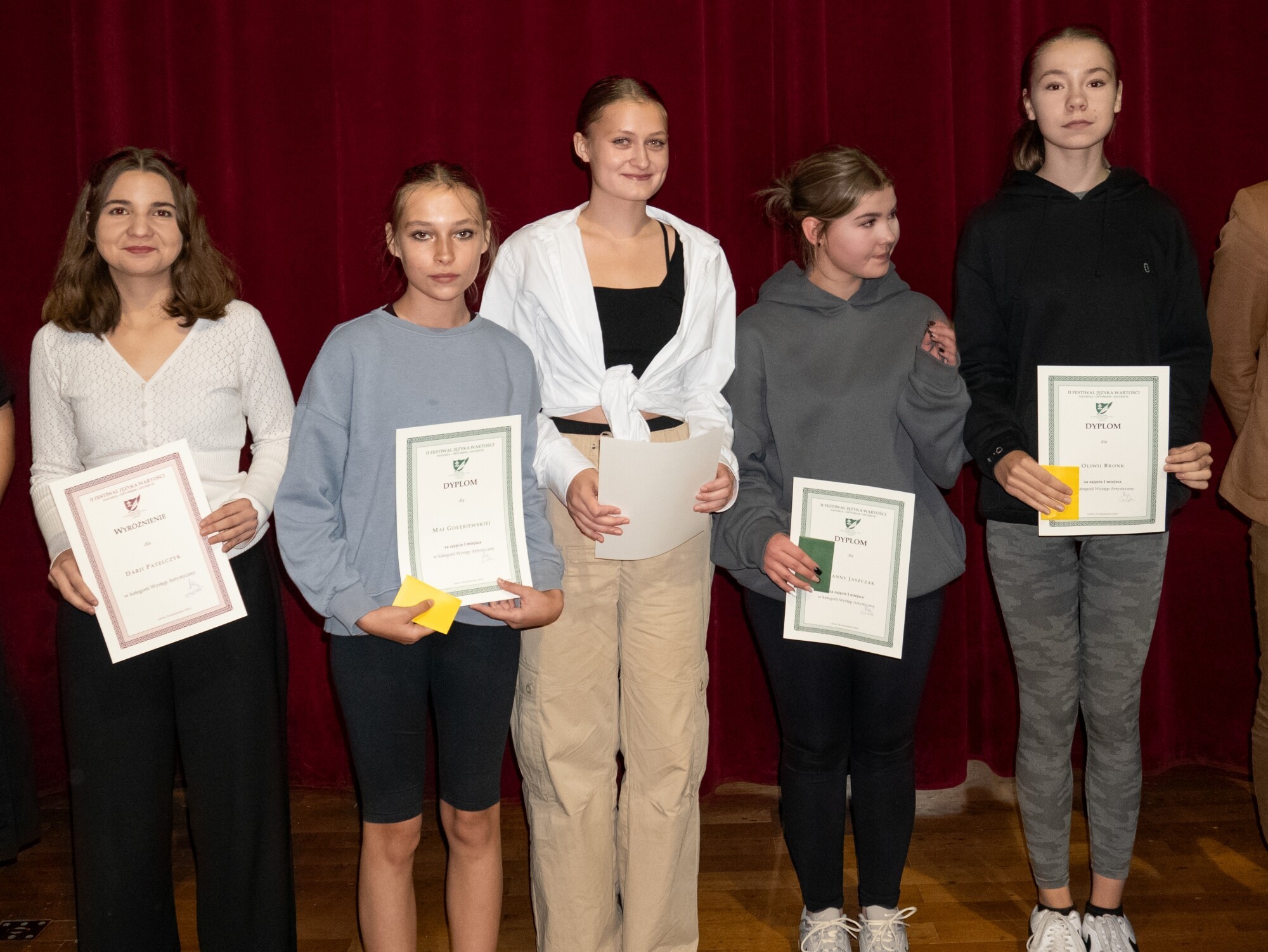O systemie wartości w znaczeniu szacunku do drugiego człowieka mówiła starosta Alicja Zajączkowska: - Wybraliście jako motyw przewodni te wartości, które są nam wszystkim w życiu najbardziej potrzebne, a które w ostatnich latach zostały znacząco nadwątlone. Przez dłuższy czas w świecie, w Europie, ale i w Polsce mieliśmy do czynienia z brutalizacją języka i umniejszaniem wartości człowieka. Dobrze wiemy, co jest ważne. To, że każdy zasługuje na szacunek, ale nie wszyscy zdają sobie sprawę z konieczności odwzajemniania tego szacunku. Oczekujemy go dla siebie, ale też powinniśmy się odnosić z szacunkiem do każdego, kogo spotykamy na swojej drodze. Jeżeli będziemy się w życiu kierować pozytywnymi wartościami, zniknie np. hejt w internecie, będziemy dla siebie zwyczajnie lepsi. To ważne w życiu rodzinnym, społecznym, politycznym. Życzę wam swobodnego życia, wolności dla siebie, ale i szanowania wolności innych. Życzę wam, żebyście byli szczęśliwi swoją własną wartością, jaką jest podejście do drugiego człowieka.