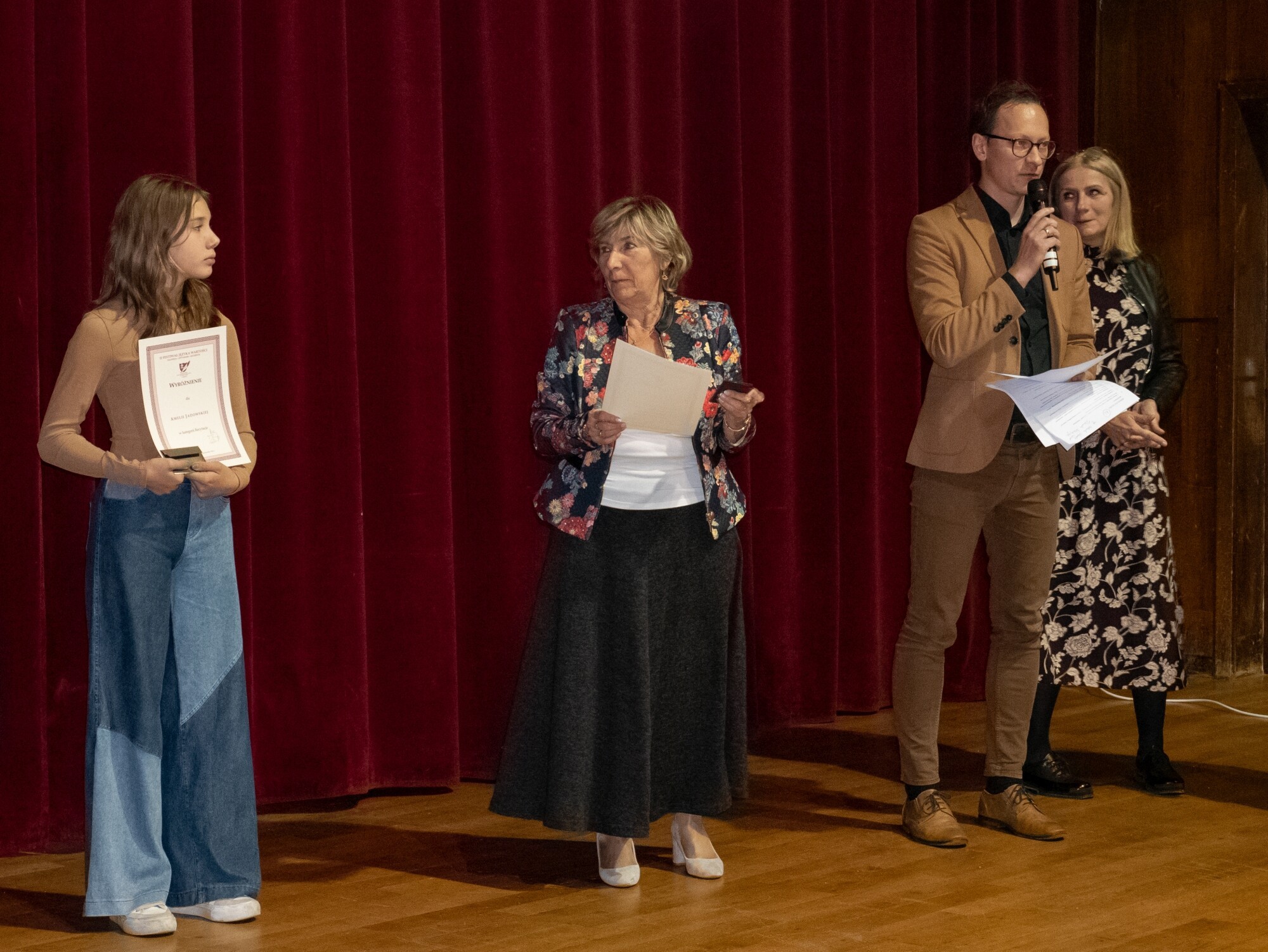 - Cieszy to, że bawicie się słowem, muzyką, ruchem, tańcem – podsumowała prezentacje w imieniu konkursowego jury Małgorzata Koss - Widzimy, że przeżywacie. Tym, którzy na was dzisiaj patrzyli, daliście radość, zadumę, refleksję i za to bardzo wam dziękujemy. Dziękuję również waszym nauczycielom, opiekunom, którzy zachęcają was do aktywności pisarskiej, muzycznej, tanecznej i są z wami dzisiaj. Daliście nam dużo radości.