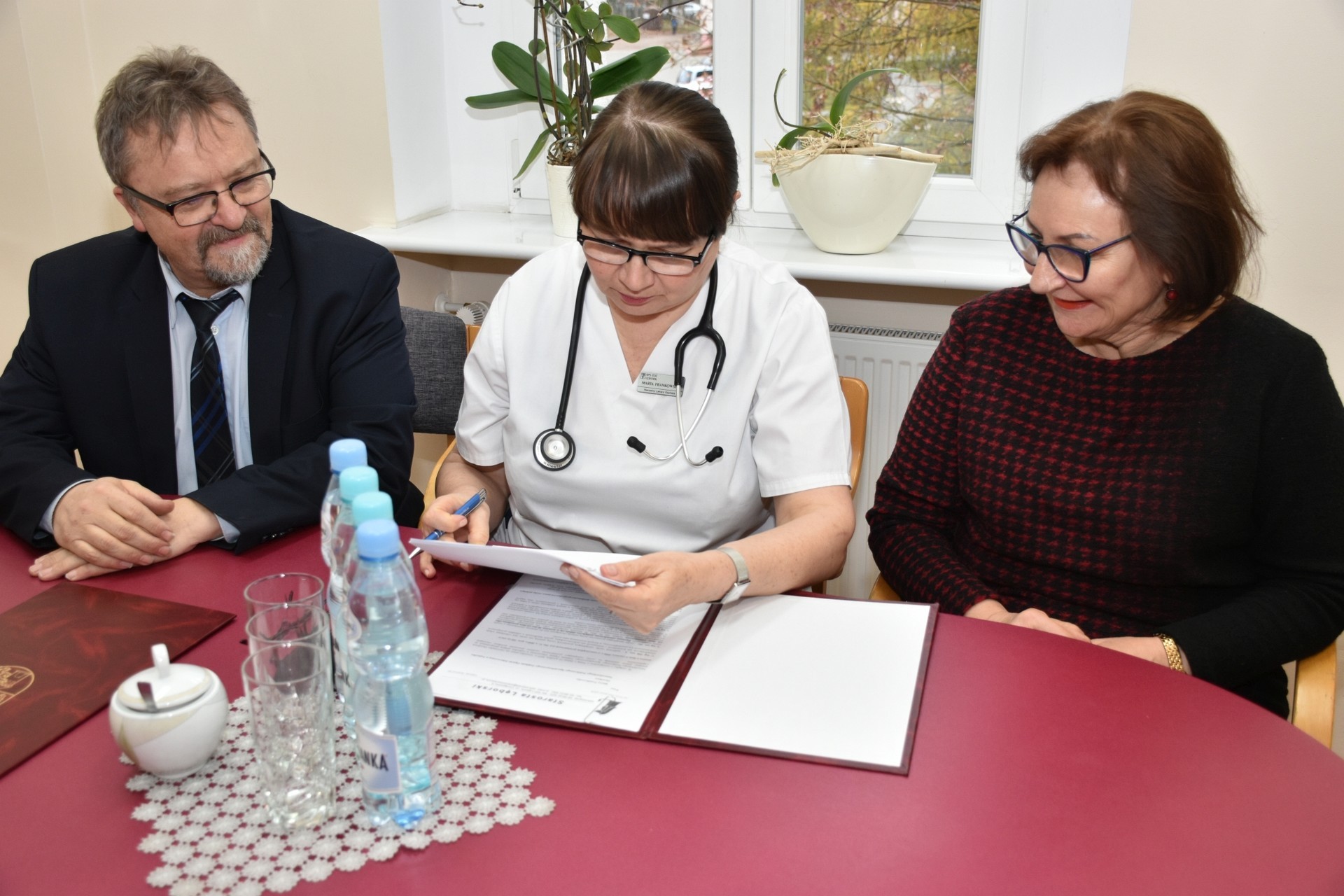 Marta Frankowska podpisała dziś (29.11, piątek) umowę kontraktową na stanowisko dyrektora Samodzielnego Specjalistycznego Zakładu Opieki Zdrowotnej w Lęborku. Nominację wręczyła nowej dyrektor Alicja Zajączkowska, Starosta Lęborski i Edmund Głombiewski, Wicestarosta Lęborski.