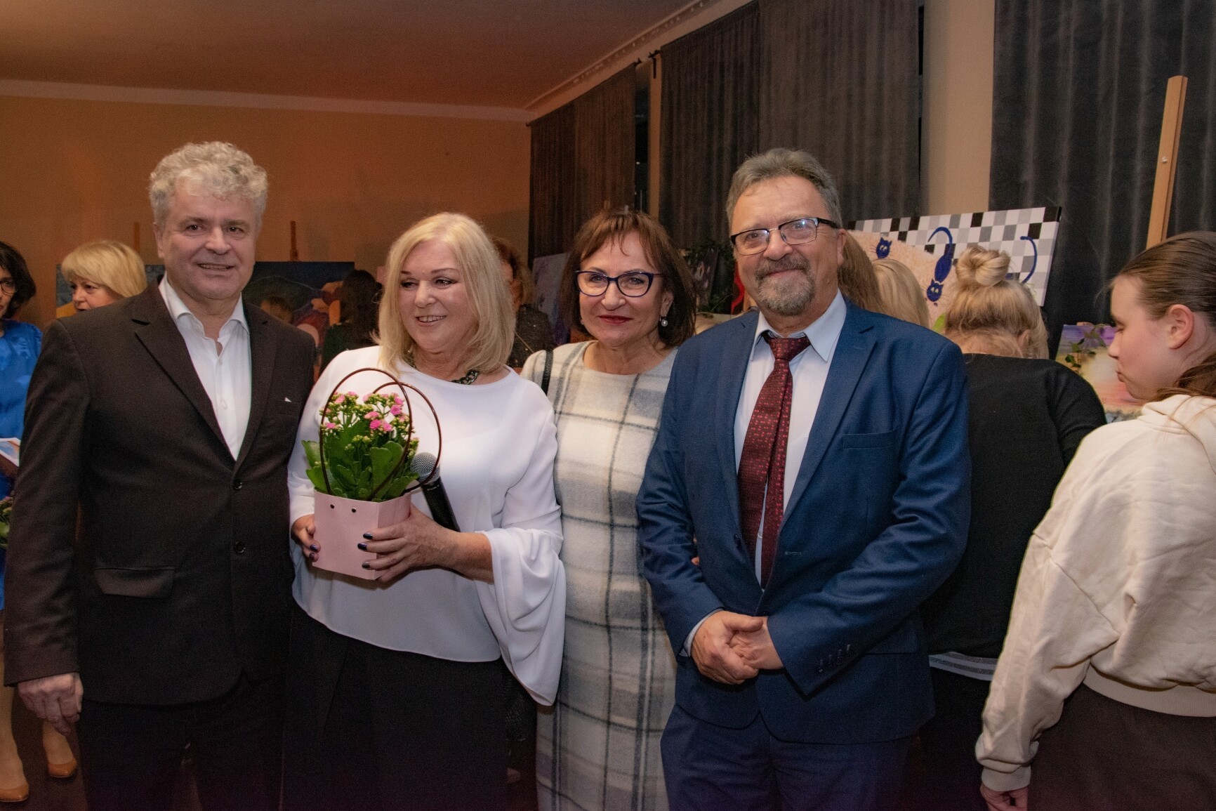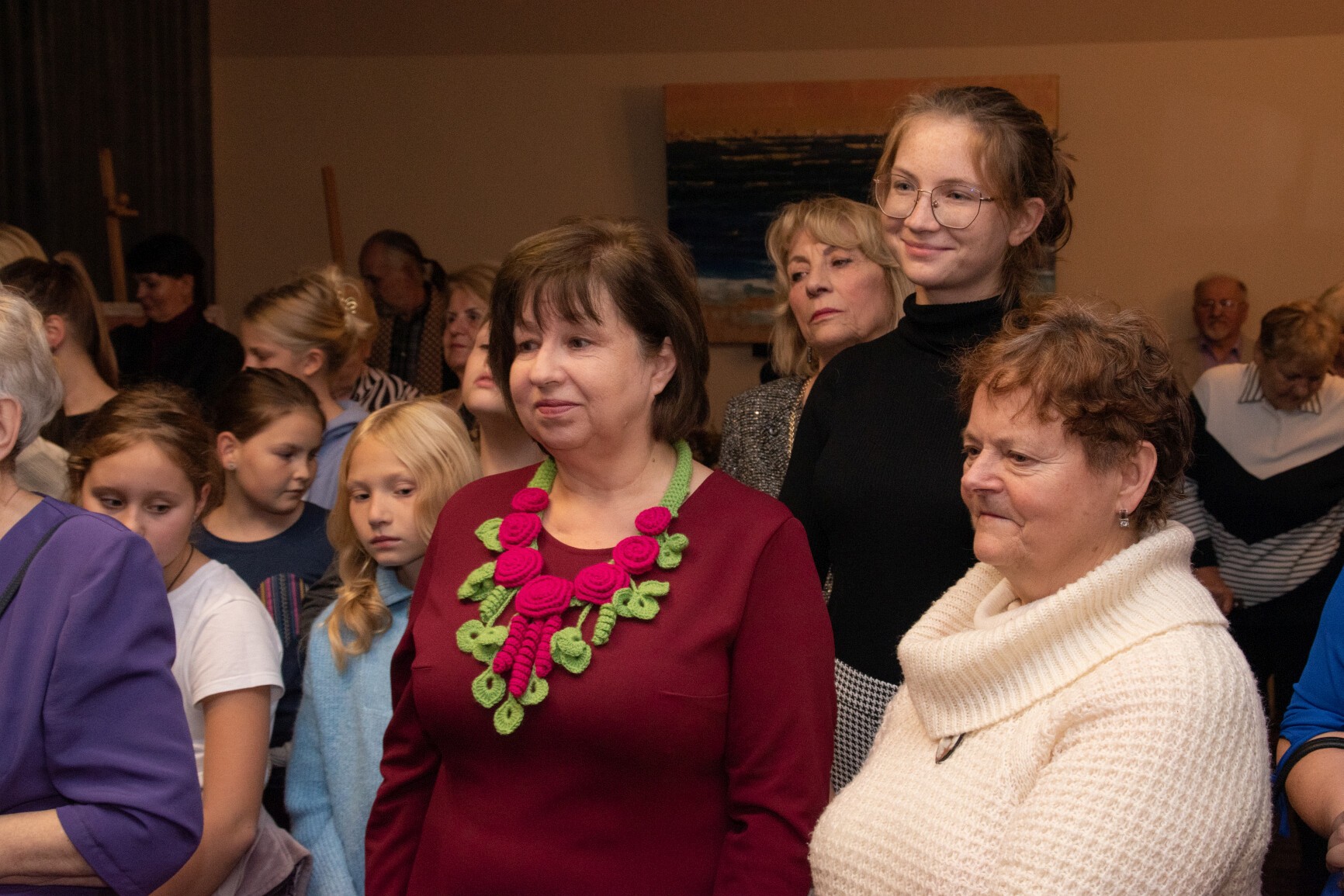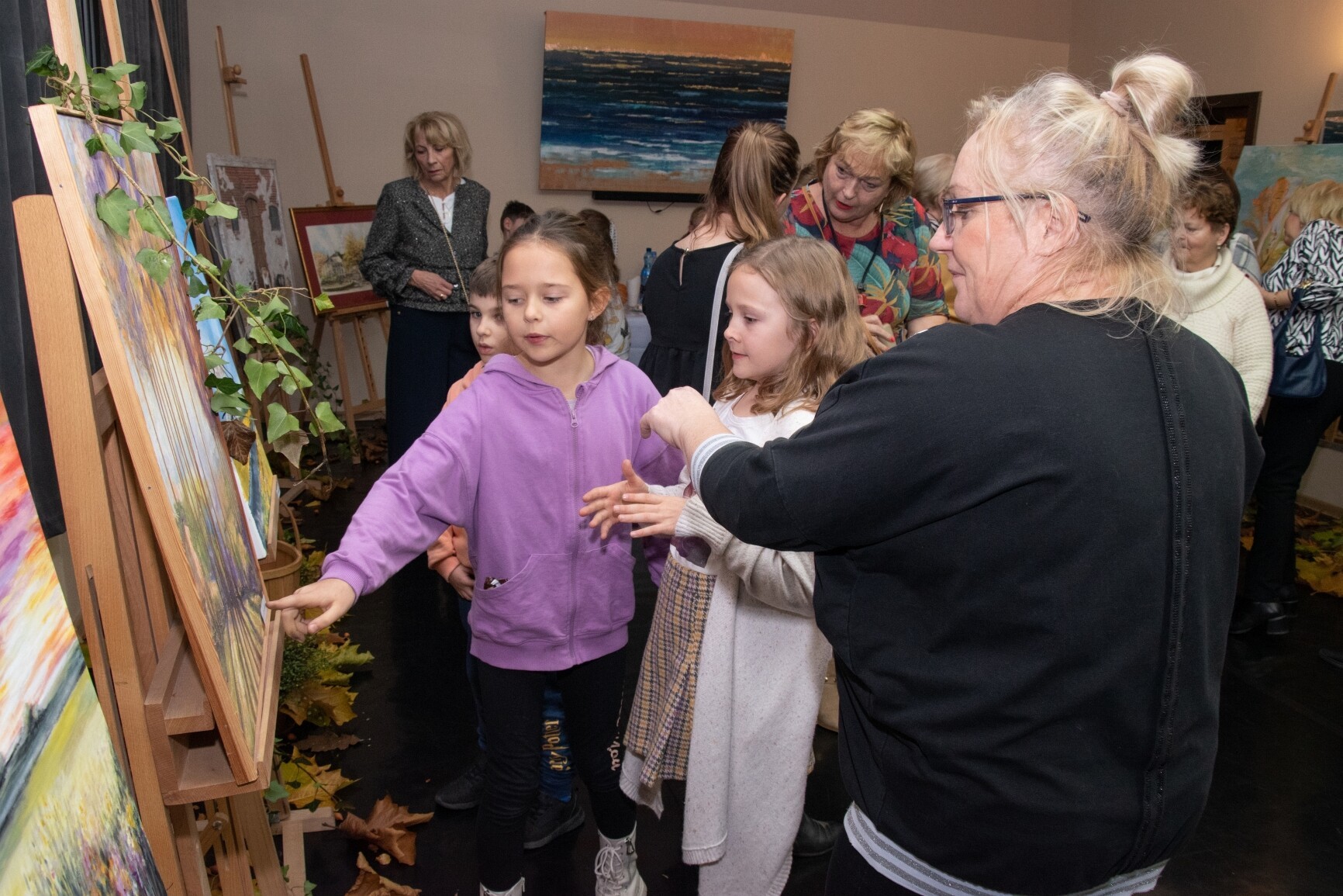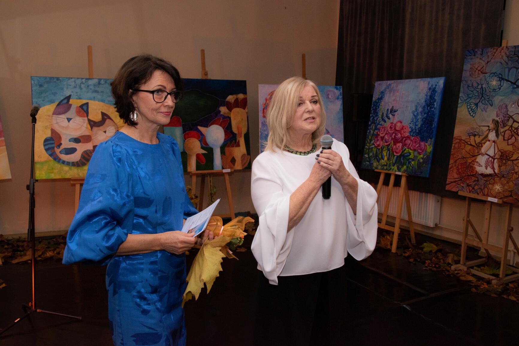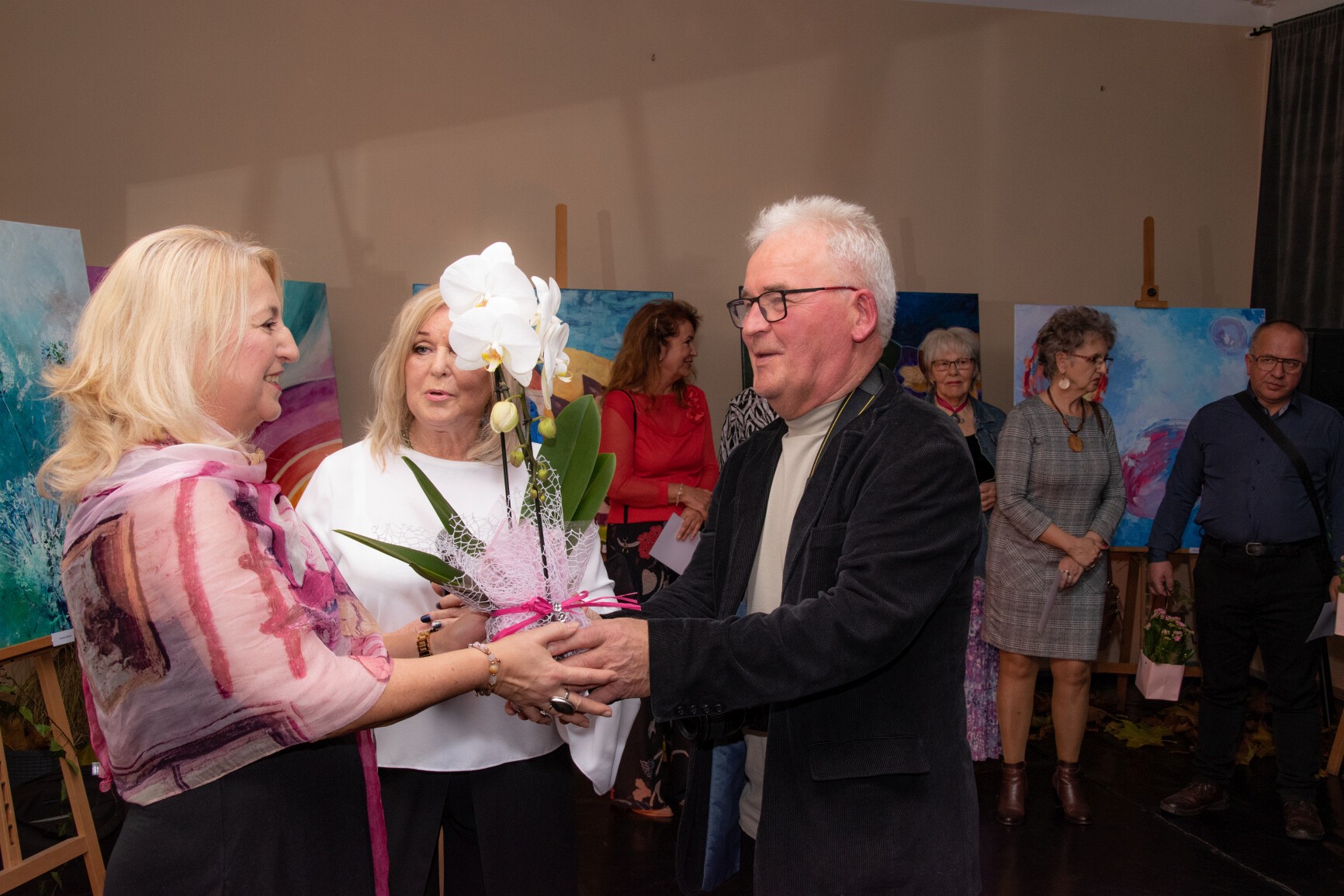 W klimat wernisażu wprowadziła widzów uzdolniona wokalnie młodzież: Natalia Czaja, Roksana Baranowska i Jakub Szczechowicz, doskonalący talenty pod kierunkiem Oliwii Stromskiej i Sylwestra Kustusza. Niezawodnie jak zwykle – podczas wernisażu pojawiła się większa część twórców, których podobnie jak gości wernisażu przywitały: Halina Krzewniak – prezes stowarzyszenia, wiceprezes Alina Walkusz i Teresa Szczepańska – dyrektor Młodzieżowego Domu Kultury. Jesienny klimat wernisażu podkreślał wystrój sali z wykorzystaniem żółtych liści i klimatycznego barwnego oświetlenia. Wernisaże Stowarzyszenia TAK, w którym artystyczne talenty mieszkańców powiatu zyskują wizualną materialną formę, tradycyjnie przyciągają wielu widzów. Podobnie było tym razem. Artystów odwiedzili również przedstawiciele Powiatu Lęborskiego: starosta Alicja Zajączkowska i wicestarosta Edmund Głombiewski. Doceniając artystyczny dorobek członków stowarzyszenia, na ręce prezes H. Krzewniak przekazali symboliczne kwiatowe podziękowanie. Talenty twórców docenił również obecny na wernisażu burmistrz Witold Namyślak.