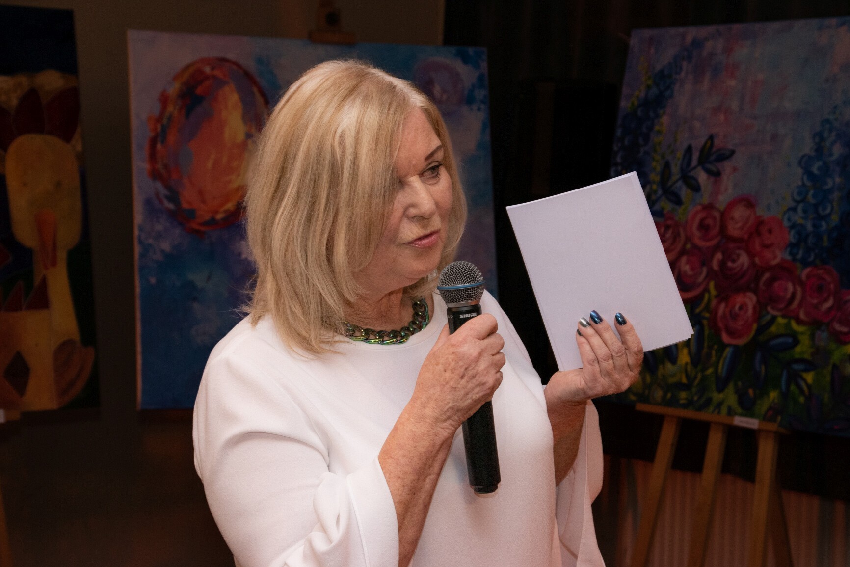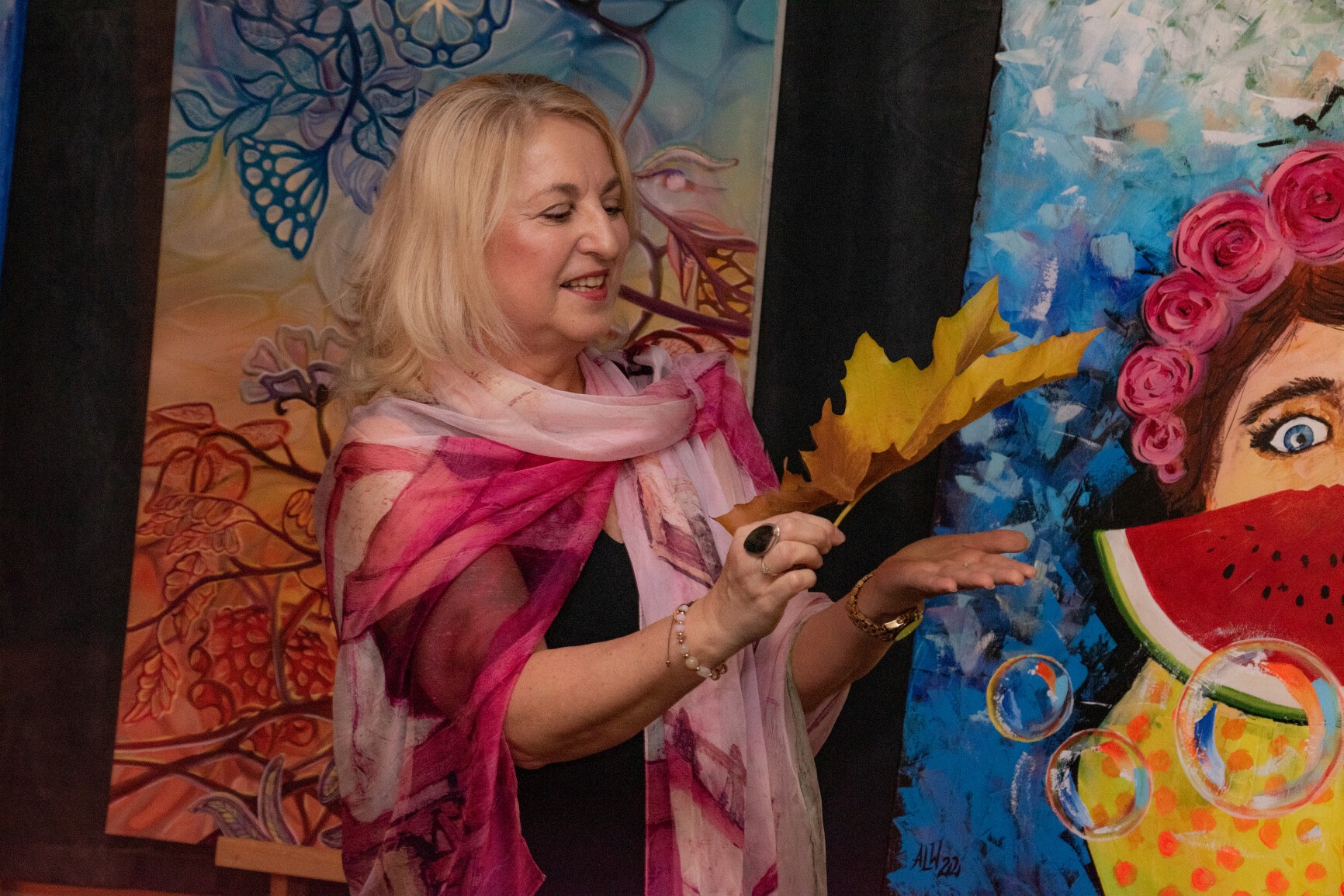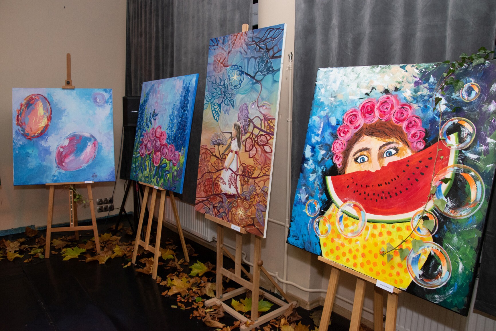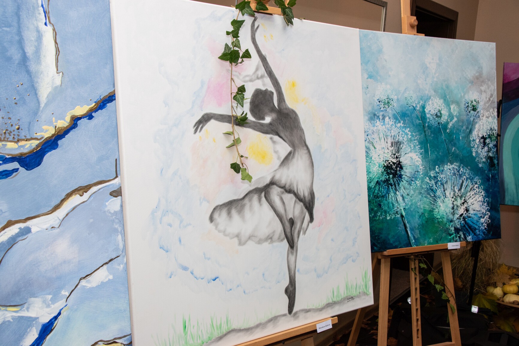 W klimat wernisażu wprowadziła widzów uzdolniona wokalnie młodzież: Natalia Czaja, Roksana Baranowska i Jakub Szczechowicz, doskonalący talenty pod kierunkiem Oliwii Stromskiej i Sylwestra Kustusza. Niezawodnie jak zwykle – podczas wernisażu pojawiła się większa część twórców, których podobnie jak gości wernisażu przywitały: Halina Krzewniak – prezes stowarzyszenia, wiceprezes Alina Walkusz i Teresa Szczepańska – dyrektor Młodzieżowego Domu Kultury. Jesienny klimat wernisażu podkreślał wystrój sali z wykorzystaniem żółtych liści i klimatycznego barwnego oświetlenia. Wernisaże Stowarzyszenia TAK, w którym artystyczne talenty mieszkańców powiatu zyskują wizualną materialną formę, tradycyjnie przyciągają wielu widzów. Podobnie było tym razem. Artystów odwiedzili również przedstawiciele Powiatu Lęborskiego: starosta Alicja Zajączkowska i wicestarosta Edmund Głombiewski. Doceniając artystyczny dorobek członków stowarzyszenia, na ręce prezes H. Krzewniak przekazali symboliczne kwiatowe podziękowanie. Talenty twórców docenił również obecny na wernisażu burmistrz Witold Namyślak.