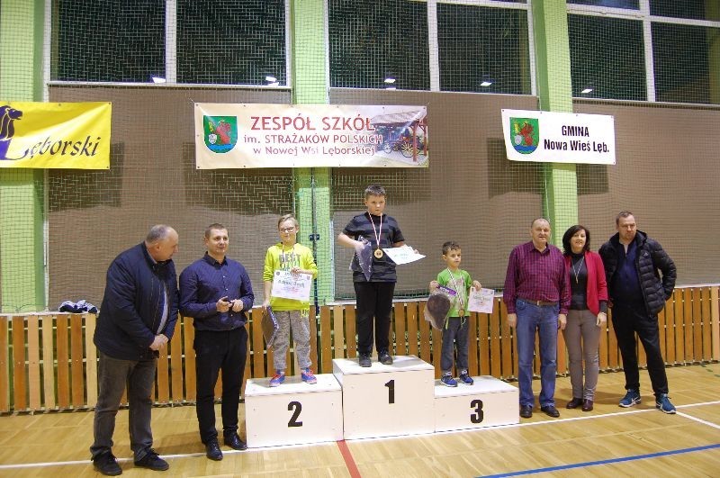 Po podsumowaniu zawodów trzem najlepszym zawodnikom w każdej kategorii, członek Zarządu Powiatu i dyrektor GOK Krzysztof Pruszak, dyrektor szkoły Grażyna Wójcik, wicedyrektor i trener klubu GKS TĘCZA Andrzej Czubaty, radny gminy Marian Syldatk oraz koordynator sportu gminnego Edward Nagórski, wręczyli pamiątkowe medale, dyplomy i nagrody rzeczowe współfinansowane przez Starostwo Powiatowe w Lęborku i Gminę Nowa Wieś Lęborska.