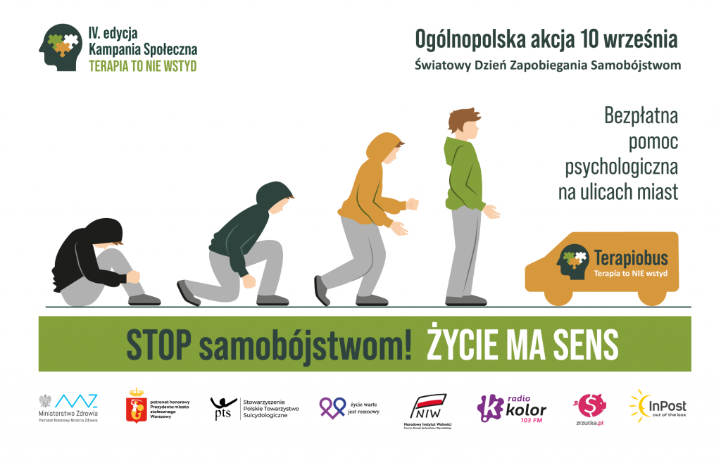 W związku ze Światowym Dniem Zapobiegania Samobójstwom, obchodzonym 10 września, Fundacja „Terapia to NIE WSTYD” rusza już z IV edycją kampanii społecznej, której hasłem przewodnim w tym roku jest „Stop Samobójstwom! Życie ma sens”.