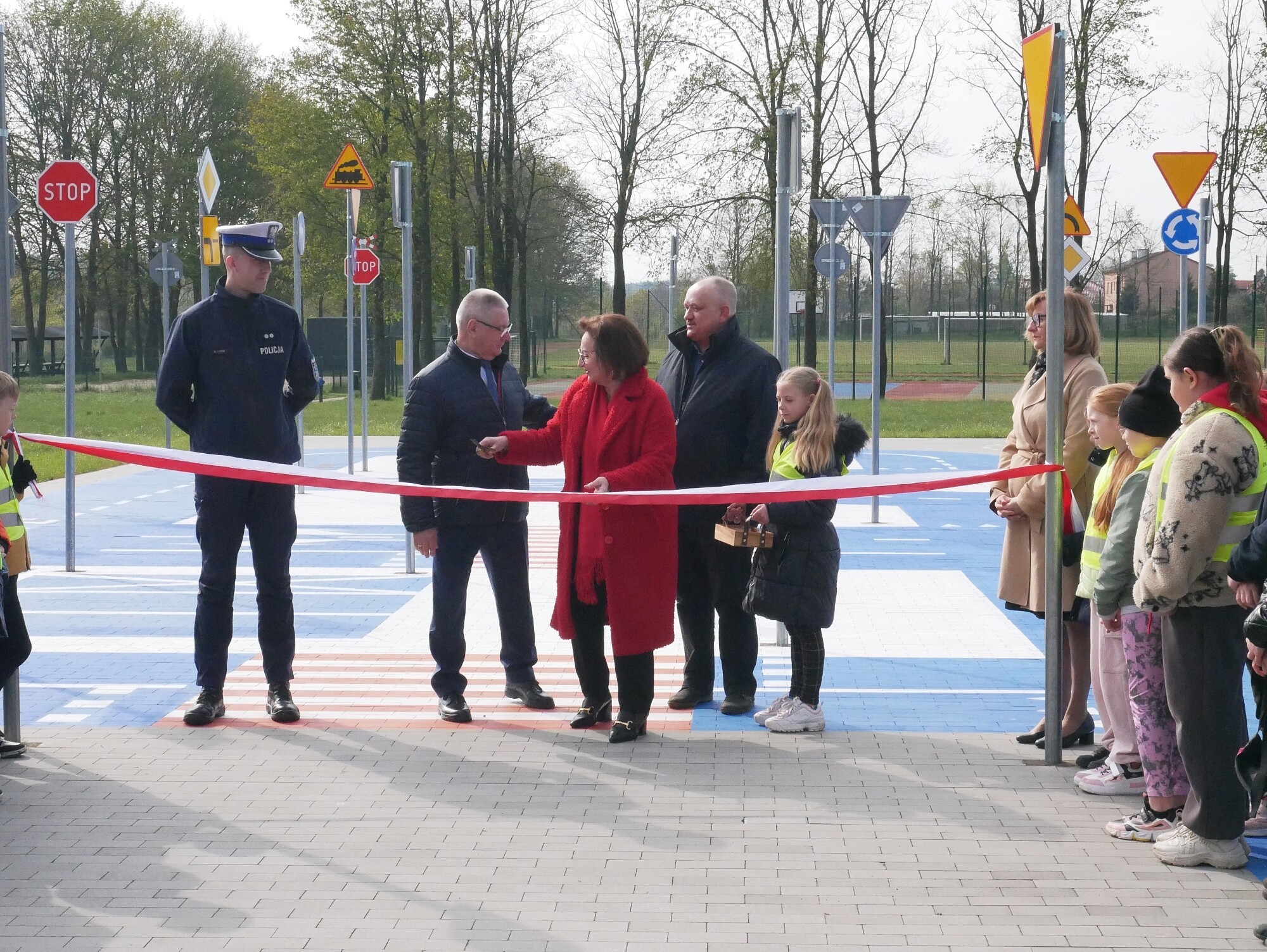 W uroczystości otwarcia miasteczka uczestniczyli: Alicja Zajączkowska – Starosta Lęborski, Krzysztof Wojtysiak - Dyrektor Zespołu Szkół w Łebieniu, Zdzisław Chojnacki – wójt Gminy Nowa Wieś Lęborska, Adam Galas - wiceprezes Zarządu PKS Gdynia, podkom. Arkadiusz Loda - Naczelnik Wydziału Ruchu Drogowego KPP w Lęborku i Zdzisław Kotłowski – radny Rady Gminy NWL i nauczyciel w szkole w Łebieniu. Miasteczko w Łebieniu powstało jako jedno z pięciu na terenie Gminy Nowa Wieś Lęborska. Pozostałe ulokowano w Leśnicach, Redkowicach Nowej Wsi Lęborskiej i w Garczegorzu, gdzie funkcjonuje obiekt w wersji mobilnej. Ogólny koszt projektu budowy miasteczek, w ramach którego powstało również doposażone w radarowy wyświetlacz prędkości przejście dla pieszych w Krępie Kaszubskiej to 514 tys. zł. Większość środków, bo aż 437 tys. zł pochodzi z dofinansowania unijnego. Miasteczko w Łebieniu wyposażone zostało dodatkowo w tor przeszkód, co uatrakcyjnia korzystanie z obiektu dostosowanego nie tylko do jazdy rowerem, ale również coraz popularniejszymi hulajnogami. Zadowolenia z powstania obiektu oraz operatywności Gminy Nowa Wieś Lęborska w zakresie wdrażania rozwiązań służących poprawie bezpieczeństwa na drogach nie kryje starosta Alicja Zajączkowska: - To bardzo dobry pomysł, że takie miasteczka powstają – mówi starosta – Dają nie tylko możliwość przygotowania się najmłodszym do egzaminu na kartę rowerową, ale również starszym pomagają w przypomnieniu sobie przepisów ruchu drogowego, co w efekcie przekłada się świetnie na ogólną poprawę bezpieczeństwa na drogach. Ponadto szkoła w Łebieniu od dawna organizuje powiatowy etap konkursu bezpieczeństwa ruchu drogowego, dbając o właściwe przygotowanie młodzieży jako świadomych uczestników ruchu drogowego.