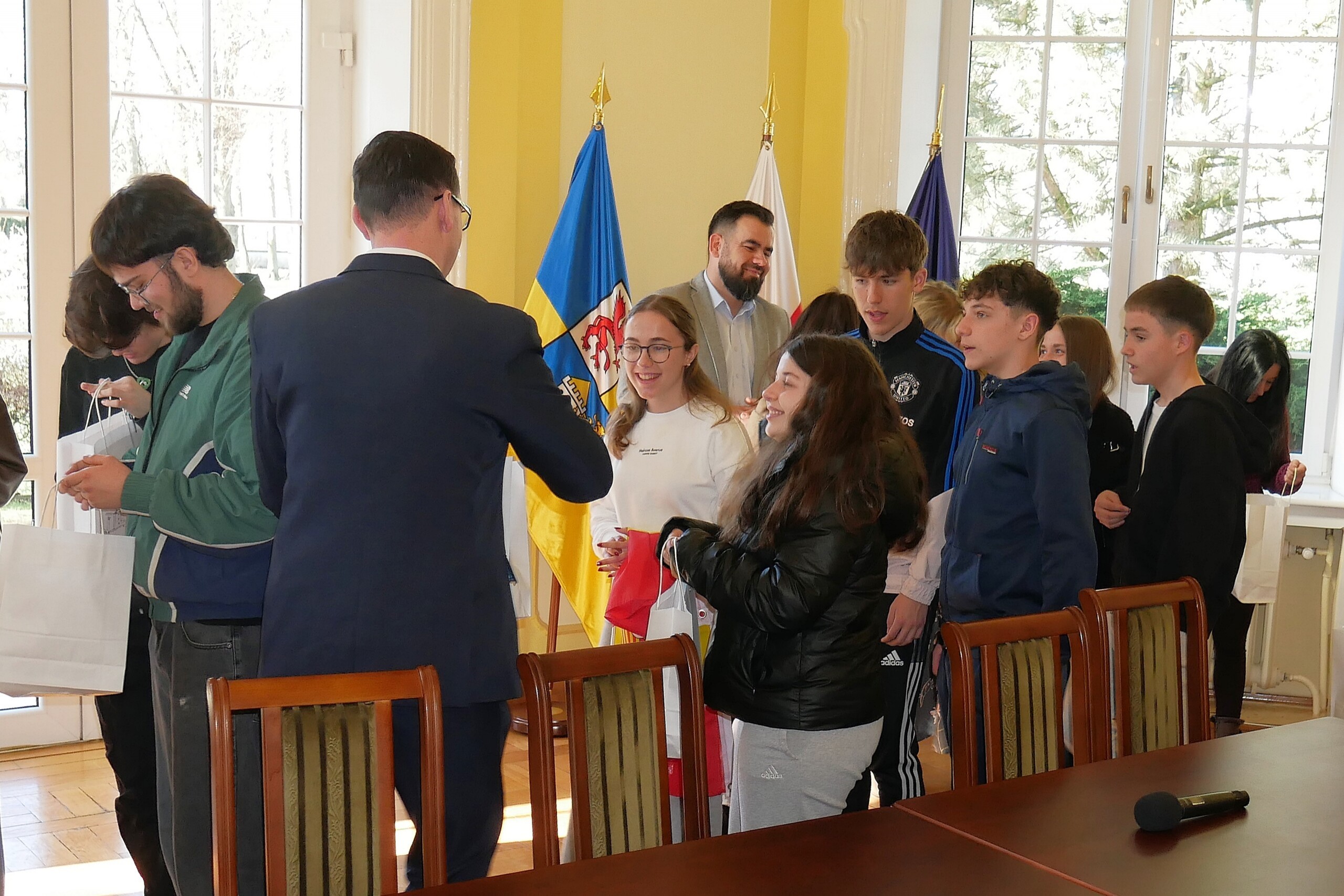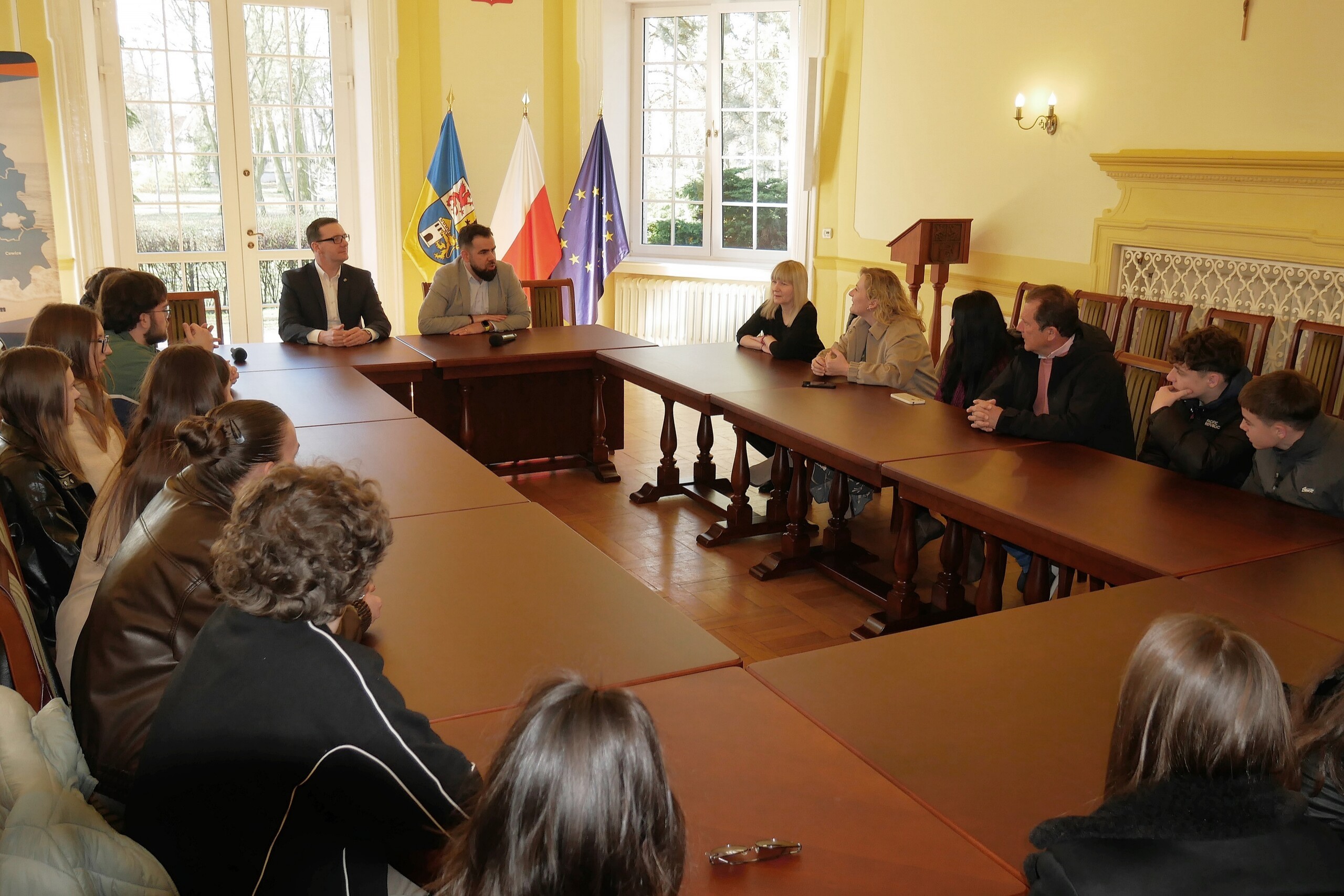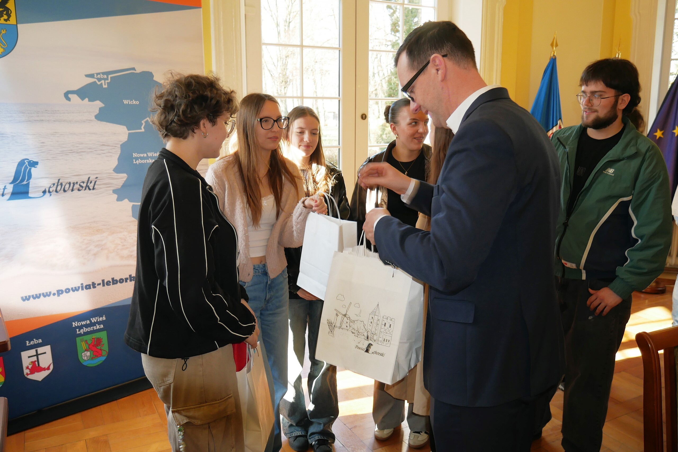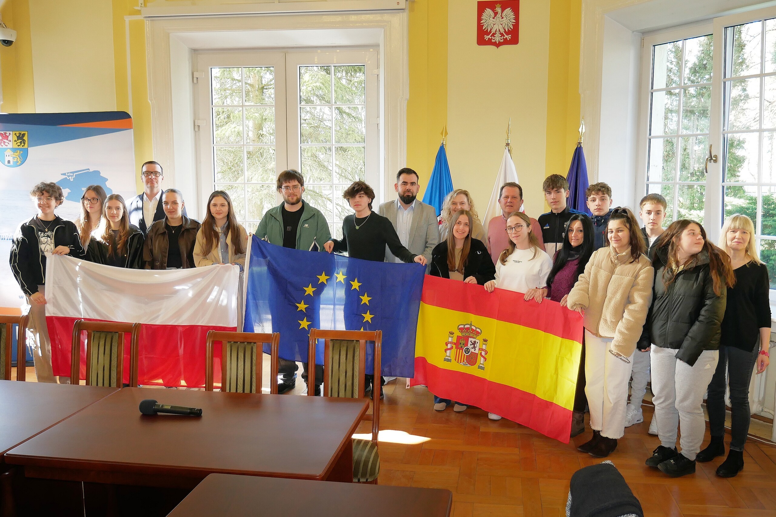 Starosta Lęborski Tomasz Litwin i wicestarosta Adrian Wenta spotkali się z uczestnikami Erasmus+ - programu międzynarodowej wymiany młodzieży z Hiszpanii, goszczącymi w Społecznym Liceum Ogólnokształcącym w Lęborku.
