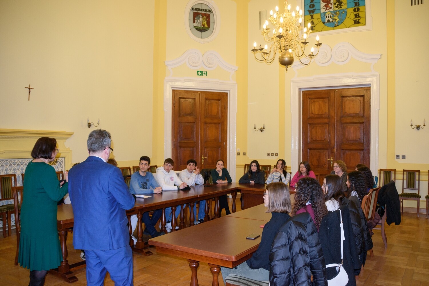 Starosta Lęborski Alicja Zajączkowska i wicestarosta Edmund Głombiewski spotkali się z uczestnikami programu Erasmus+ - Włochami odbywającymi praktyki w ramach międzynarodowej wymiany młodzieży.