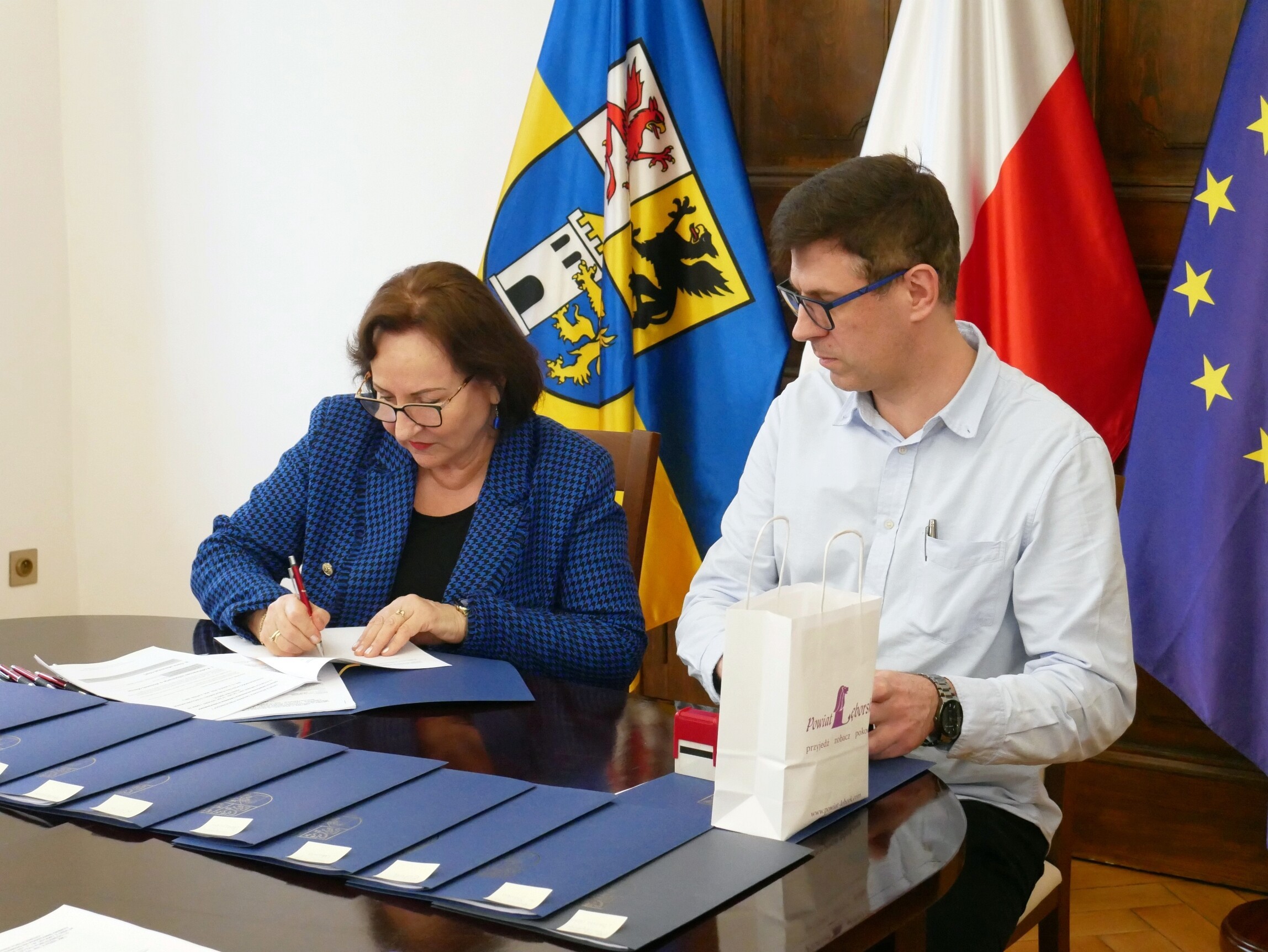 Dziesięć organizacji pozarządowych z terenu powiatu lęborskiego otrzymało wsparcie na realizację zgłoszonych przedsięwzięć. Umowy grantowe ich przedstawicielom wręczyła starosta Alicja Zajączkowska.