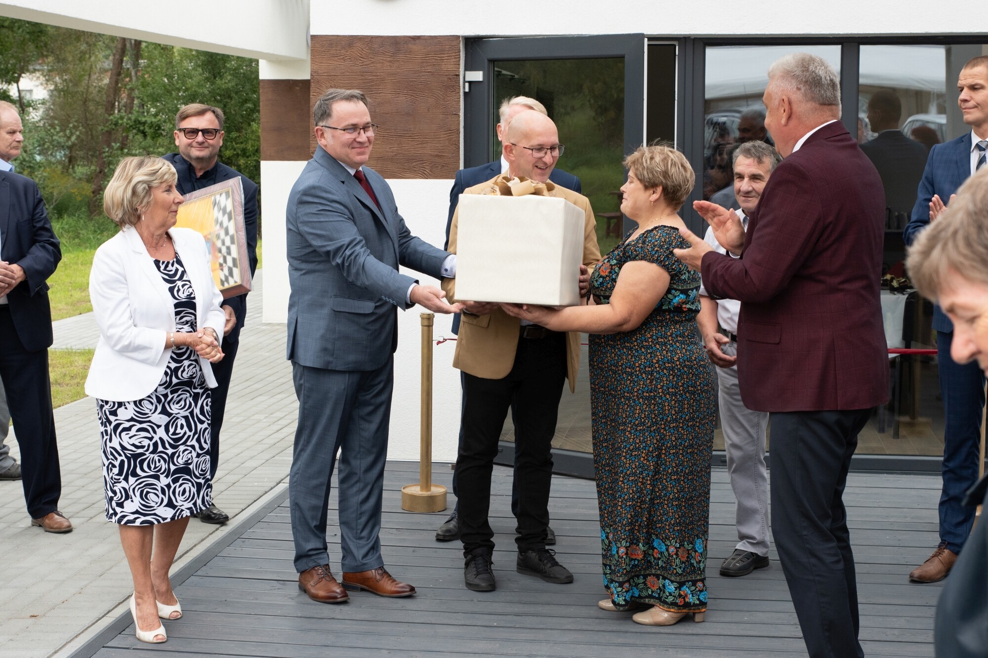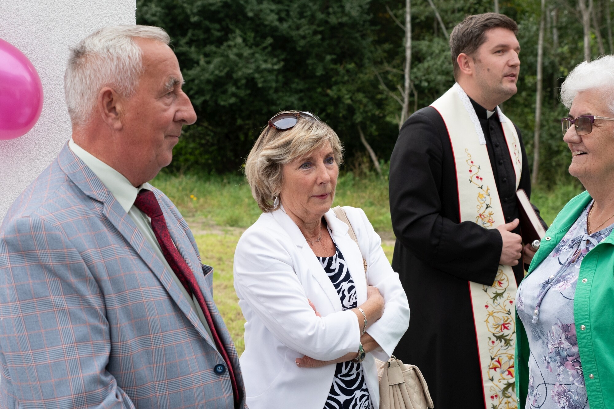Wspólnie z członkami Zarządu Powiatu Lęborskiego: Adamem Nowakiem i Jackiem Perłakiem wręczyła praktyczny upominek, który pomoże w gromadzeniu wyposażenia nowo powstałego obiektu. Poświęcenia świetlicy dokonał ks. Daniel Leszczyński, proboszcz Parafii pw. Wniebowzięcia Najświętszej Maryi Panny w Cewicach.