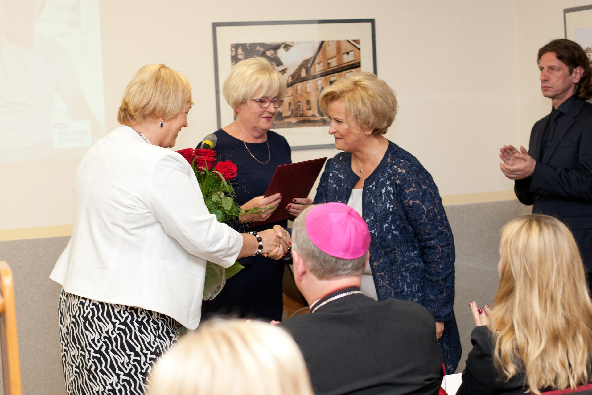 Starosta Lęborski, Pani Teresa Ossowska - Szara, w imieniu władz samorządowych Powiatu Lęborskiego, złożyła na ręce Dyrektor Szpitala, Pani Lidii Kodłubańskiej serdeczne gratulacje w związku z otwarciem Oddziału Geriatrycznego oraz Zmodernizowanego Działu Fizjoterapii. Podkreśliła, że ośrodek kompleksowej opieki zdrowotnej jest bardzo dobrą inwestycją z myślą o potrzebach osób starszych w powiecie lęborskim. Wyraziła swoje przekonanie, że zarówno ten, jak i kolejne projekty realizowane przez SPS ZOZ w Lęborku przyczynią się do znacznej poprawy poziomu świadczonych usług zdrowotnych, bezpieczeństwa pacjentów i mieszkańców naszego powiatu.